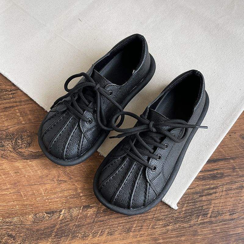 영국 스타일 작은 가죽 신발 플랫 화이트 신발 2025 가을 새로운 쉘 토우 신발 학생 캐주얼 신발 마틴 신발 여성스토어 가기