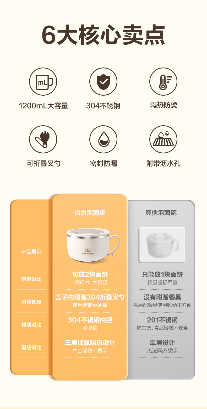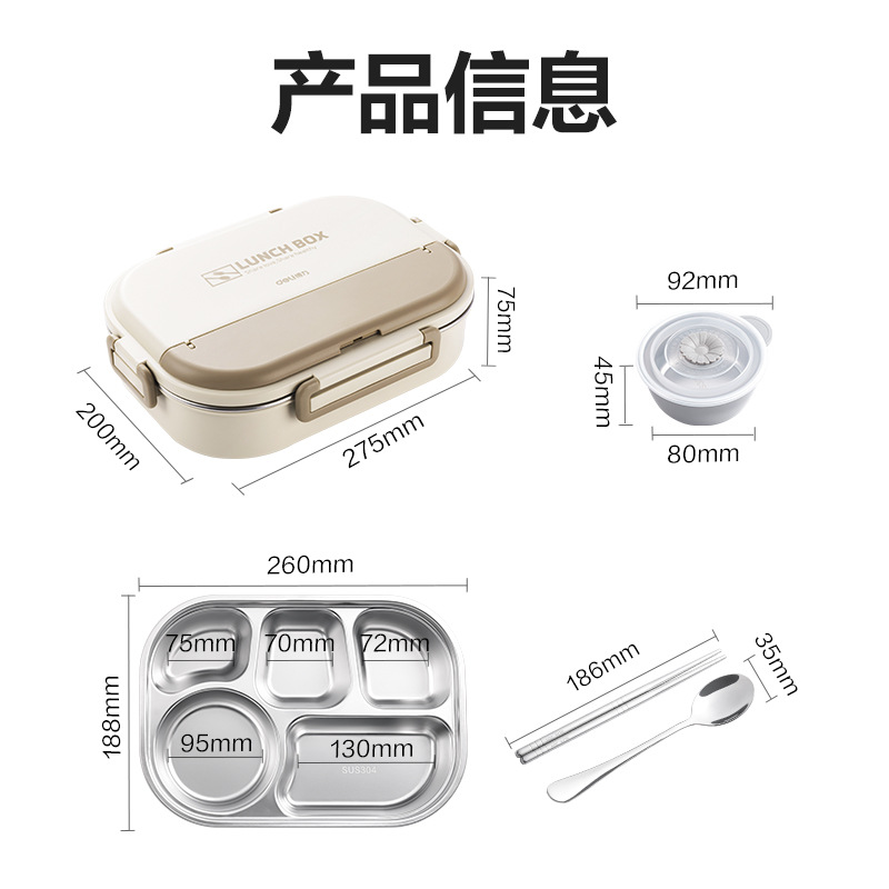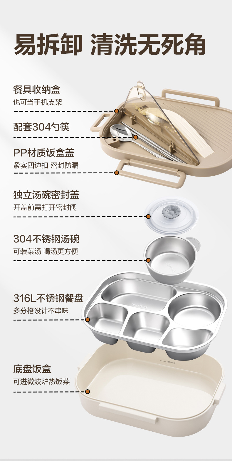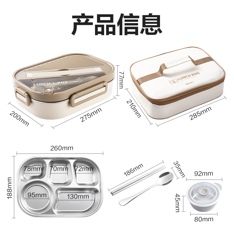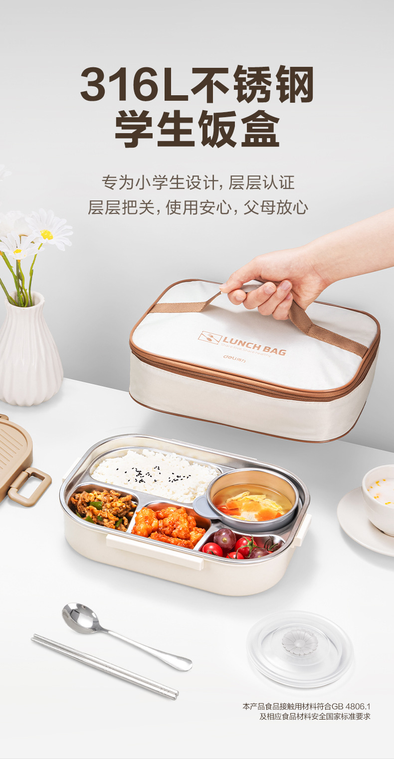학생 및 직장인을 위한 델리 고급스러운 316 스테인레스 스틸 분할 단열 도시락, 밀봉된 휴대용 도시락