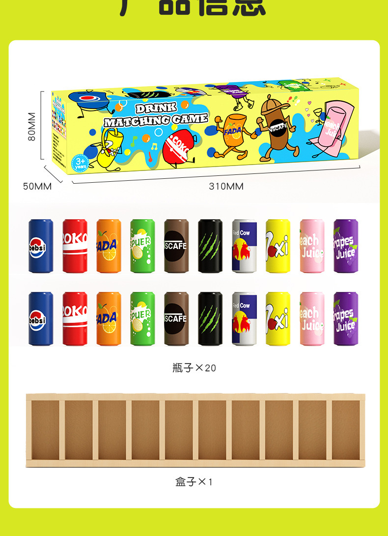 어린이의 재미있는 병 추측 음료 쌍 색상 인식 기억력 일치 장난감 조기 교육 퍼즐 추측 놀이스토어 가기
