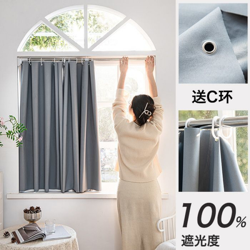햇빛 가리개 천 새로운 작은 차단 전체 단색 커튼 임대 방 펀치없는 텔레스코픽 막대 블랙 아웃 커튼 침실