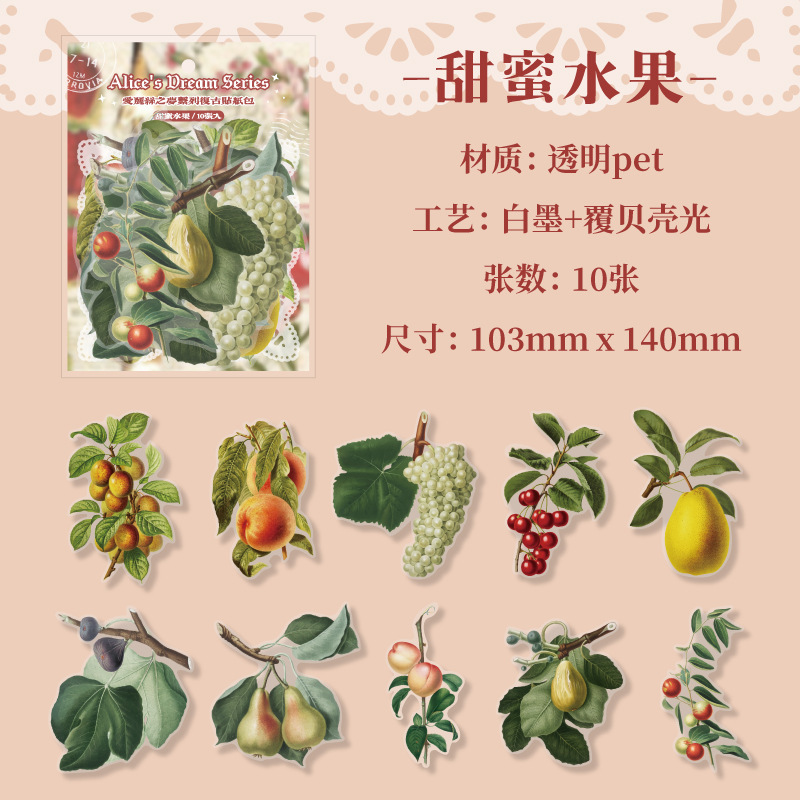 종이 흔적 PET 스티커 팩 앨리스의 꿈 시리즈 복고풍 핸드북 장식 재료 4가지 옵션으로 10개