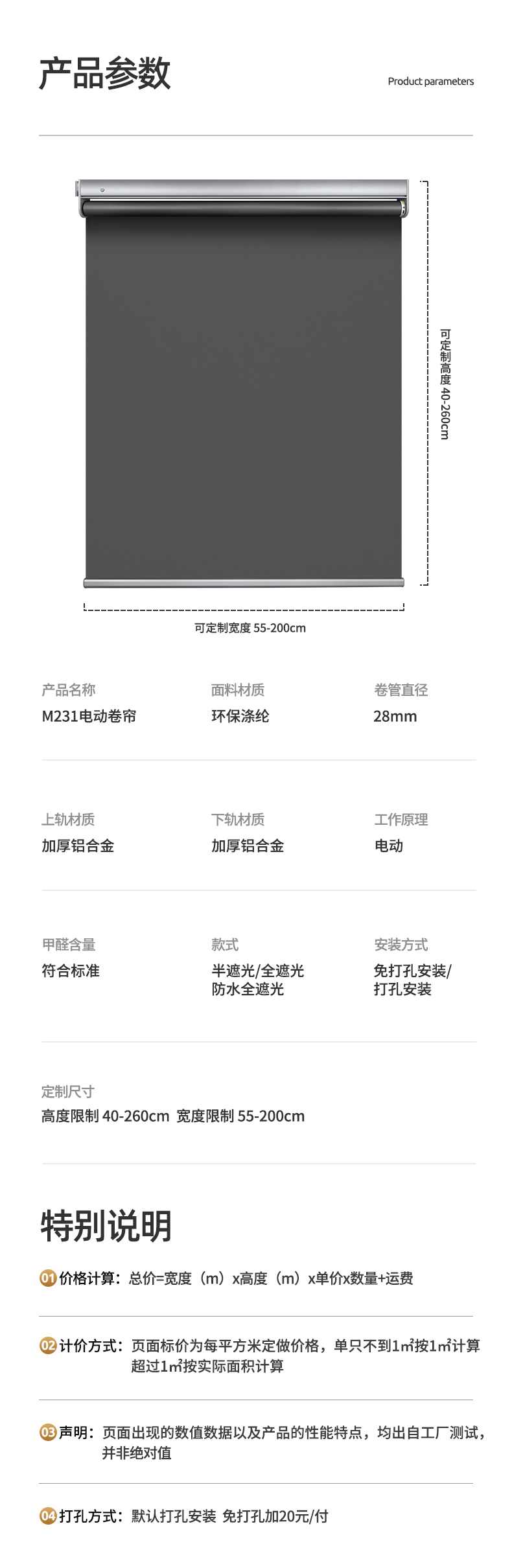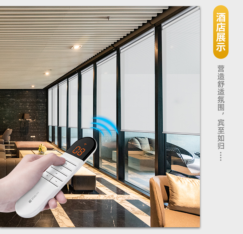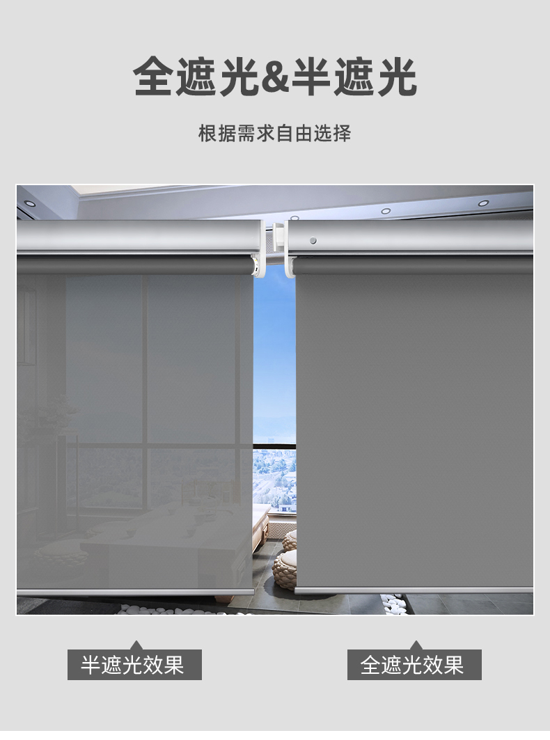 펀치 프리 전기 롤러 블라인드, 완전 차광 및 차양, 사무실 홈 스마트 원격 제어 자동 리프팅 커튼