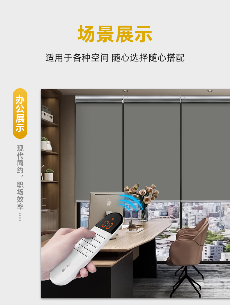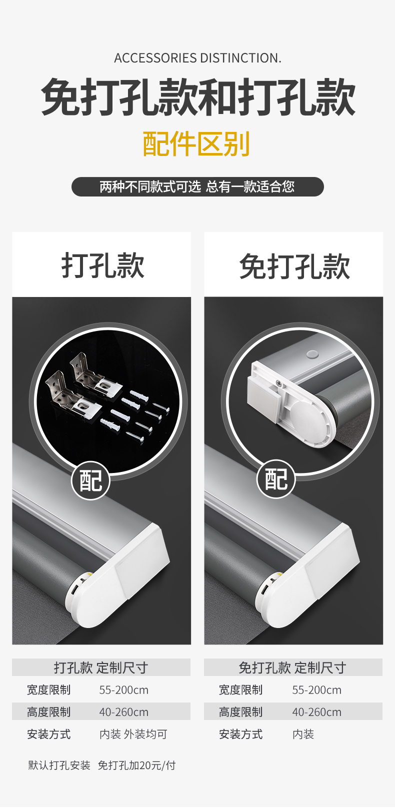 펀치 프리 전기 롤러 블라인드, 완전 차광 및 차양, 사무실 홈 스마트 원격 제어 자동 리프팅 커튼스토어 가기