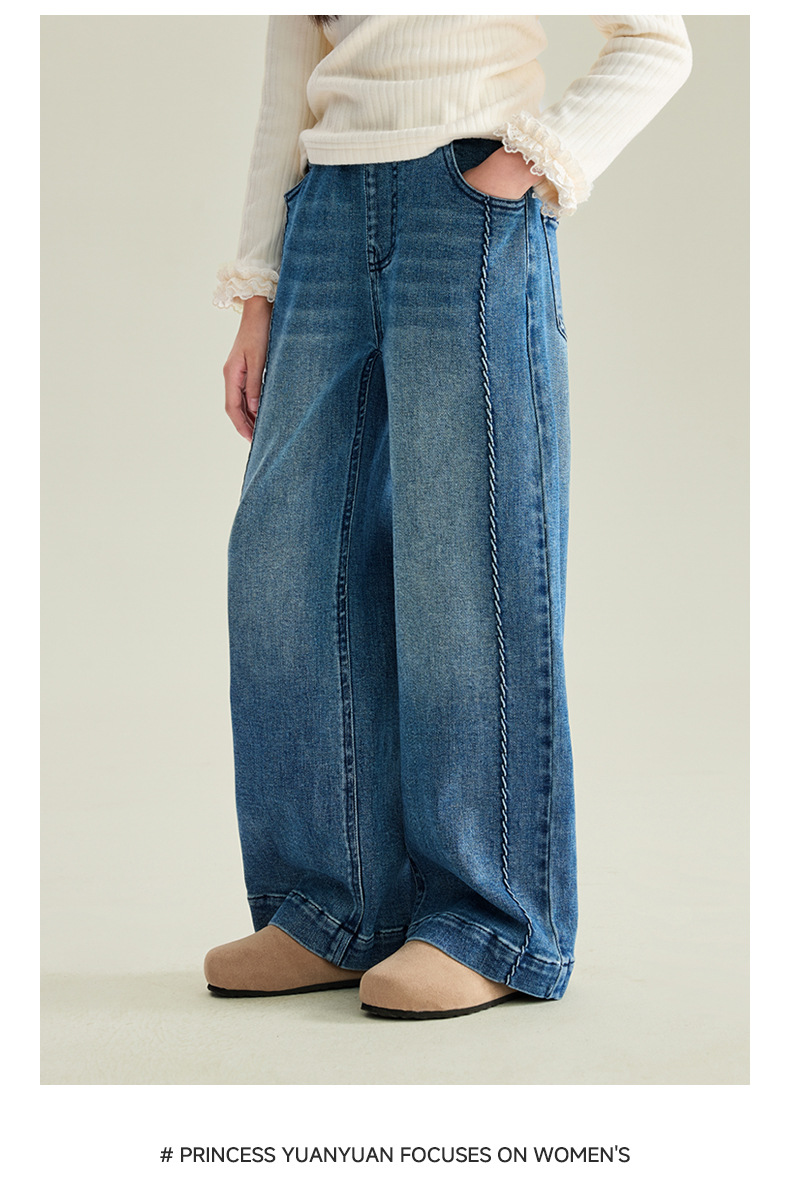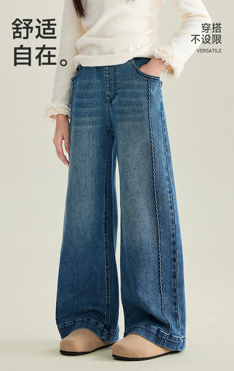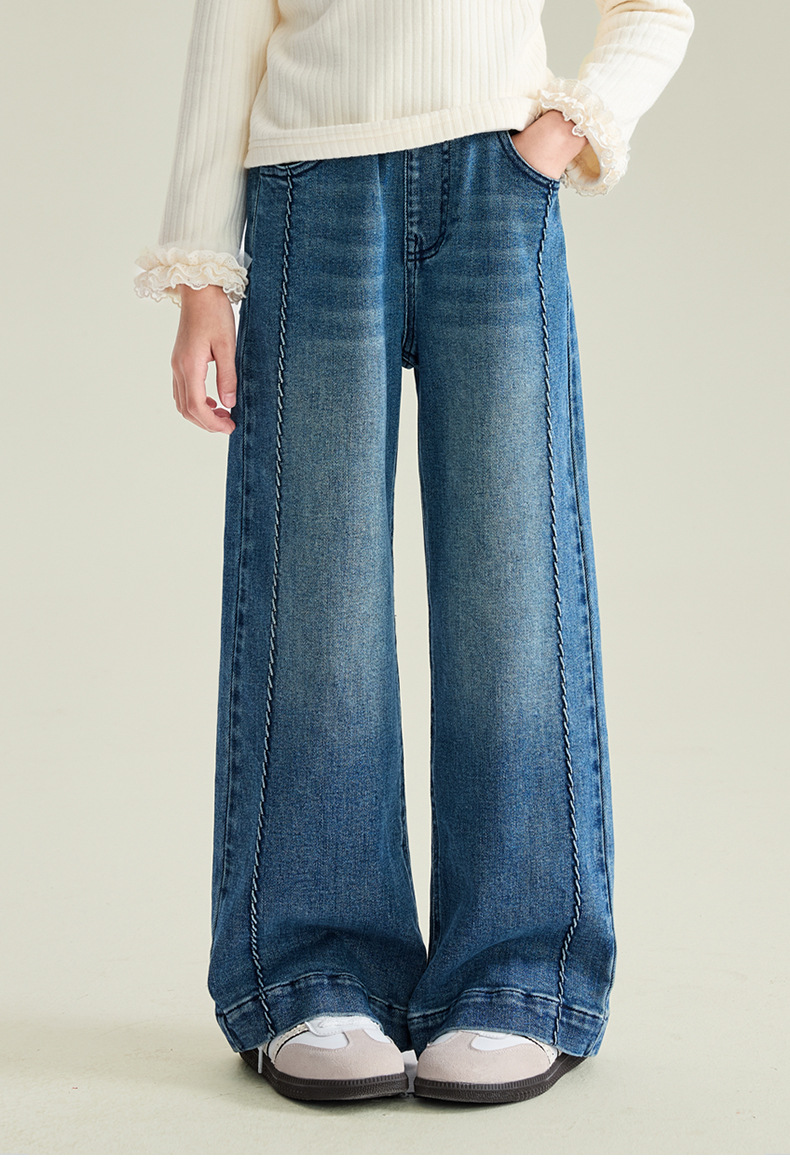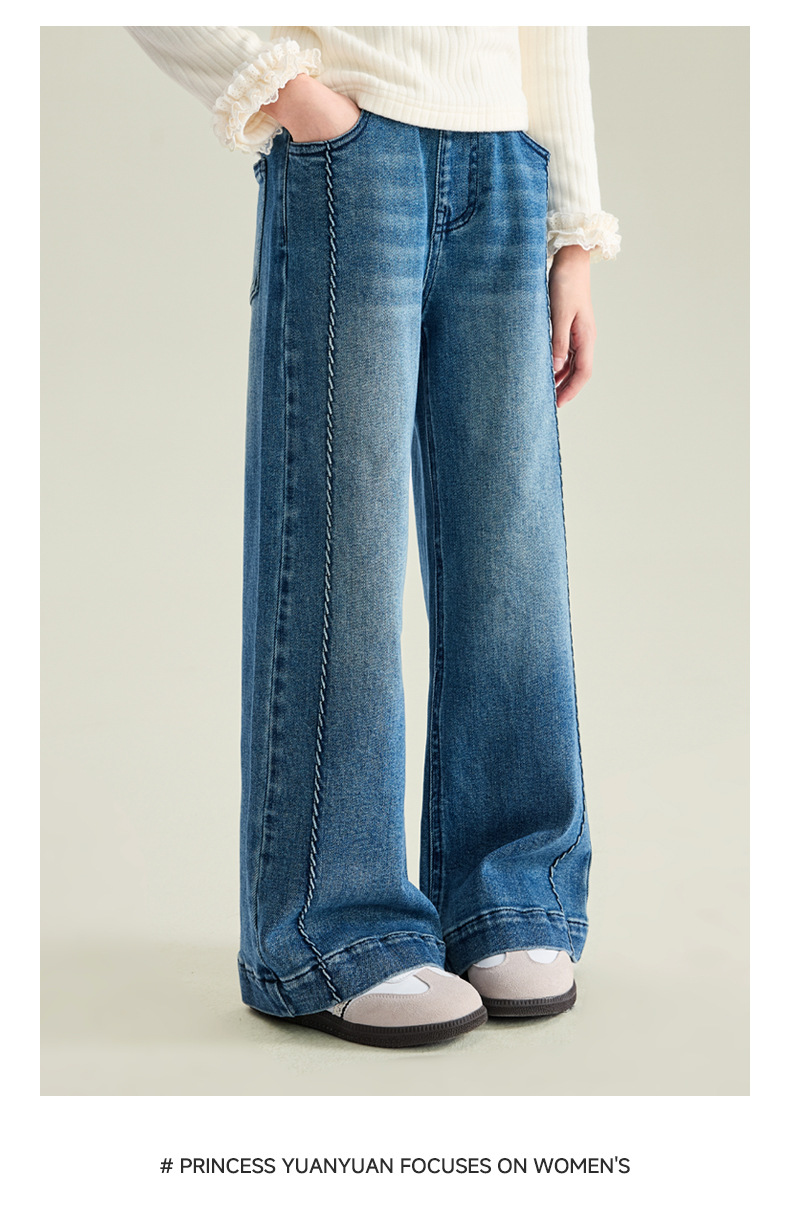 여아 바지 2025 봄 가을 새로운 스타일 아동용 스트레이트 와이드 팬츠 여아 봄 청바지 루즈스토어 가기