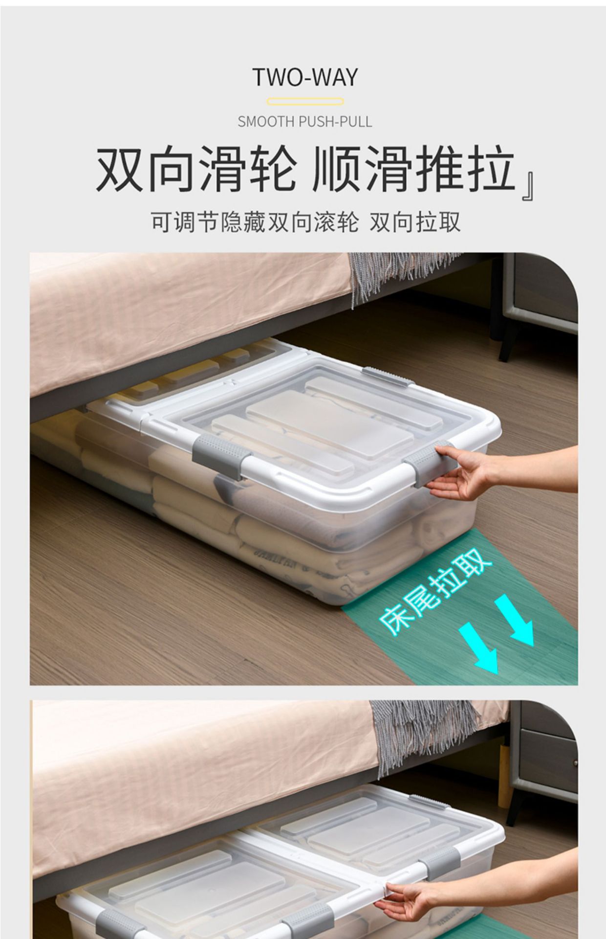 침대 밑 수납함, 휠이 달린 평면형, 침대 밑 수납함, 대용량 투명 의류 기숙사 수납함스토어 가기