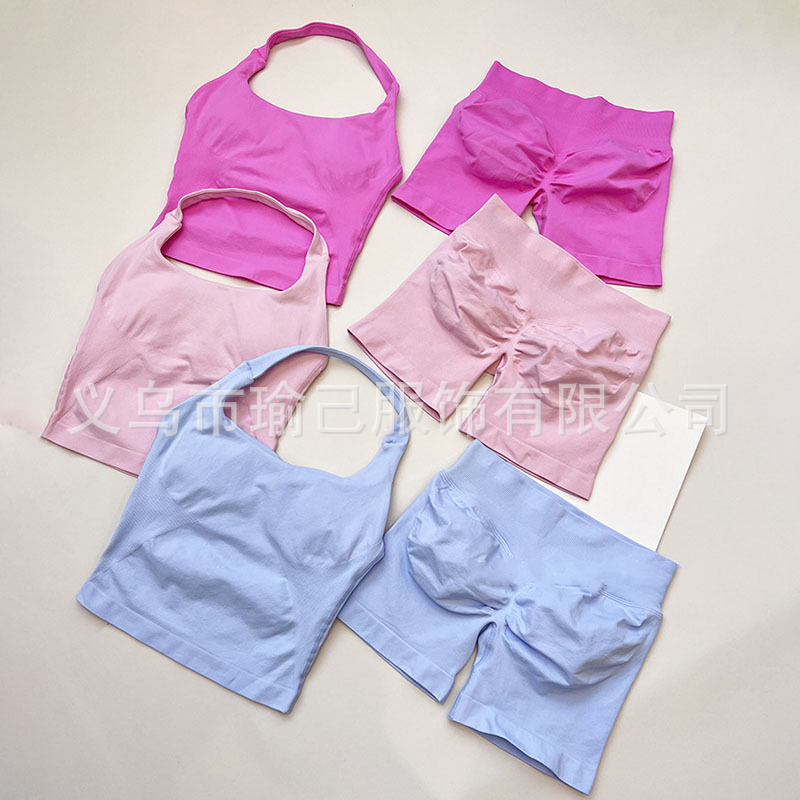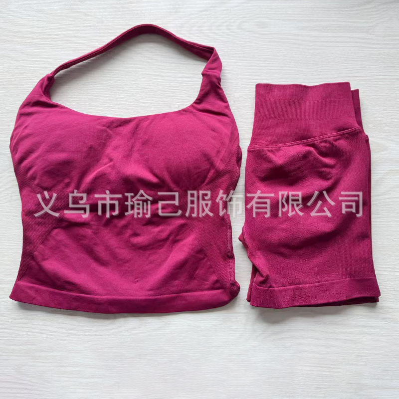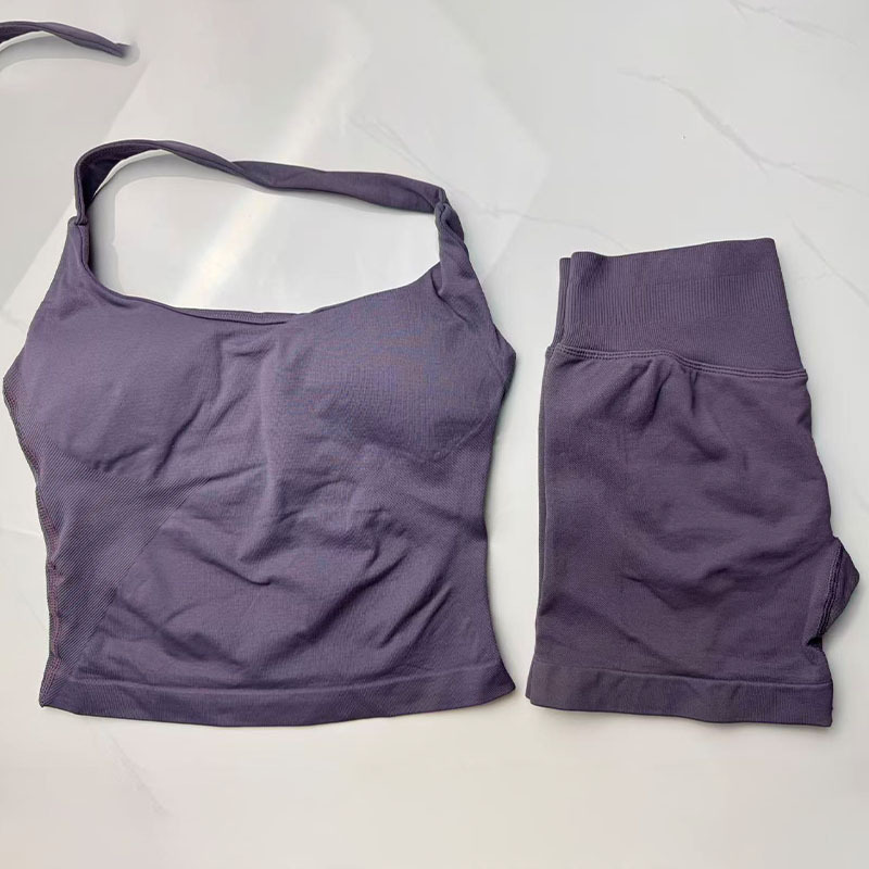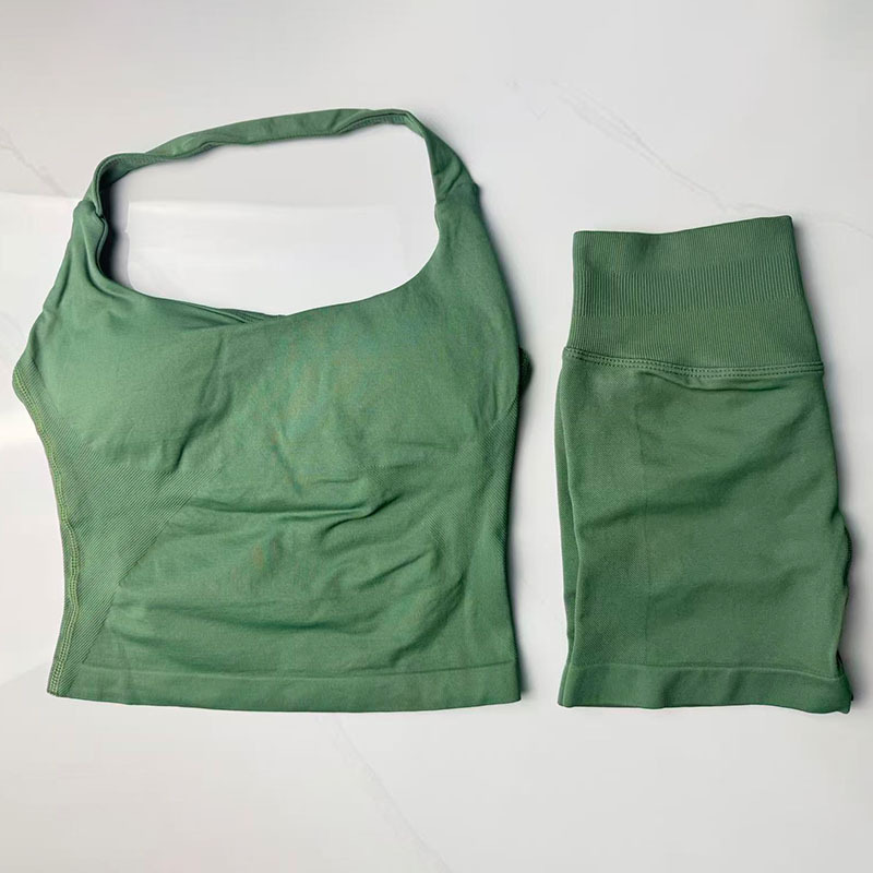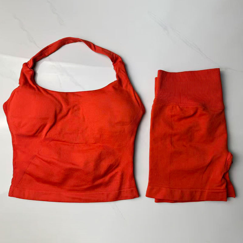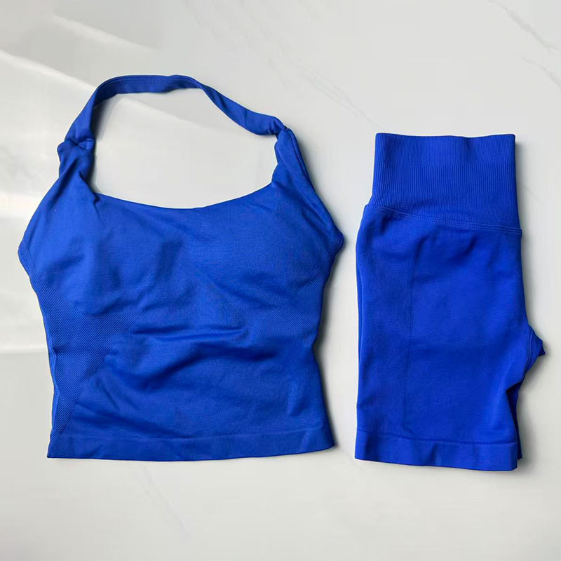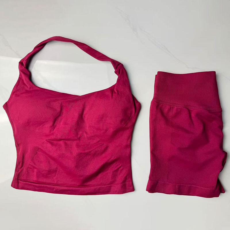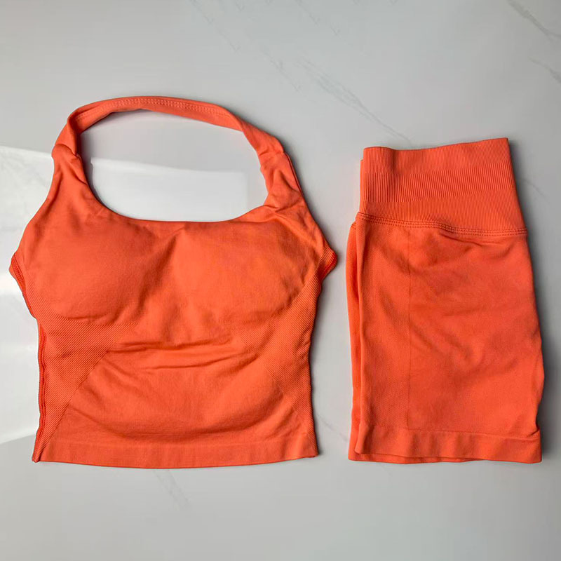 AliExpress 핫 DFYNE 새로운 홀터넥 조끼 반바지 정장 여성 피트니스 스포츠 요가 정장
