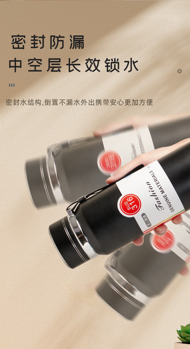 跨境316不锈钢太阳壶带提绳双层真空保温杯户外便携登山运动水杯