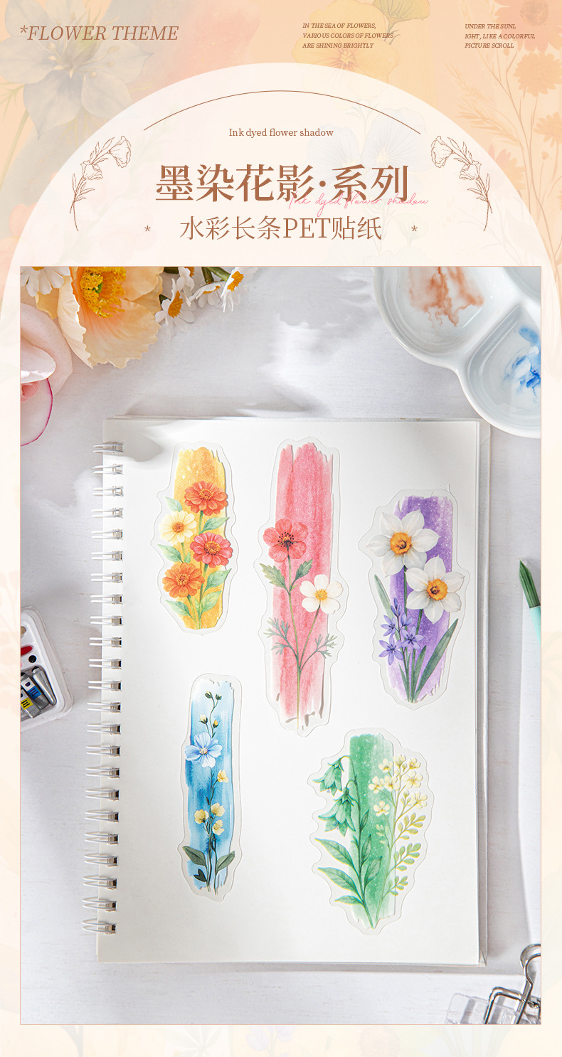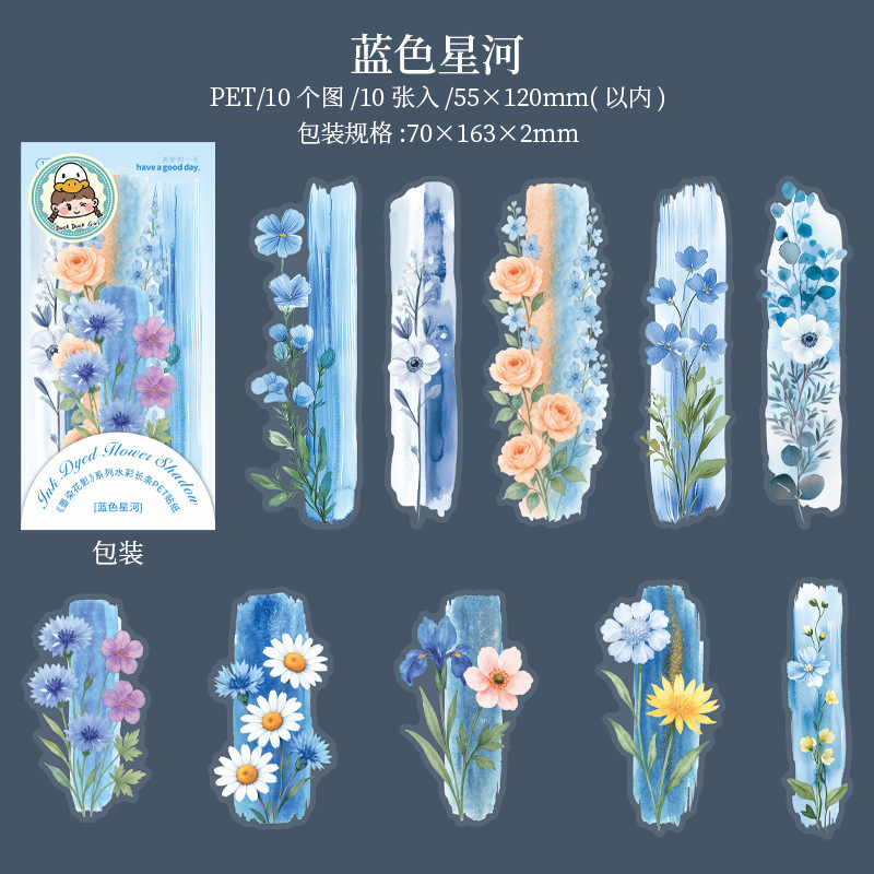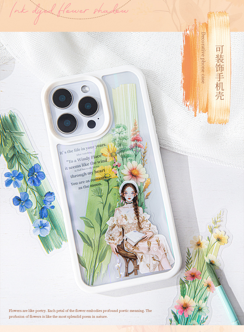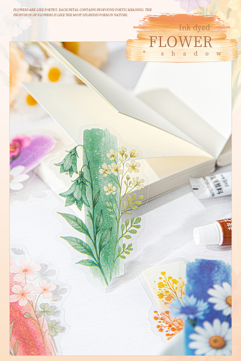 좋은 날 긴 PET 스티커 잉크 염색 꽃 그림자 크리 에이 티브 수채화 꽃 핸드북 휴대 전화 백 카드 콜라주