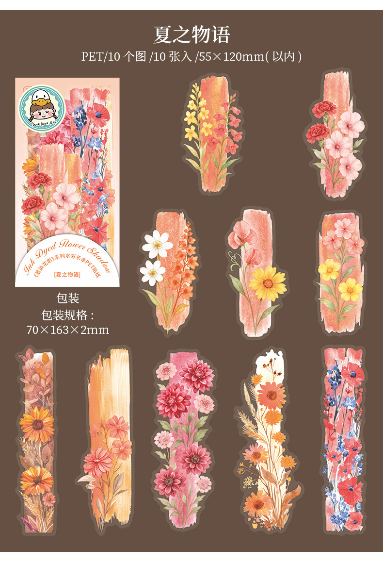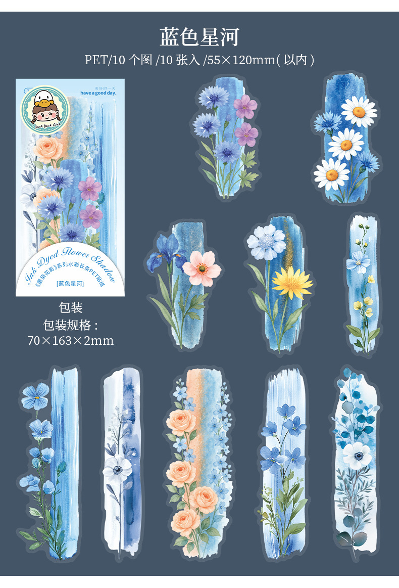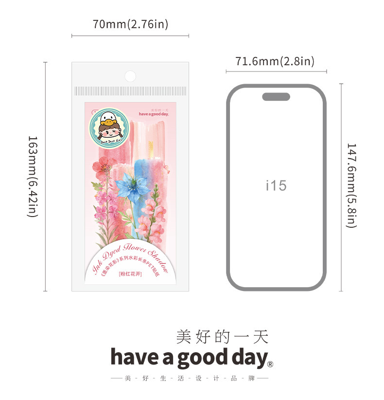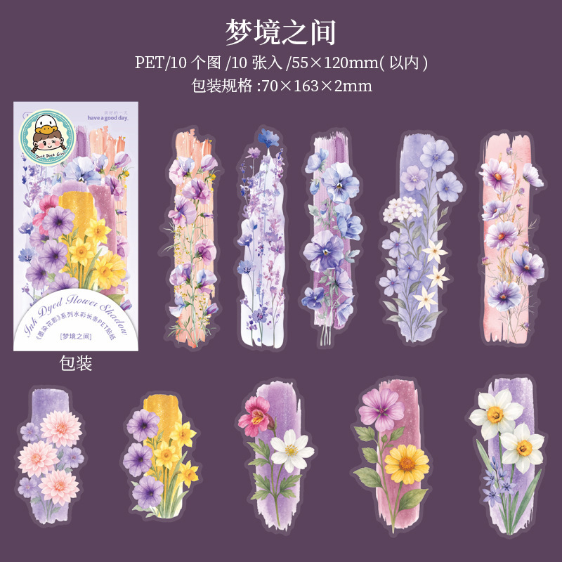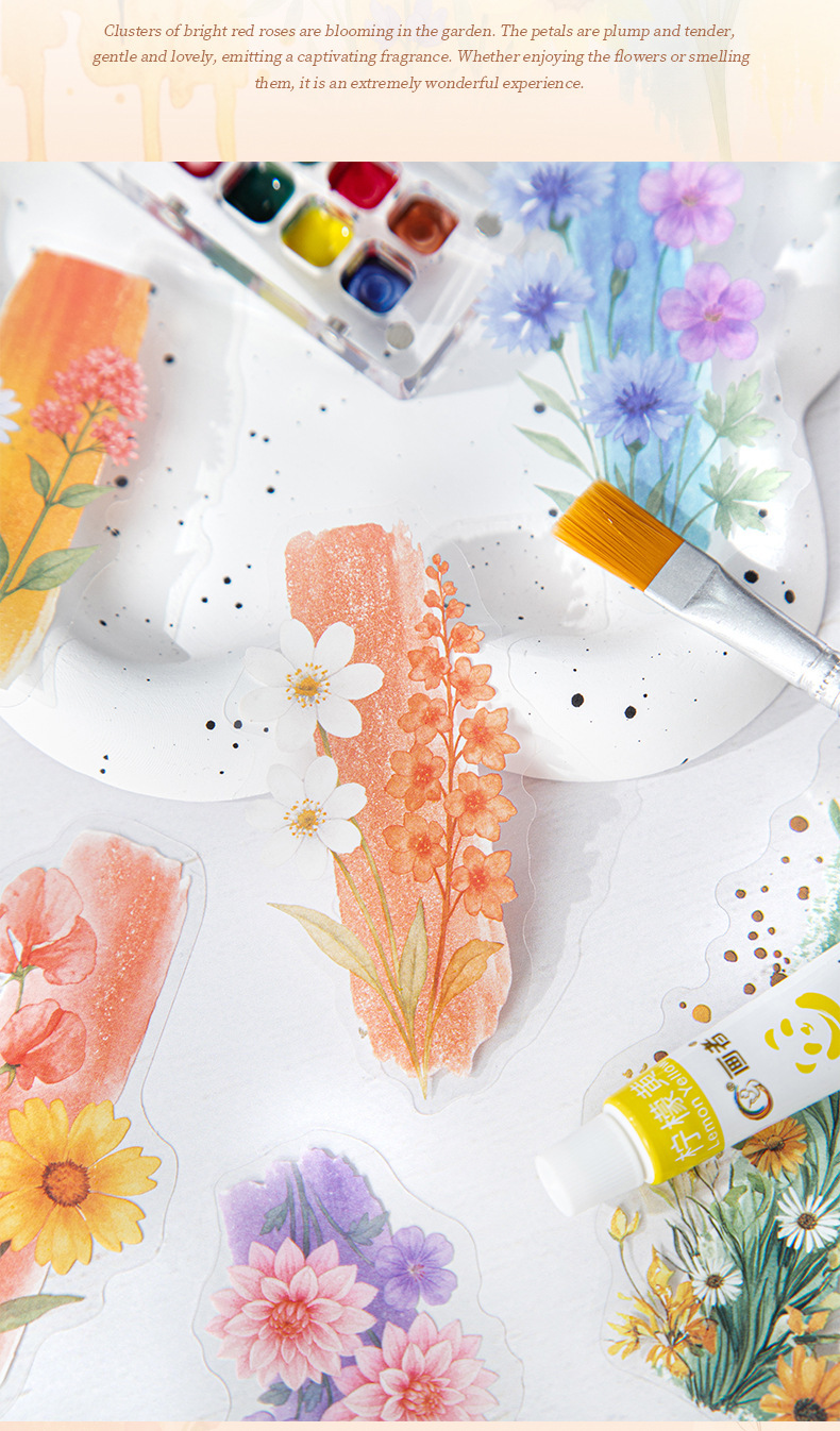좋은 날 긴 PET 스티커 잉크 염색 꽃 그림자 크리 에이 티브 수채화 꽃 핸드북 휴대 전화 백 카드 콜라주