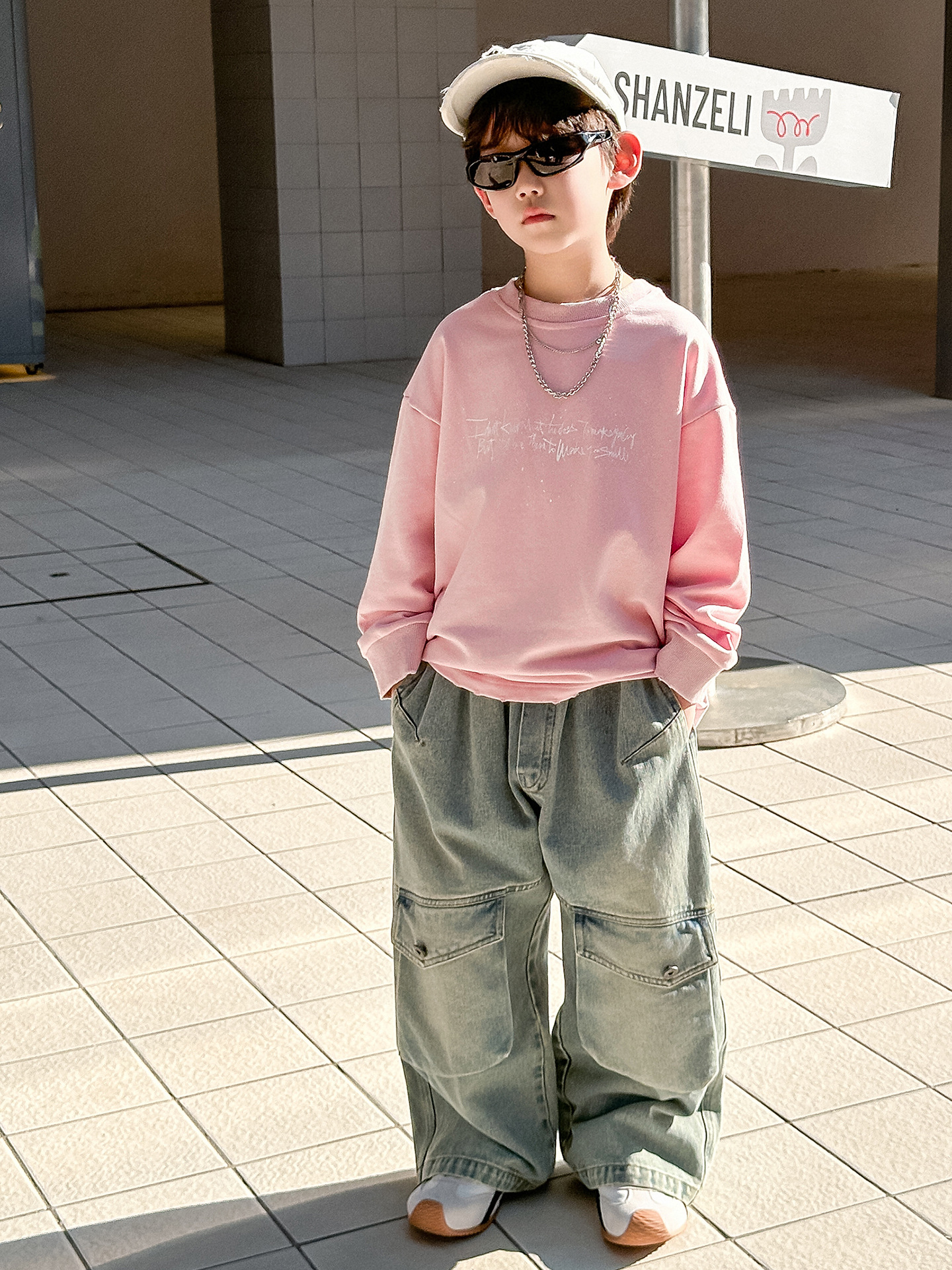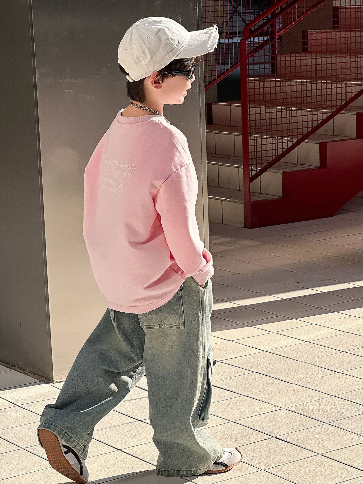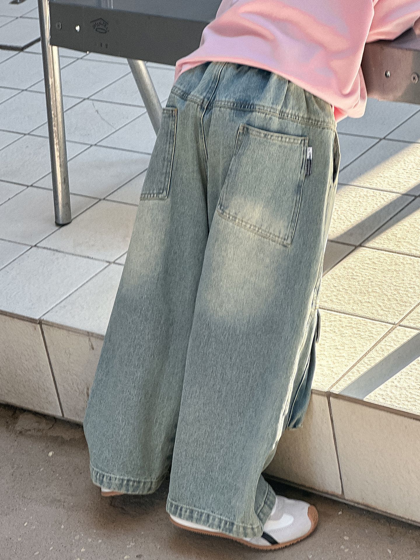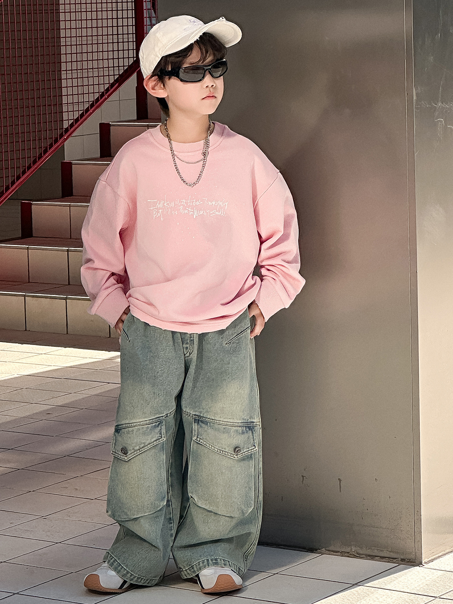 남아용 데님 팬츠 아동 가을 한국 스타일 2025 신상 작업복 스타일 트렌디하고 멋진 와이드 팬츠 부드럽고 다용도스토어 가기