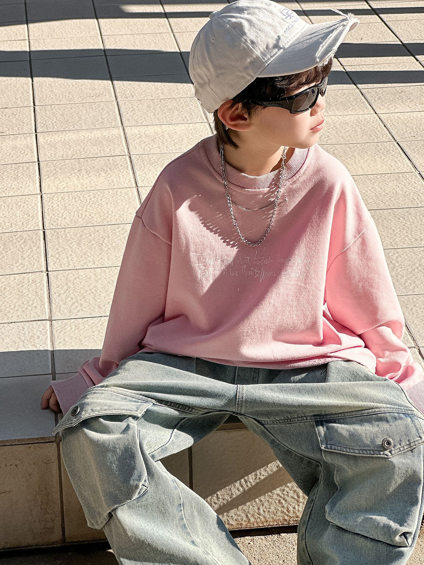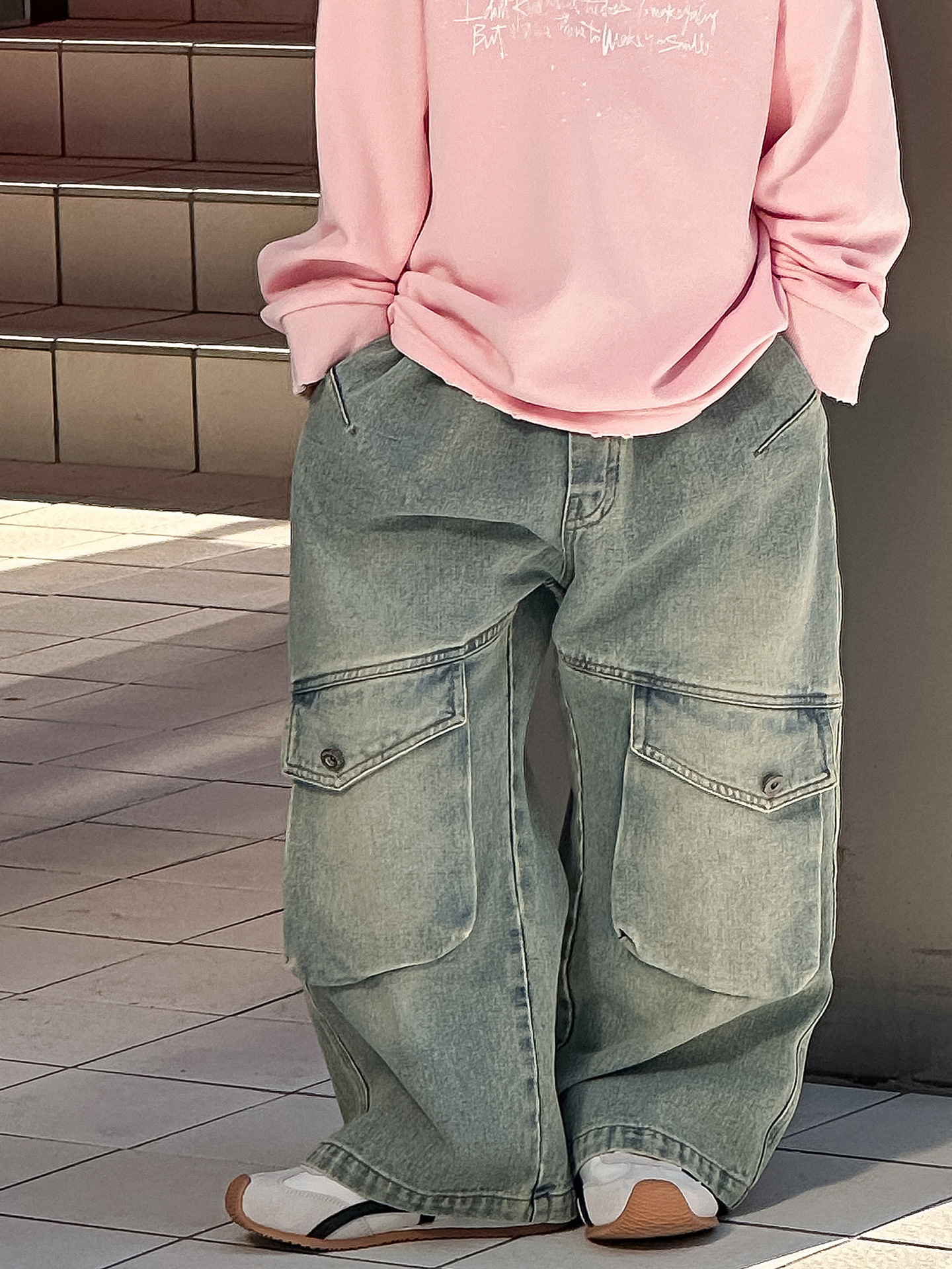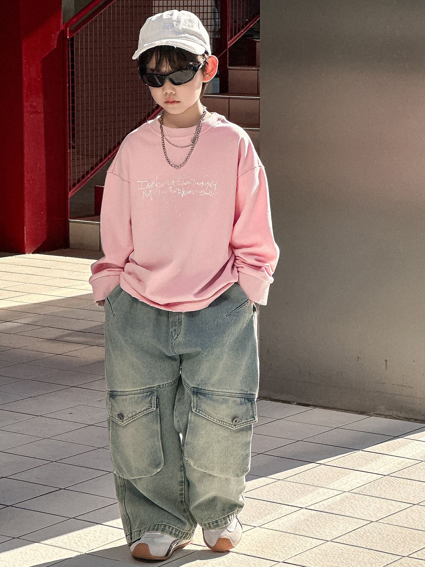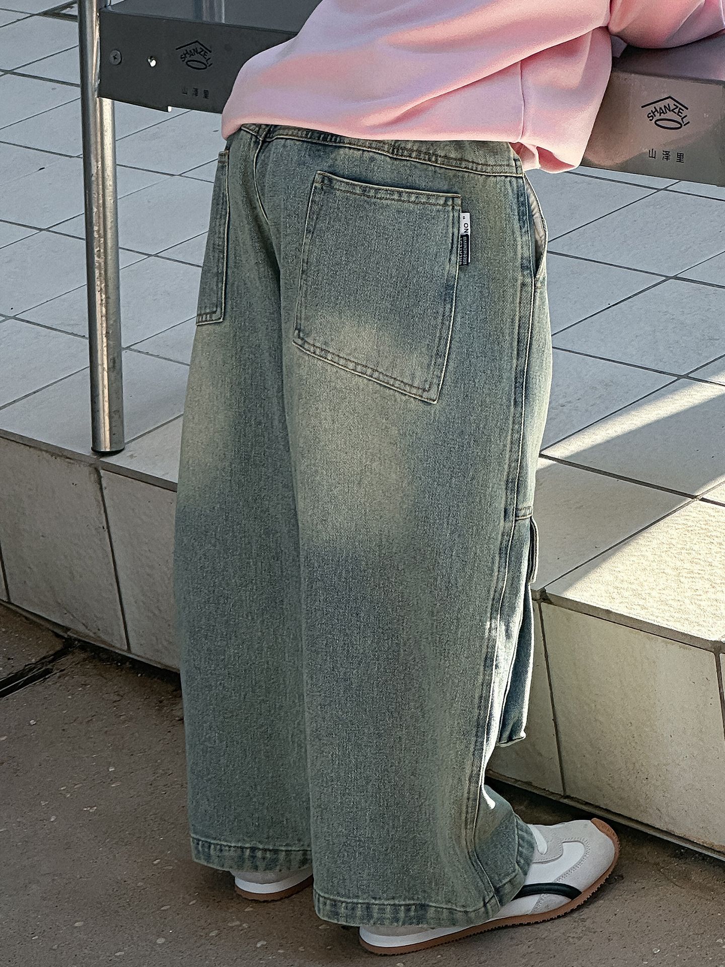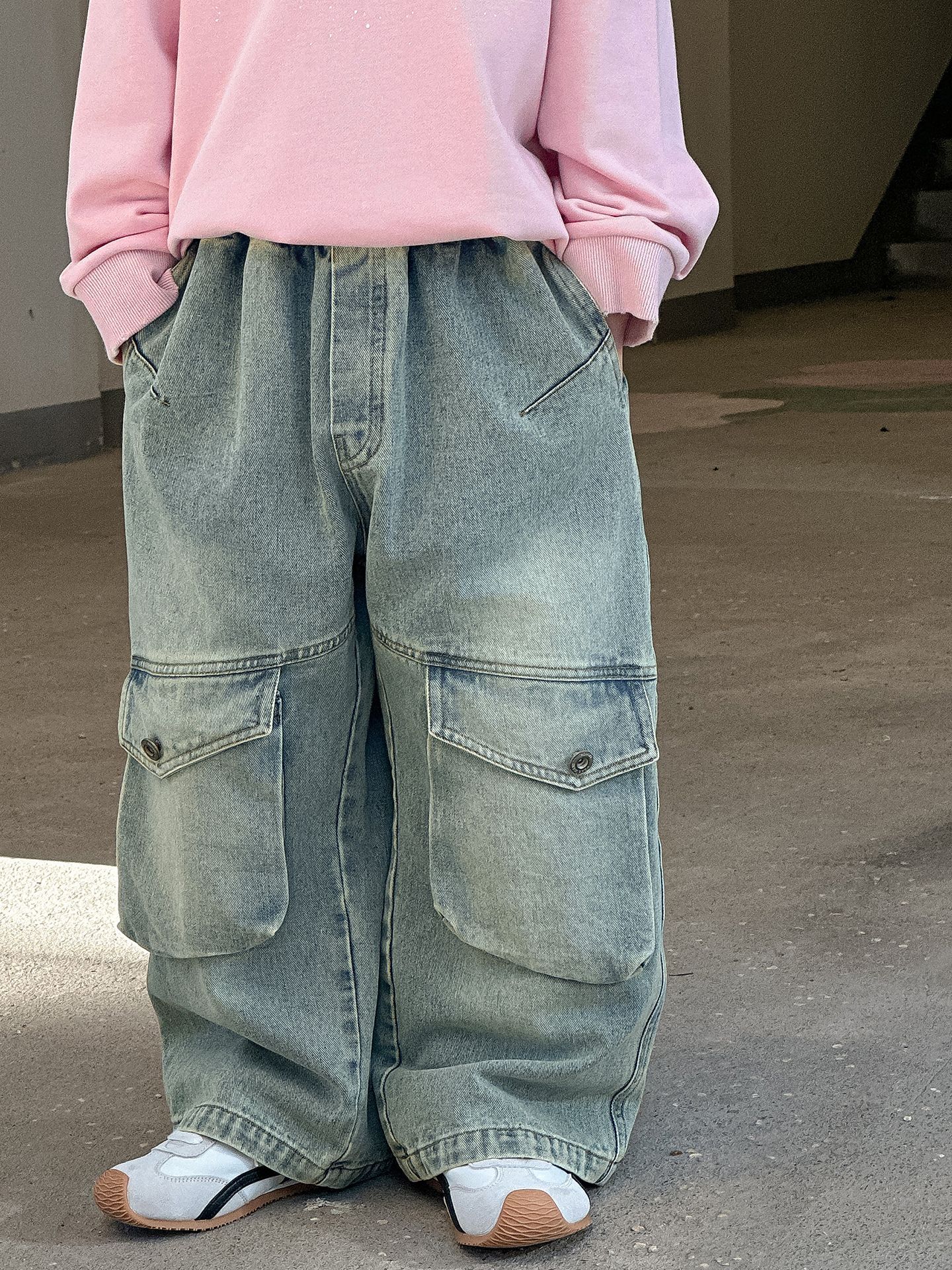 남아용 데님 팬츠 아동 가을 한국 스타일 2025 신상 작업복 스타일 트렌디하고 멋진 와이드 팬츠 부드럽고 다용도스토어 가기