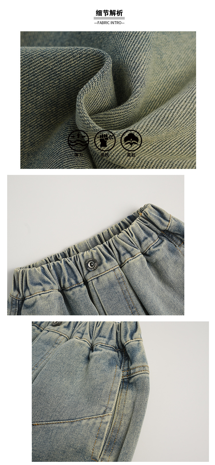 남아용 데님 팬츠 아동 가을 한국 스타일 2025 신상 작업복 스타일 트렌디하고 멋진 와이드 팬츠 부드럽고 다용도