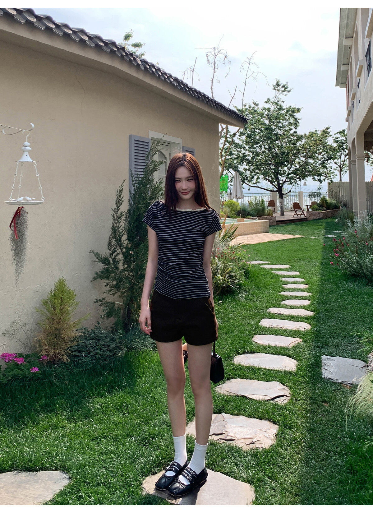 2025년 여름 여성을 위한 작은 심플한 하이웨이스트 데님 반바지 새로운 스타일의 좁은 가장자리 슬림 스트레이트 팬츠스토어 가기
