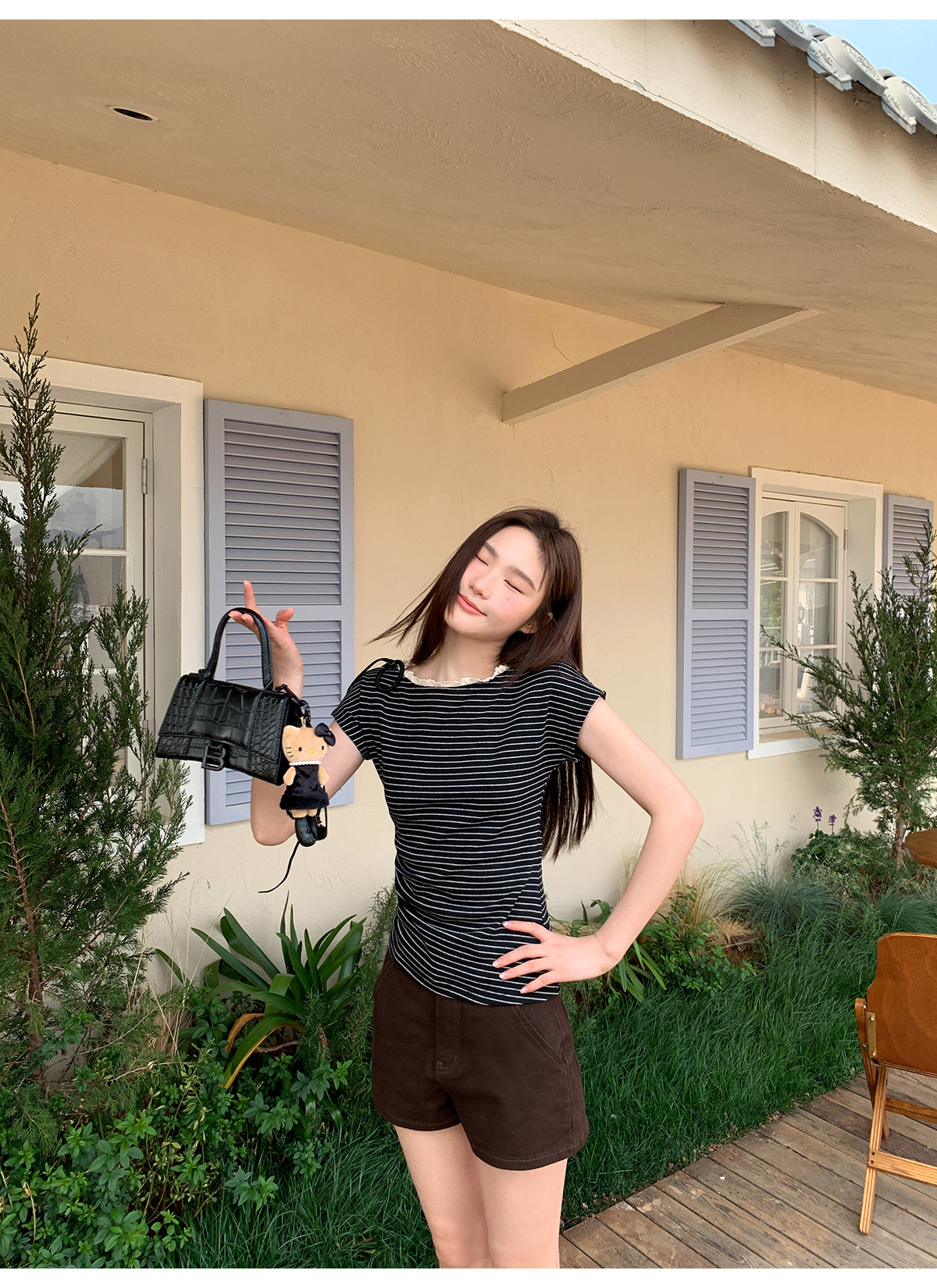 2025년 여름 여성을 위한 작은 심플한 하이웨이스트 데님 반바지 새로운 스타일의 좁은 가장자리 슬림 스트레이트 팬츠