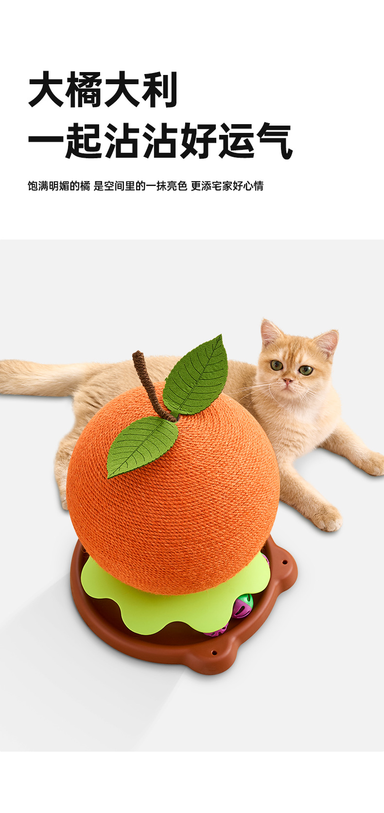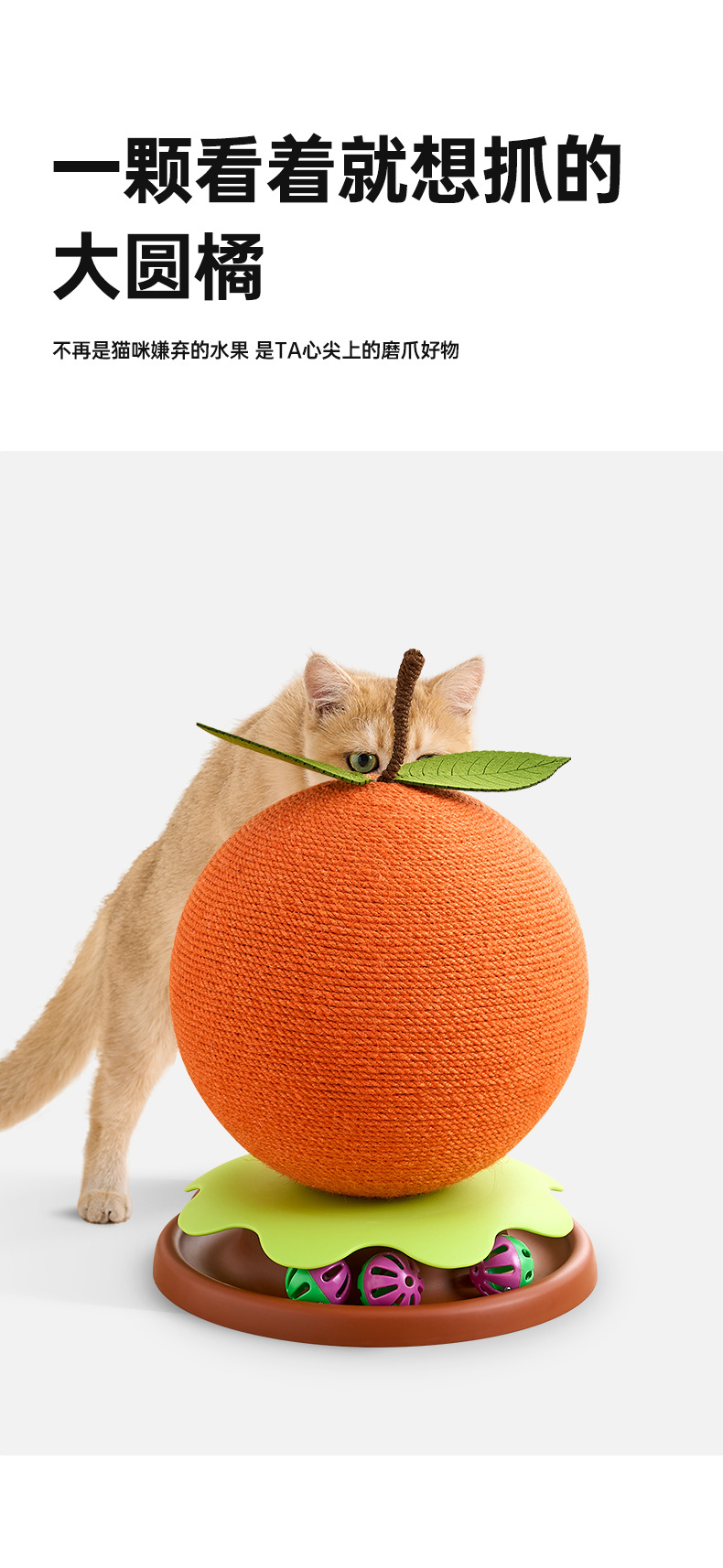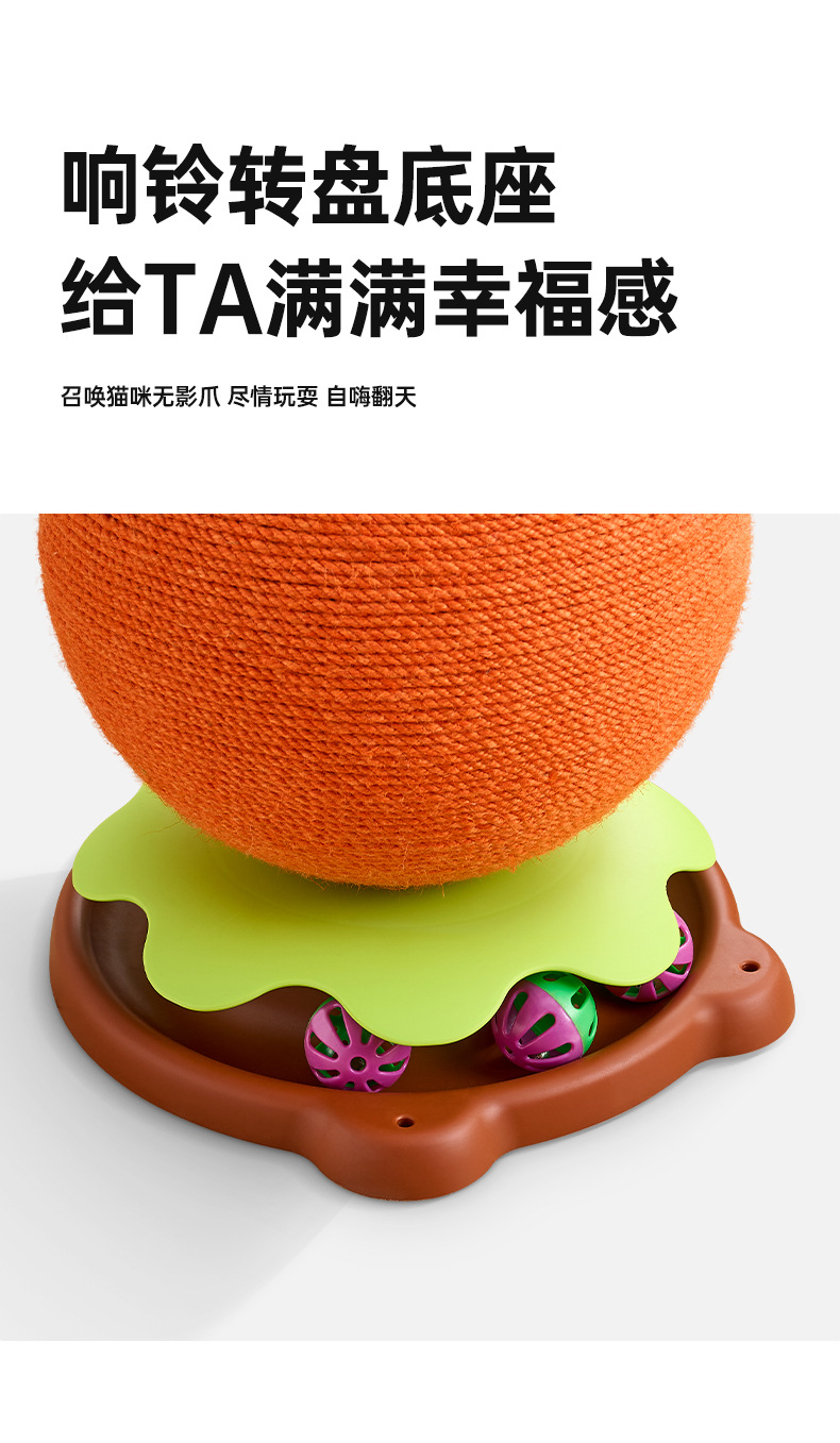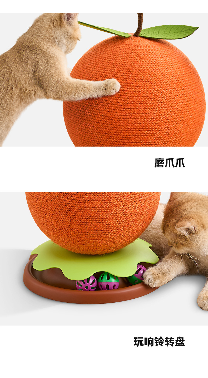 큰 오렌지색 고양이 스크래치 보드, 모조 과일 고양이 스크래치 공, 긁힘 방지 회전 탁자 벨 공, 고양이 지루함 해소 유물, 발톱 연삭 장난감스토어 가기