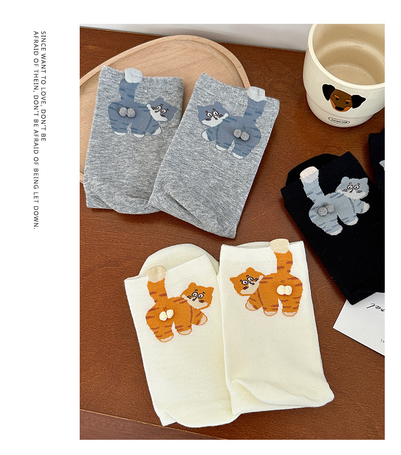 여성용 인기 고양이 계란 양말, 귀여운 만화 추상 재미있는 종아리 양말, 면 땀 흡수 및 통기성 Zhuji 양말스토어 가기