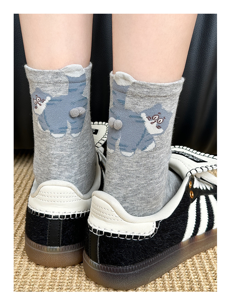 여성용 인기 고양이 계란 양말, 귀여운 만화 추상 재미있는 종아리 양말, 면 땀 흡수 및 통기성 Zhuji 양말