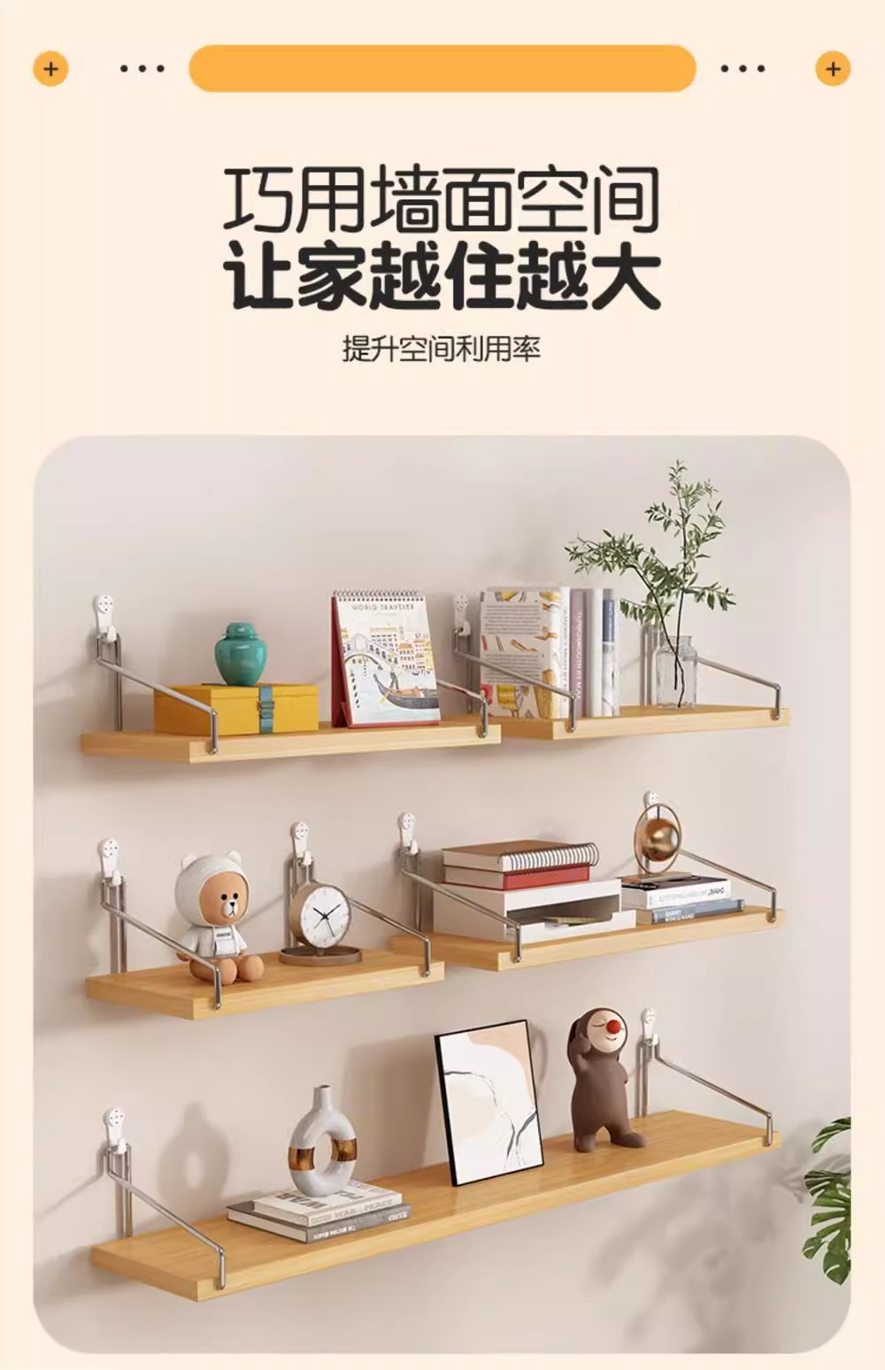 벽걸이형 선반, 침대 옆 보관함, 벽 지지대, 나무 칸막이, 벽걸이형 거실 책장