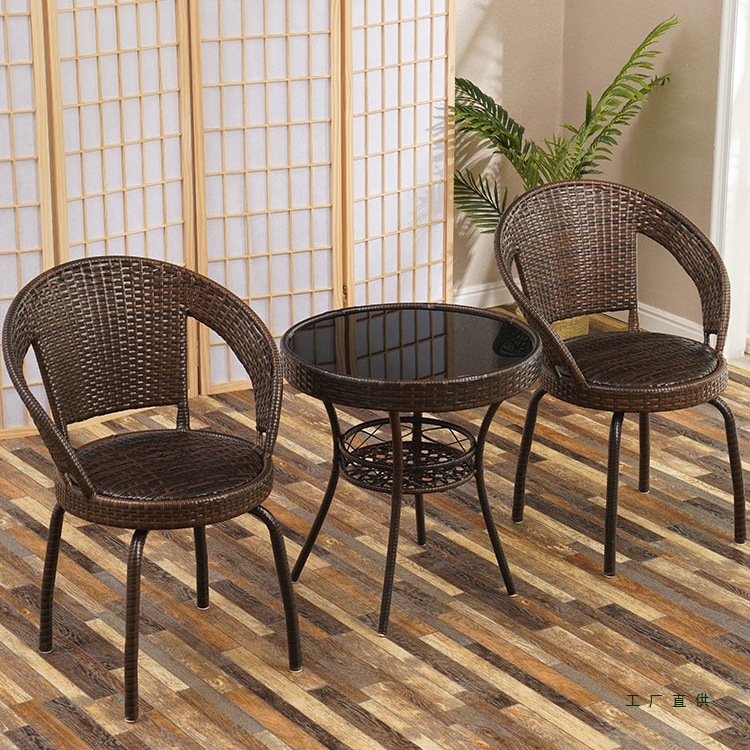 등나무 의자 3피스 세트 작은 커피 테이블 발코니 작은 테이블과 의자 야외 안뜰 현대적인 간단한 싱글 조합 등나무 의자