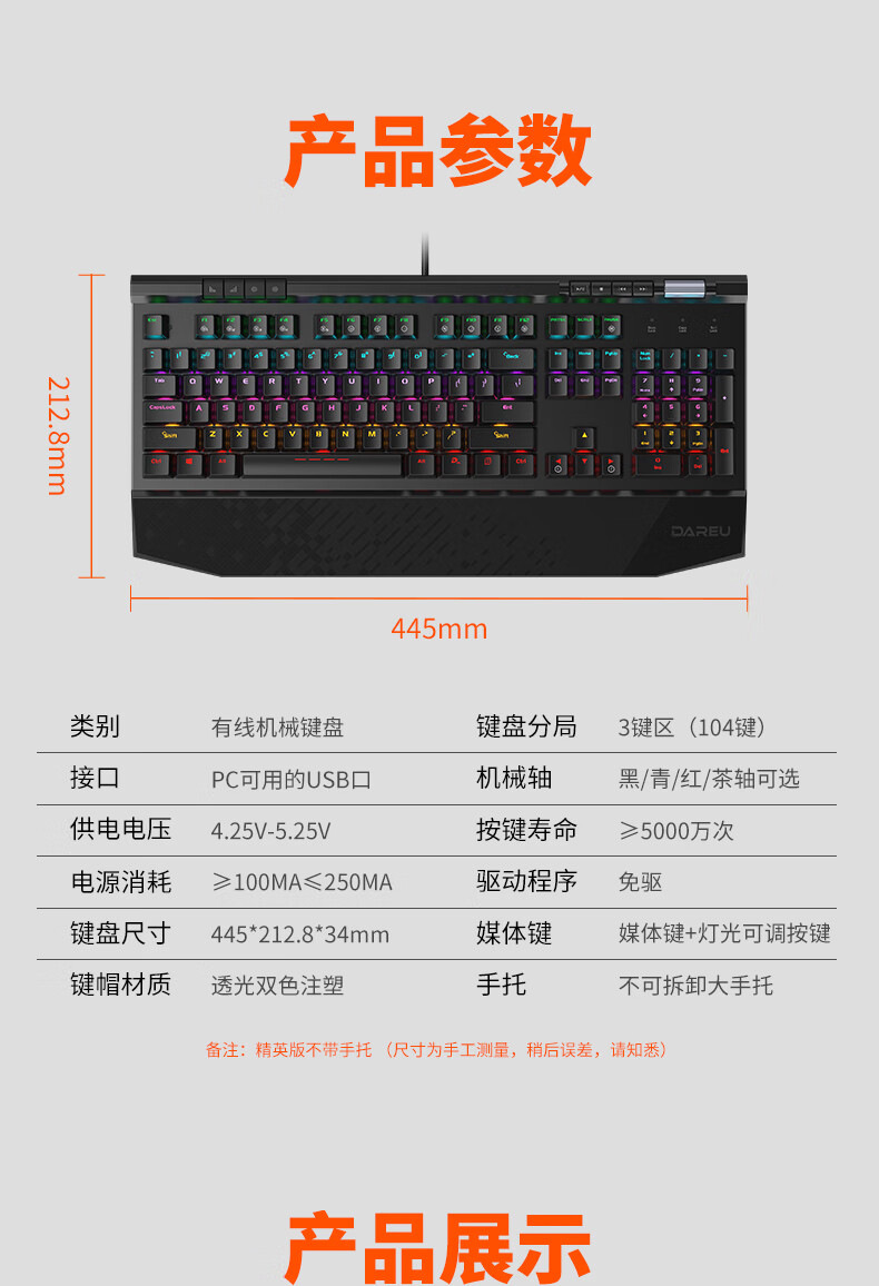 104키 기계식 키보드 e스포츠 게임 풀사이즈 대형 손받침 인터넷 카페 키보드 풀키 무리플렉스 CF 치킨 LOL
