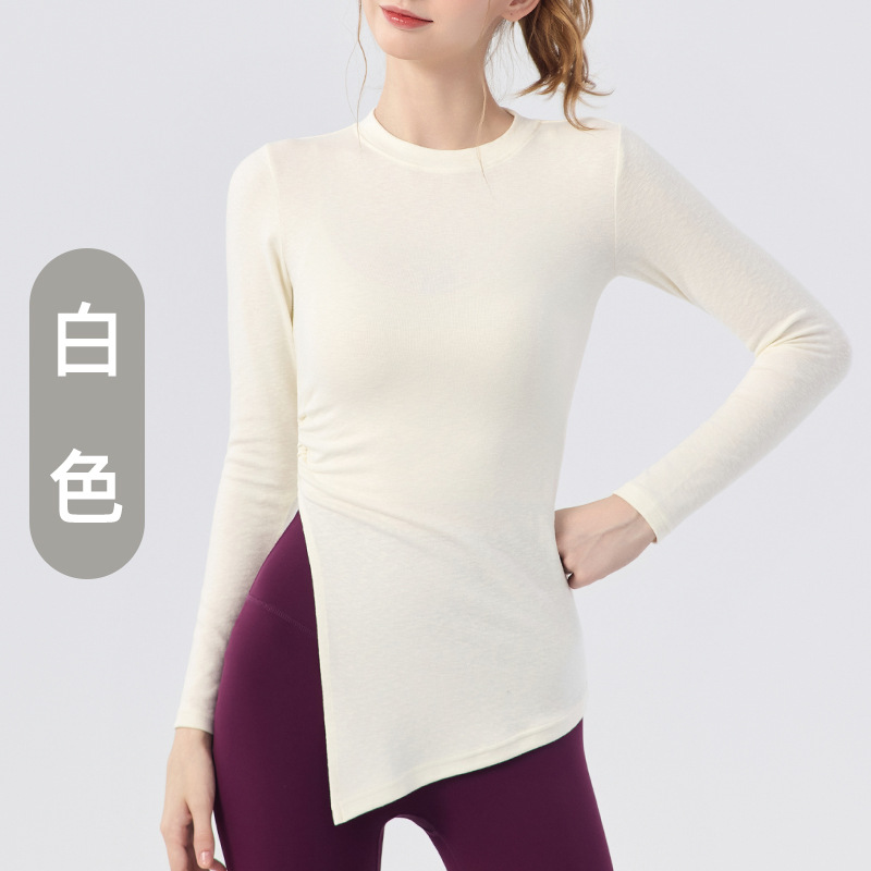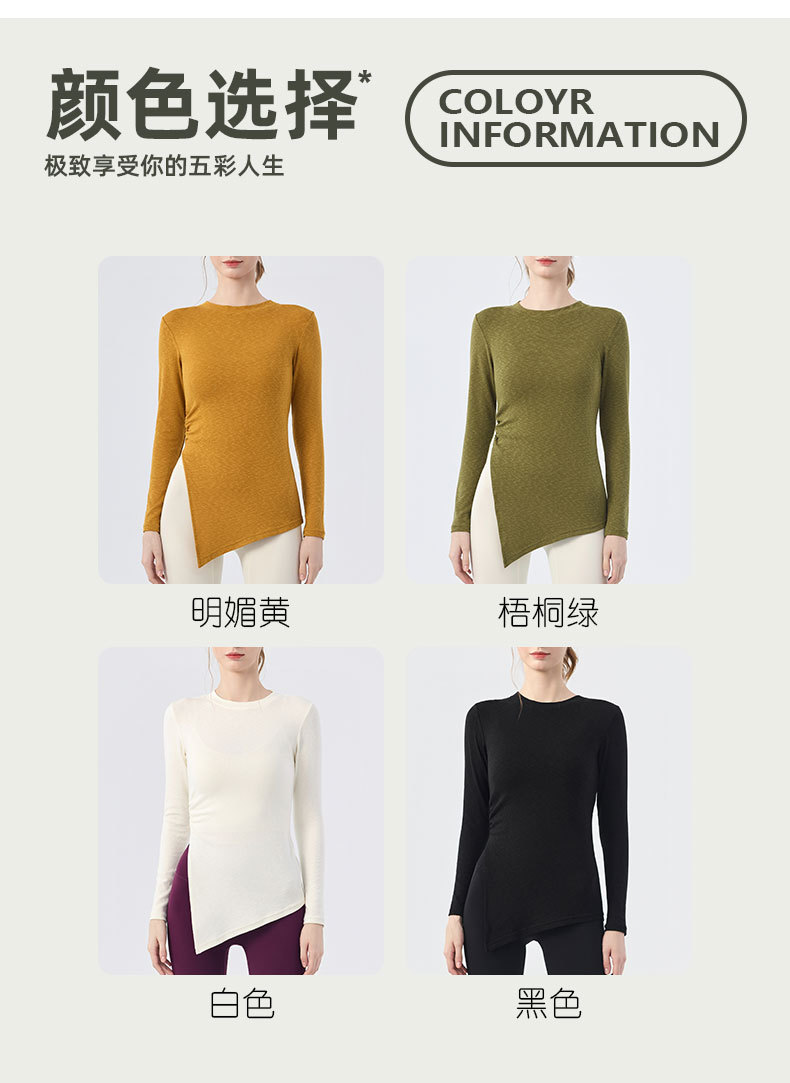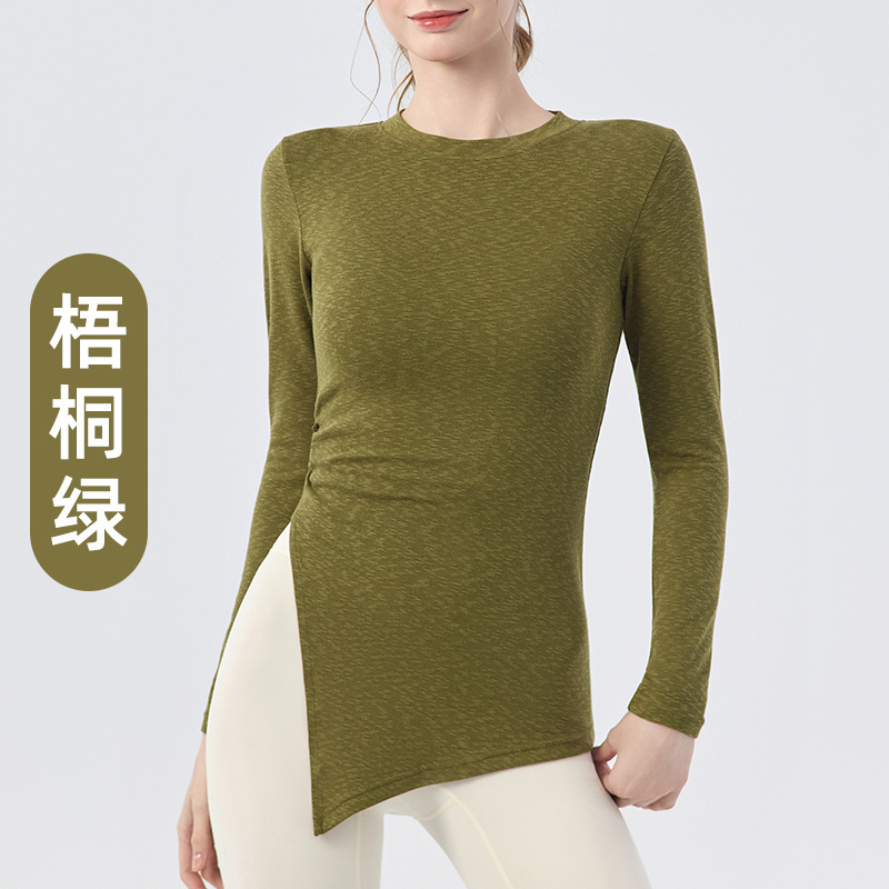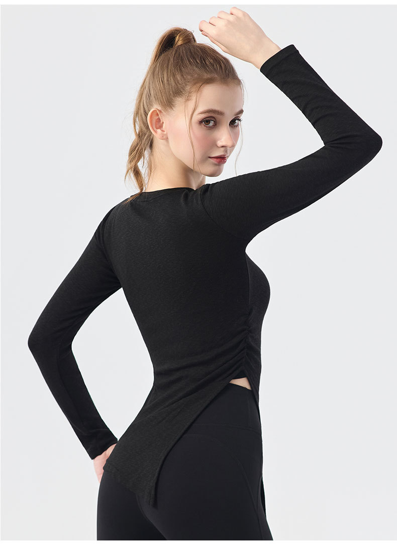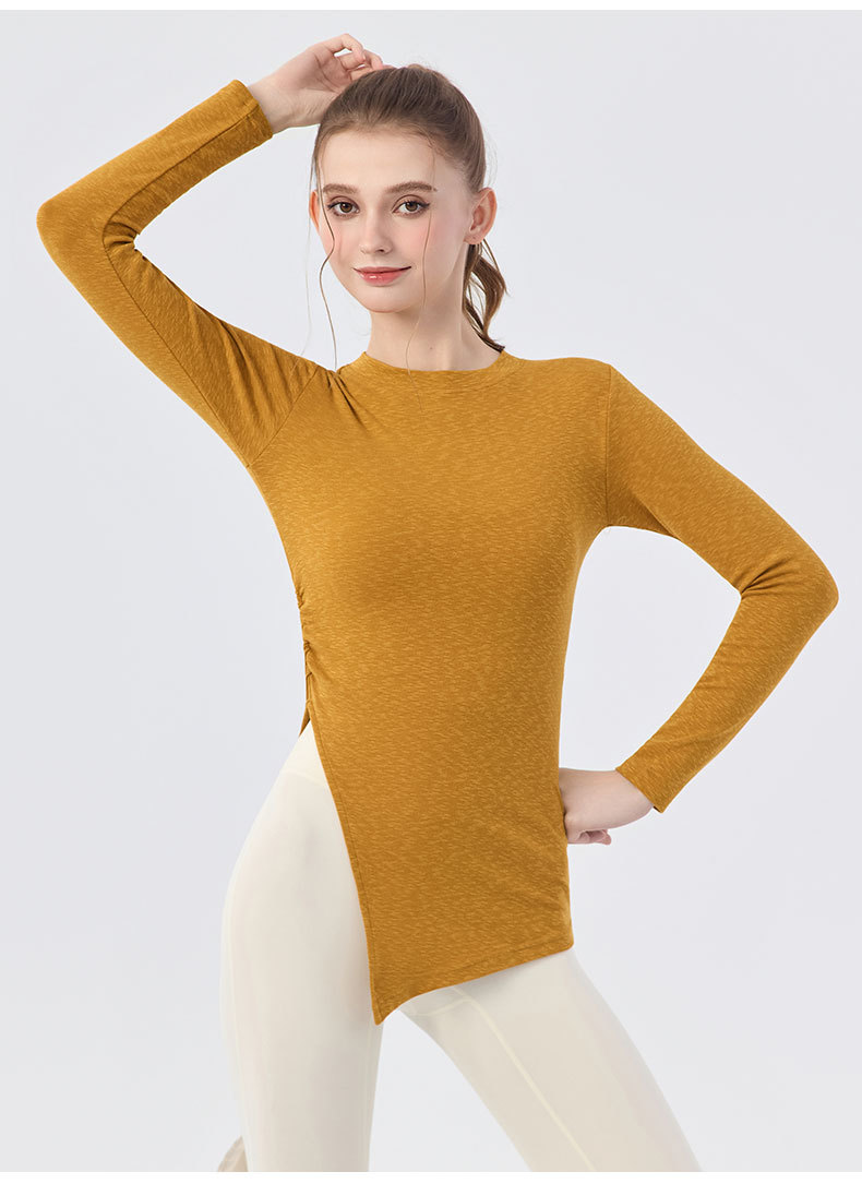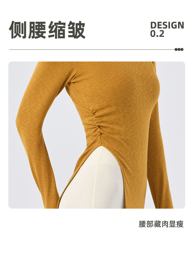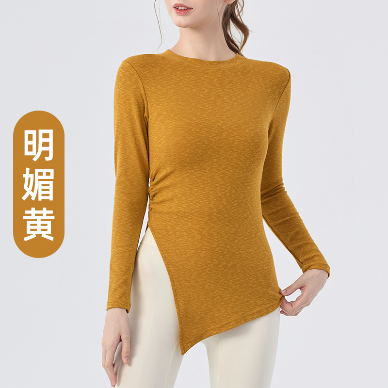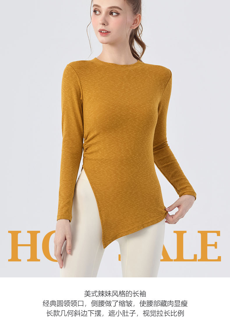 요가 커버업 긴팔 엉덩이 커버 여성용 주름 측면 슬릿 루즈 캐주얼 가을 피트니스 필라테스 요가복 여성용스토어 가기