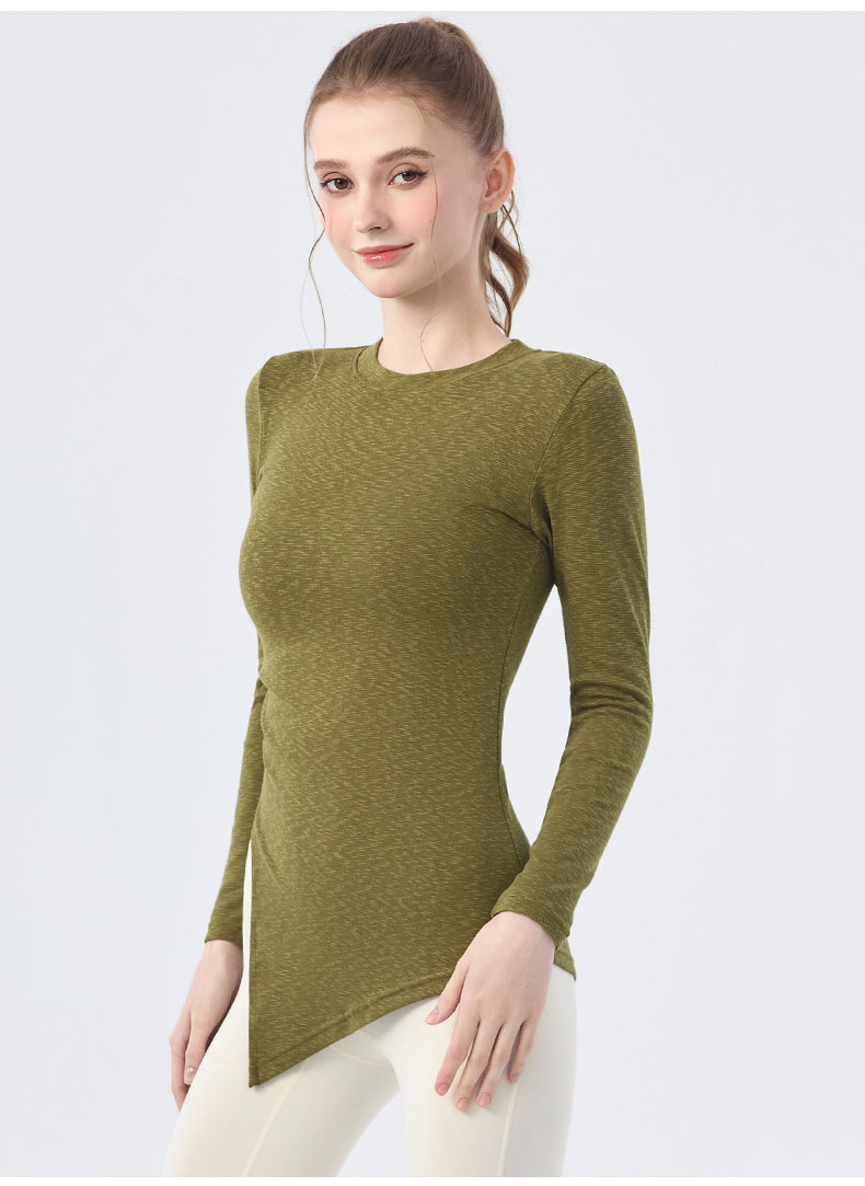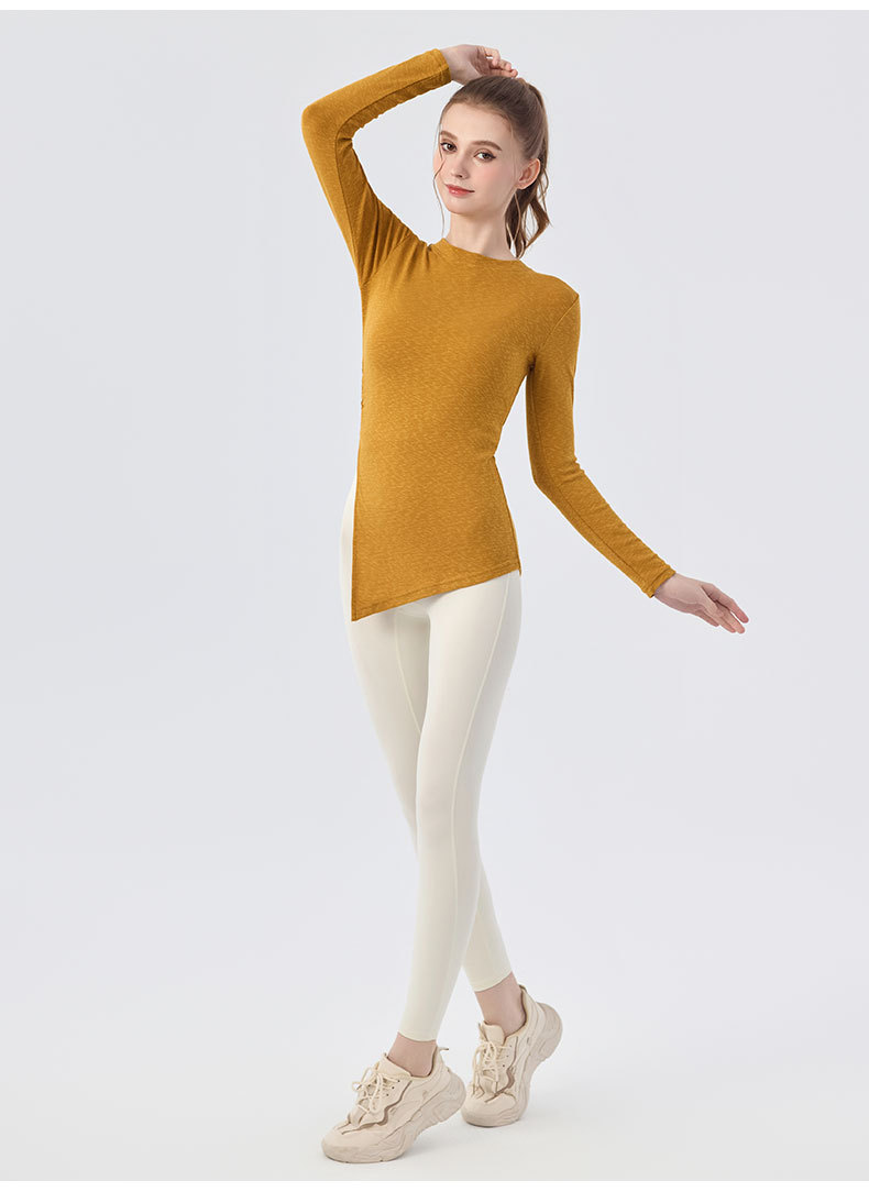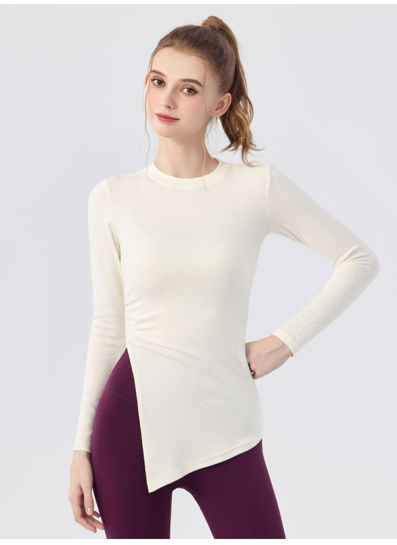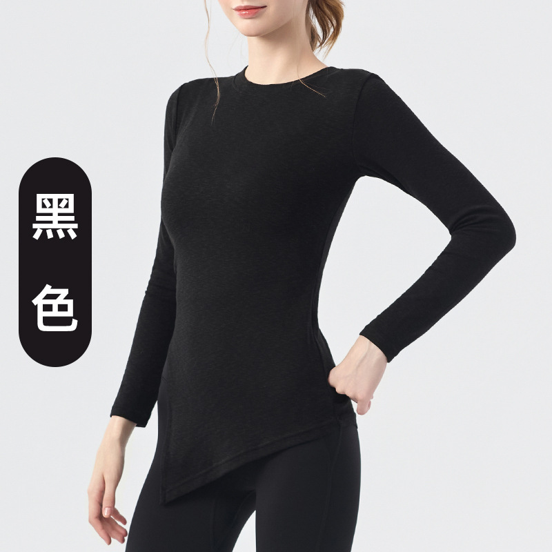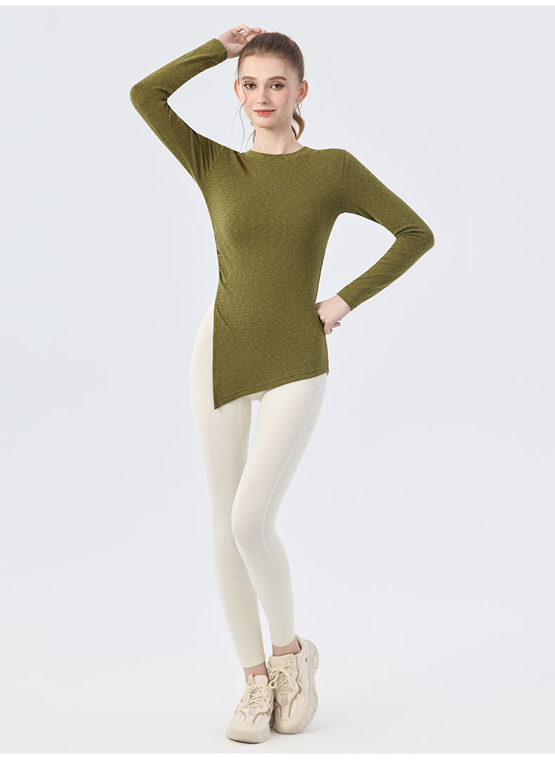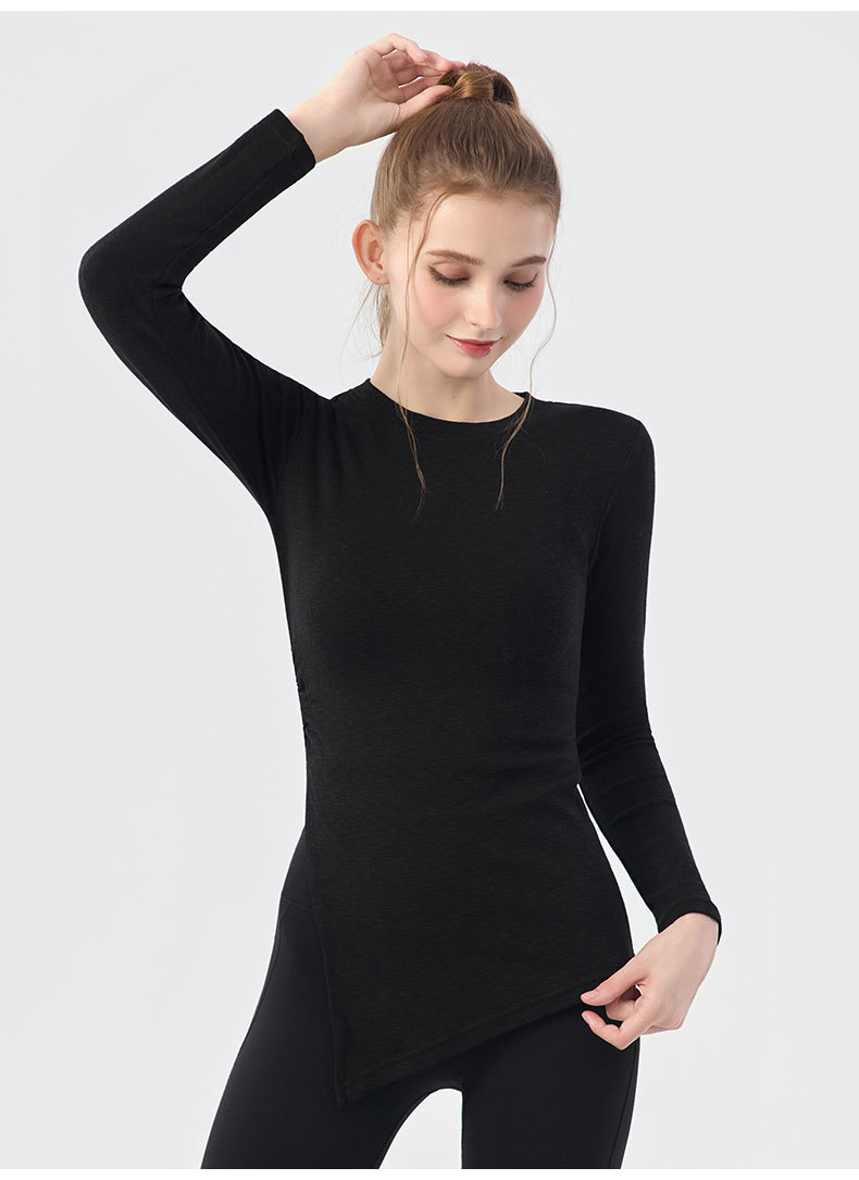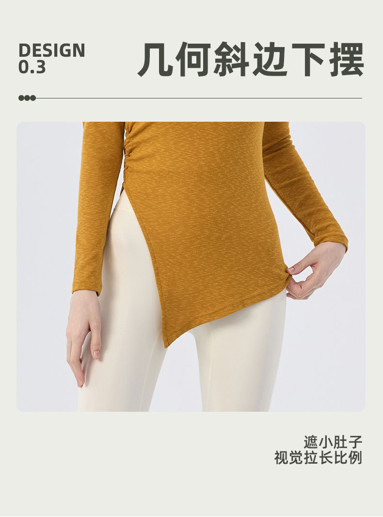 요가 커버업 긴팔 엉덩이 커버 여성용 주름 측면 슬릿 루즈 캐주얼 가을 피트니스 필라테스 요가복 여성용스토어 가기