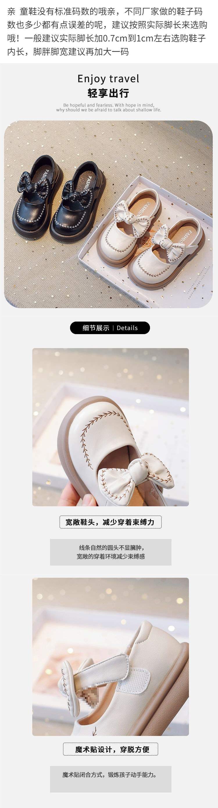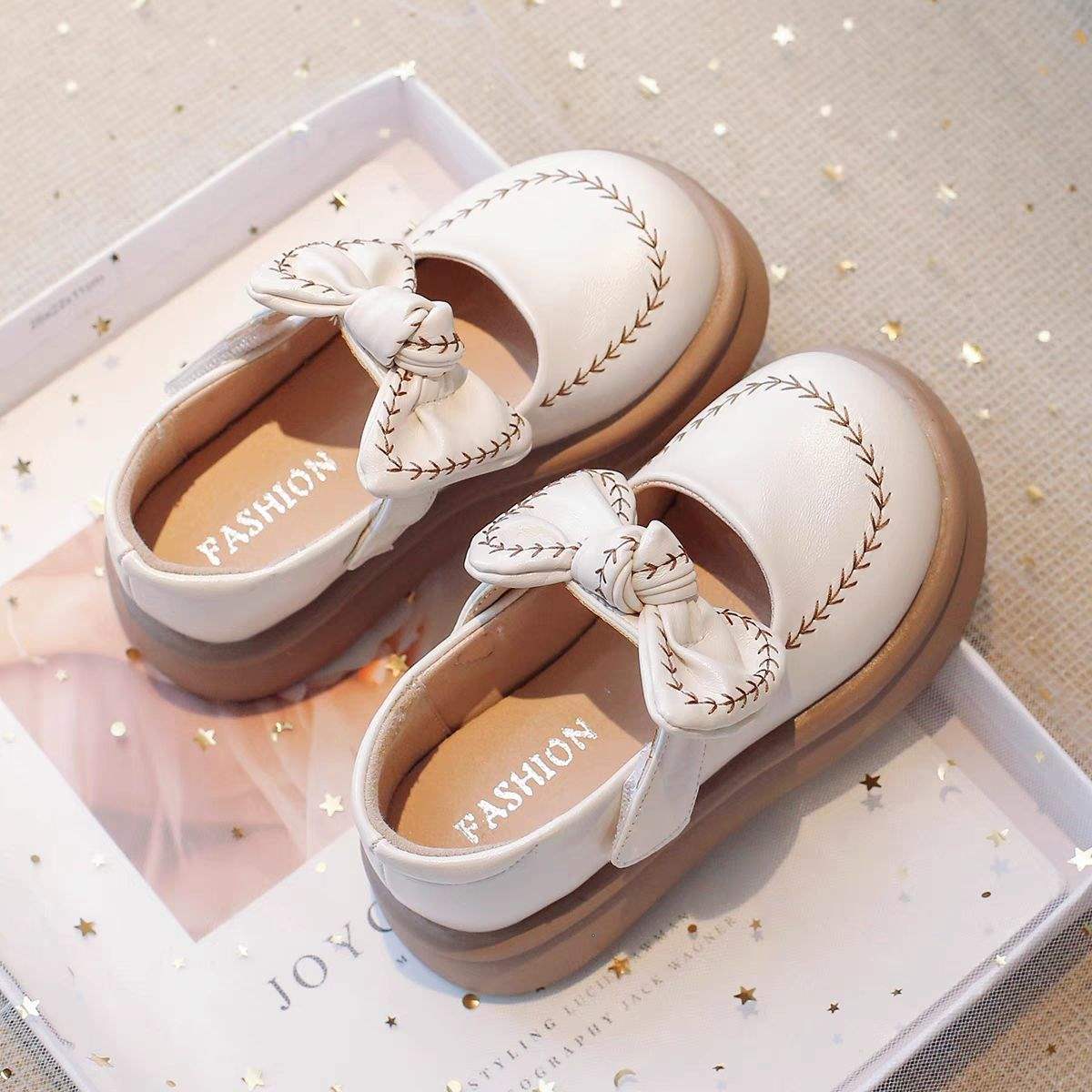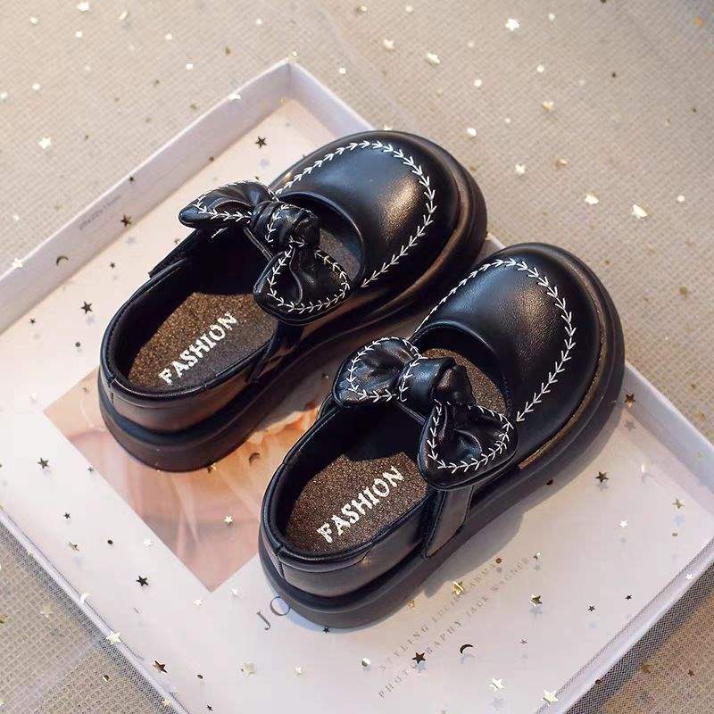 여아용 작은 가죽 신발, 봄과 가을 새 신발, 여아용 아기 신발, 부드러운 밑창 미끄럼 방지 나비 매듭 공주 신발, 아동 신발스토어 가기