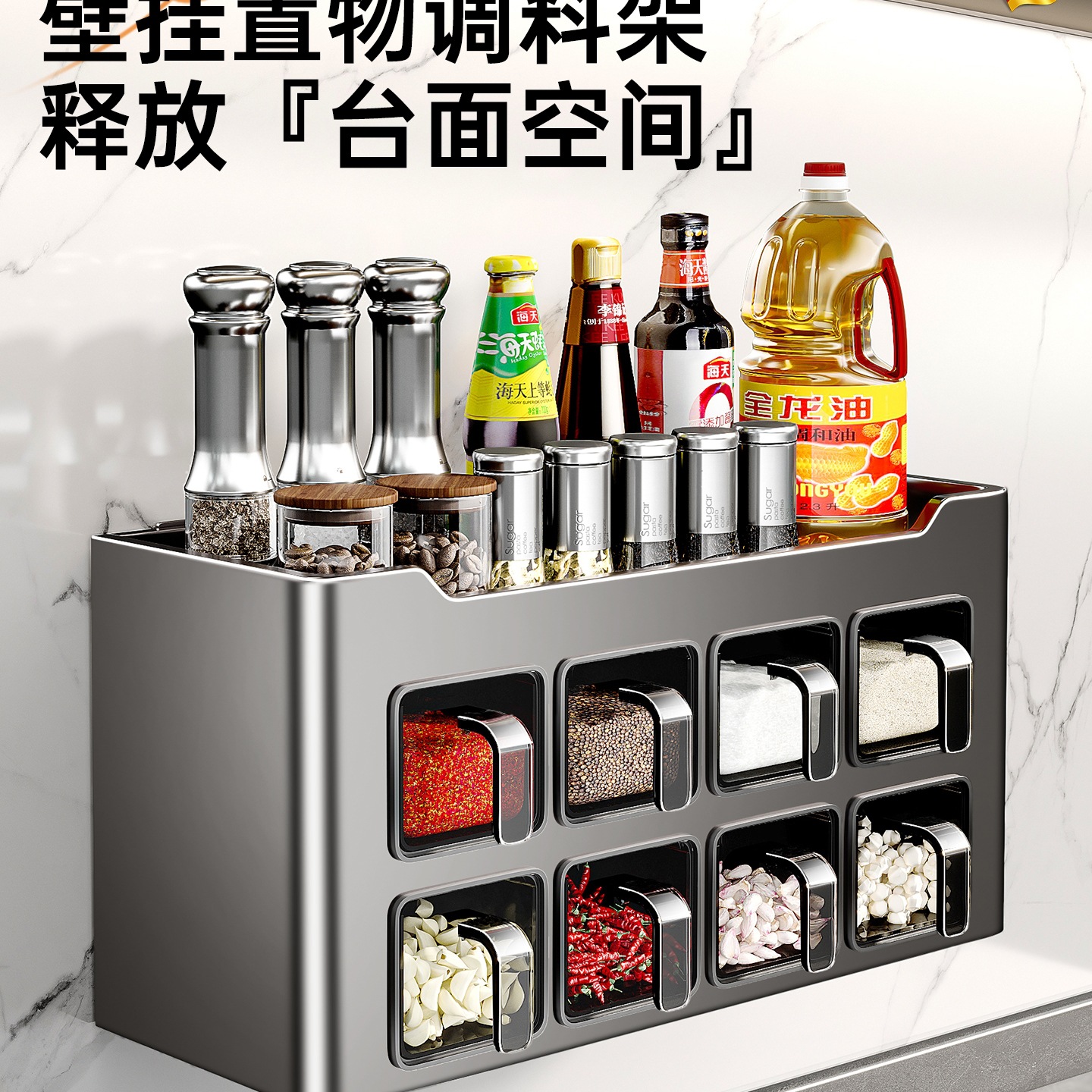 주방 조미료 보관함, 펀치 없는 벽걸이형 다기능 조미료 조합 세트, 조미료 상자, 주방 가정용스토어 가기