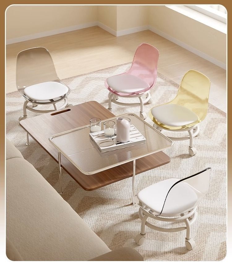아크릴 의자 자동 범용 휠 어린이 유아 의자 메쉬 풀리 작은 의자