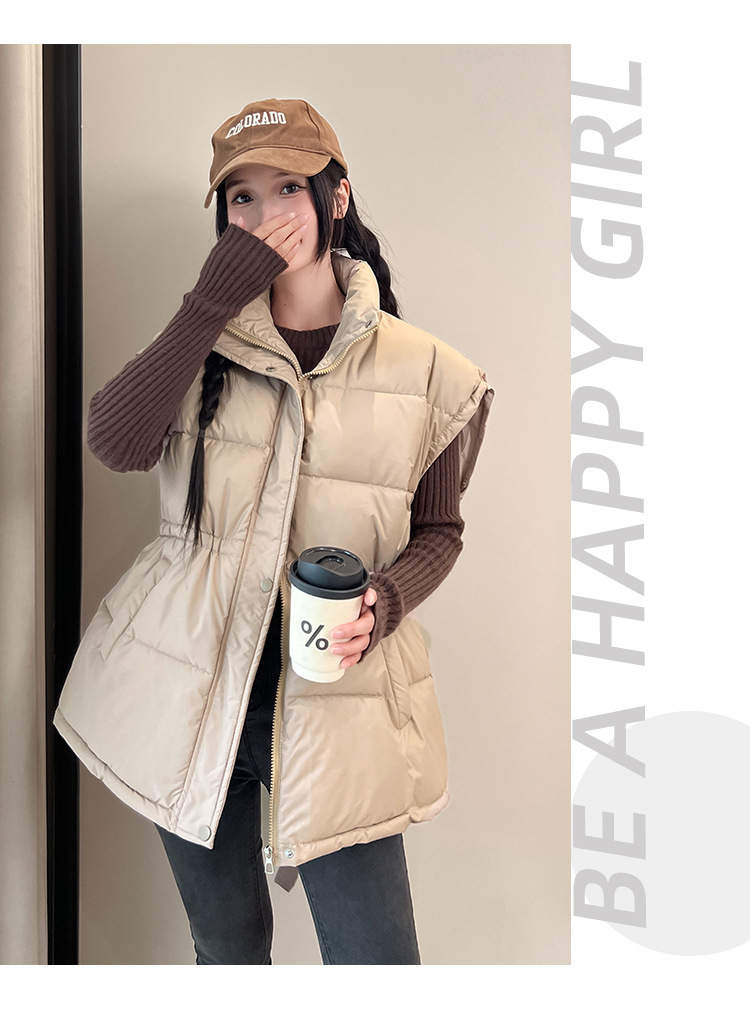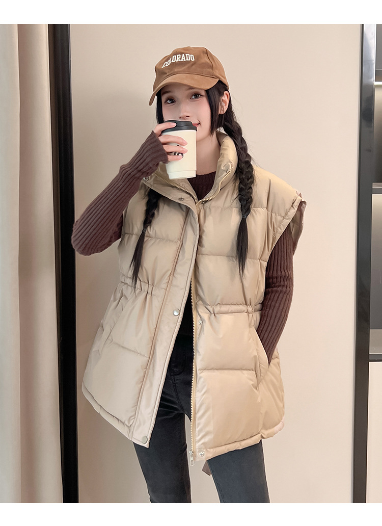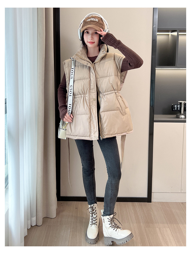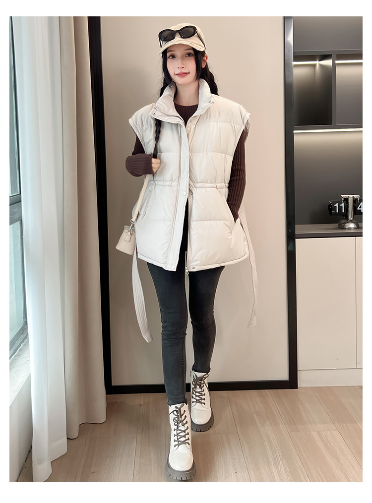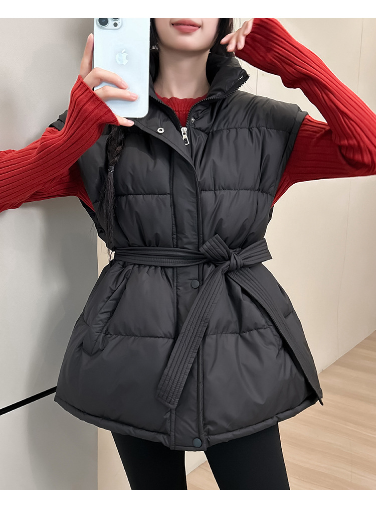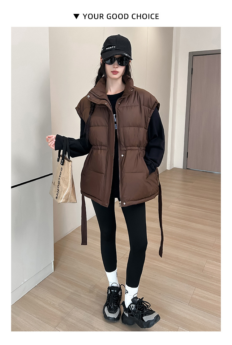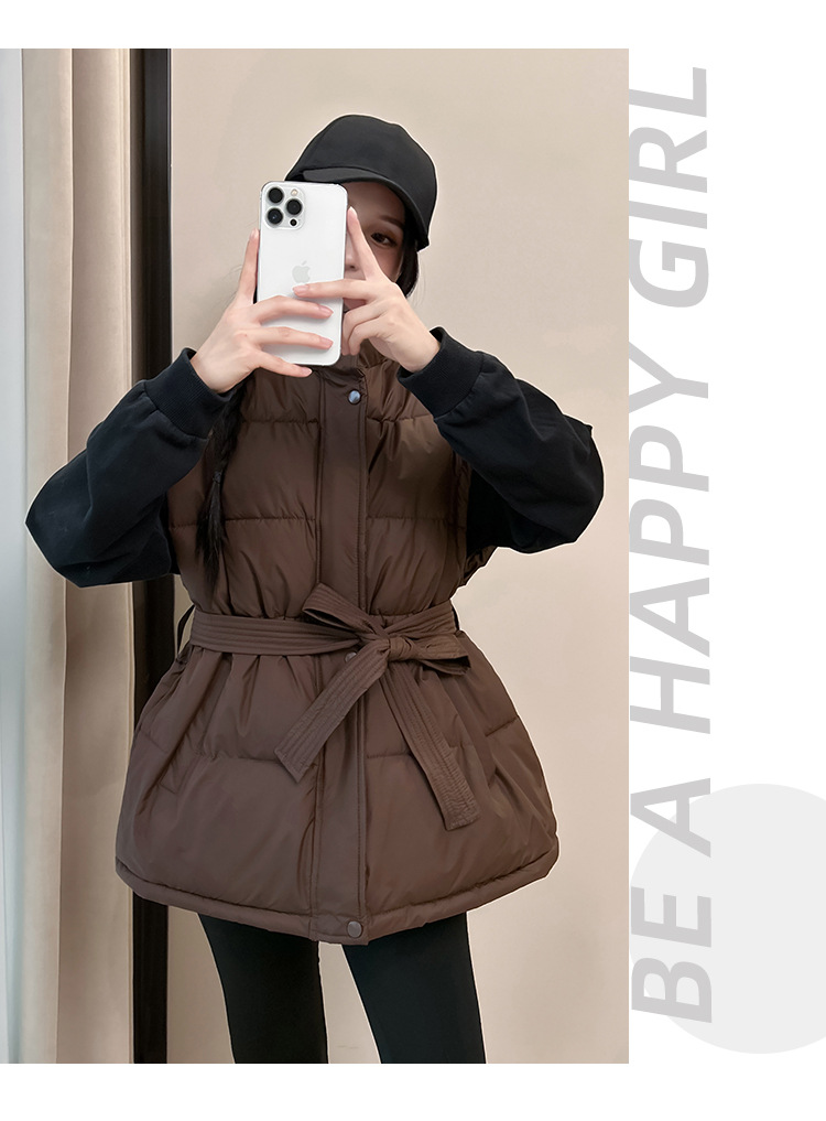 여성을위한 오프 숄더 코튼 조끼 짧은 2025 가을, 겨울 새로운 패션 벨트 스타일 한국어 버전 두꺼운 대외 무역 스탠드 업 칼라 코튼 조끼