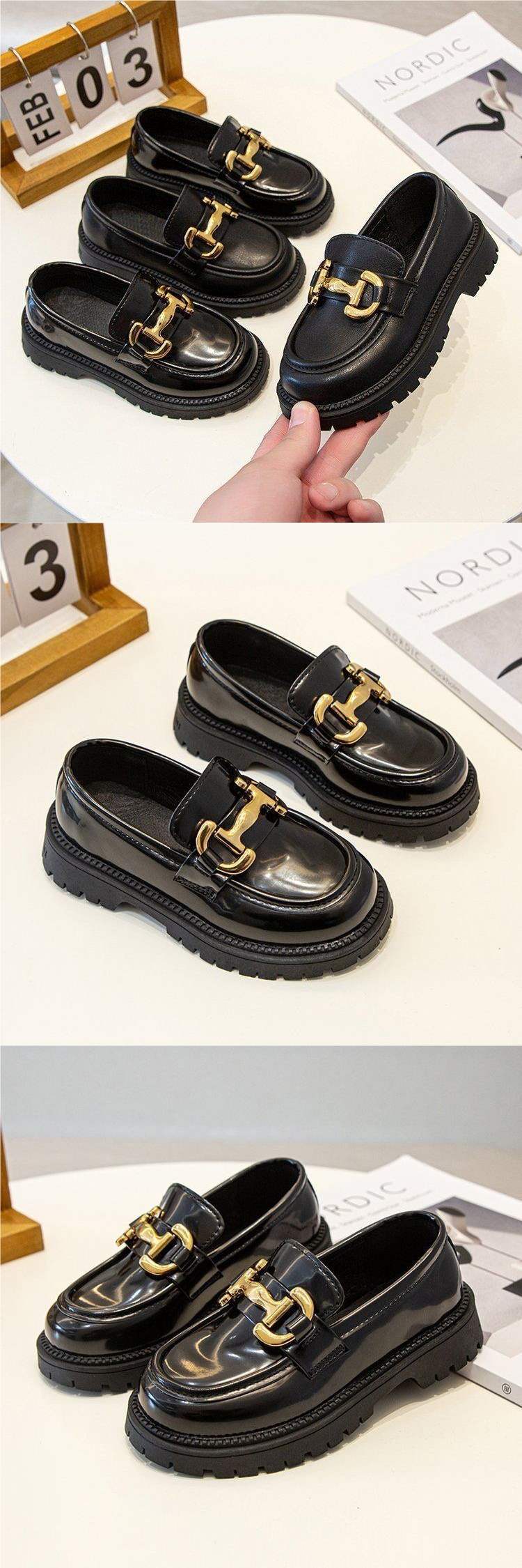 여아용 작은 가죽 신발 2025 봄, 가을 새로운 스타일 중대형 어린이 부드러운 밑창 여아 신발 로퍼 영국식 어린이 신발스토어 가기