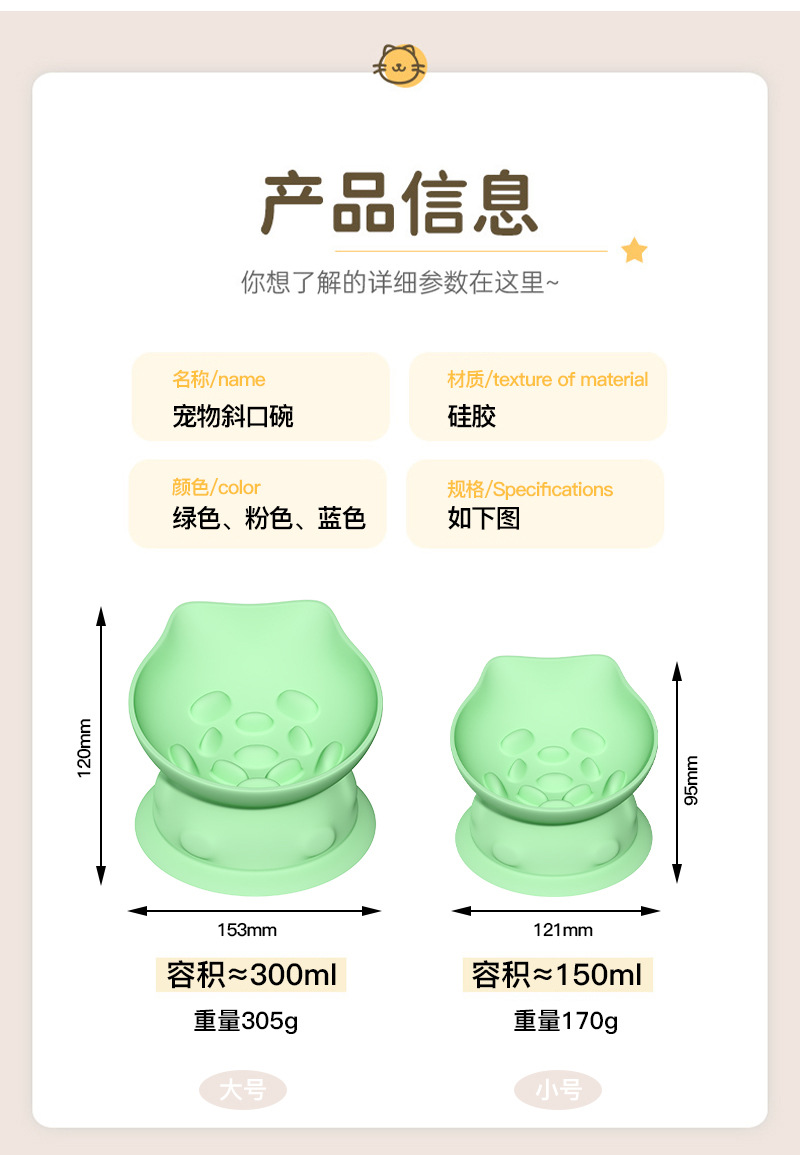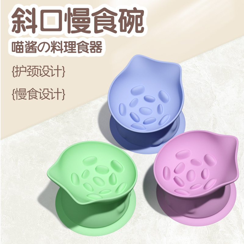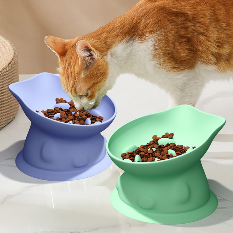 고양이 그릇 실리콘 고양이 그릇 귀여운 검은색 마시는 그릇 높은 발 흡입 컵 애완 동물 그릇 고양이 음식 그릇 경사진 입 목 보호 개 그릇