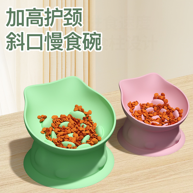 고양이 그릇 실리콘 고양이 그릇 귀여운 검은색 마시는 그릇 높은 발 흡입 컵 애완 동물 그릇 고양이 음식 그릇 경사진 입 목 보호 개 그릇스토어 가기