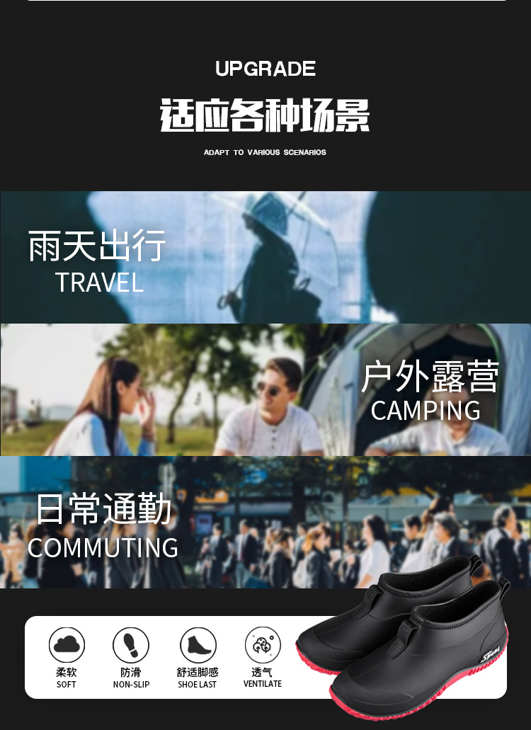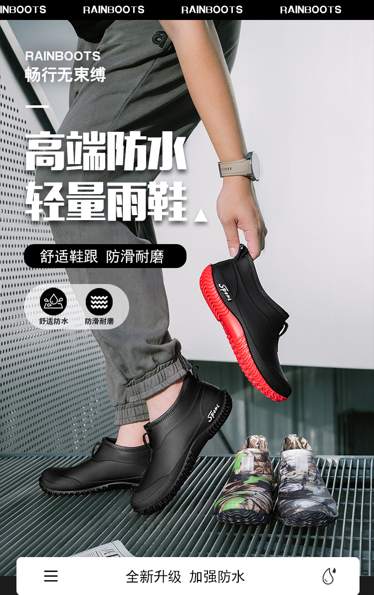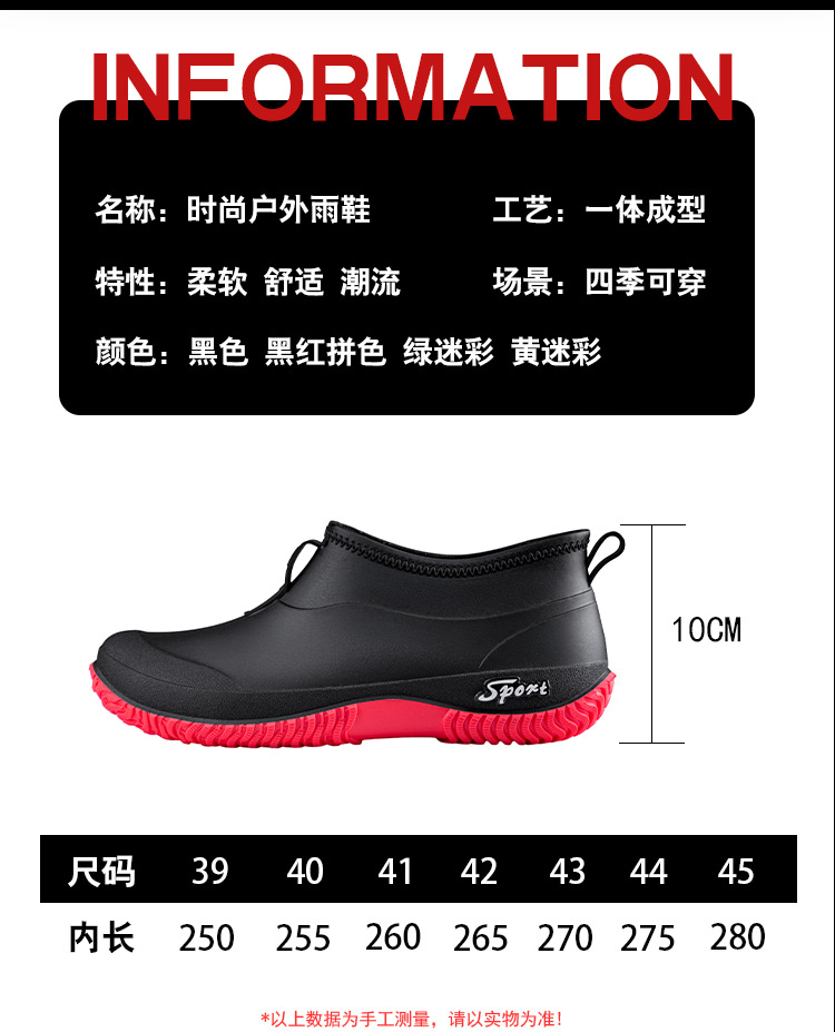 레인부츠 남성용 방수화 사계절 고무신 로우탑 레인부츠 숏튜브 학생 한국판 패션 작업 미끄럼 방지 및 내마모성스토어 가기