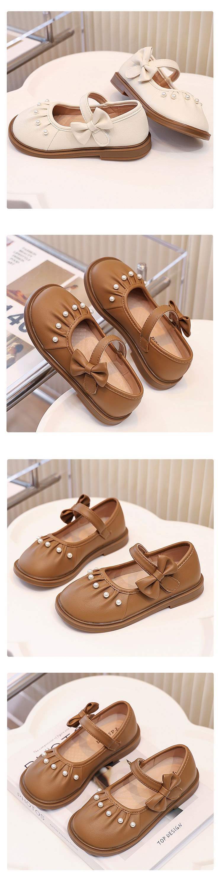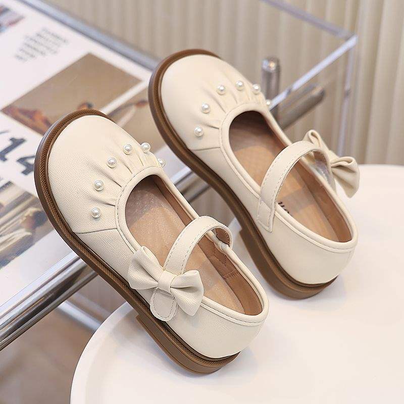 여자 가죽 신발 봄과 가을 새로운 2025 진주 통기성 어린이 공주 아기 신발 큰 어린이 부드러운 단독 신발스토어 가기