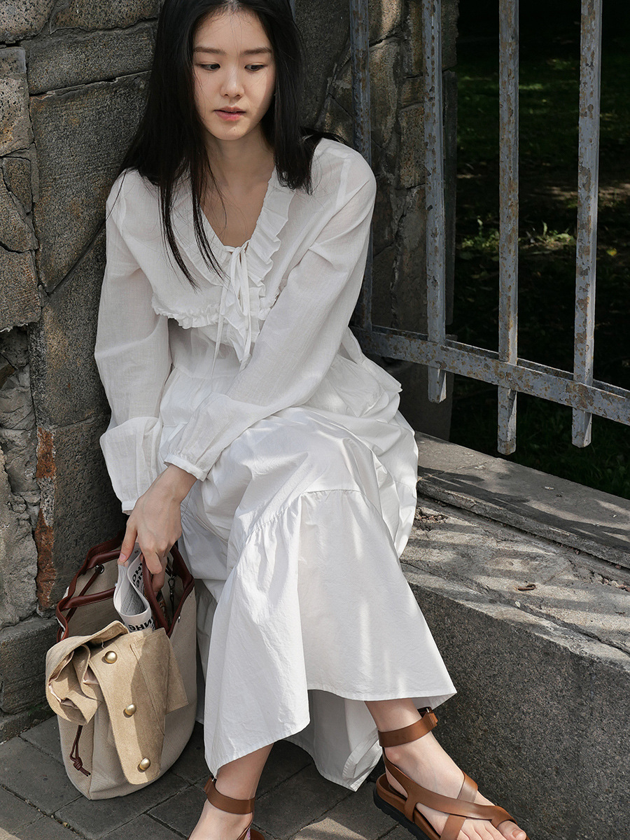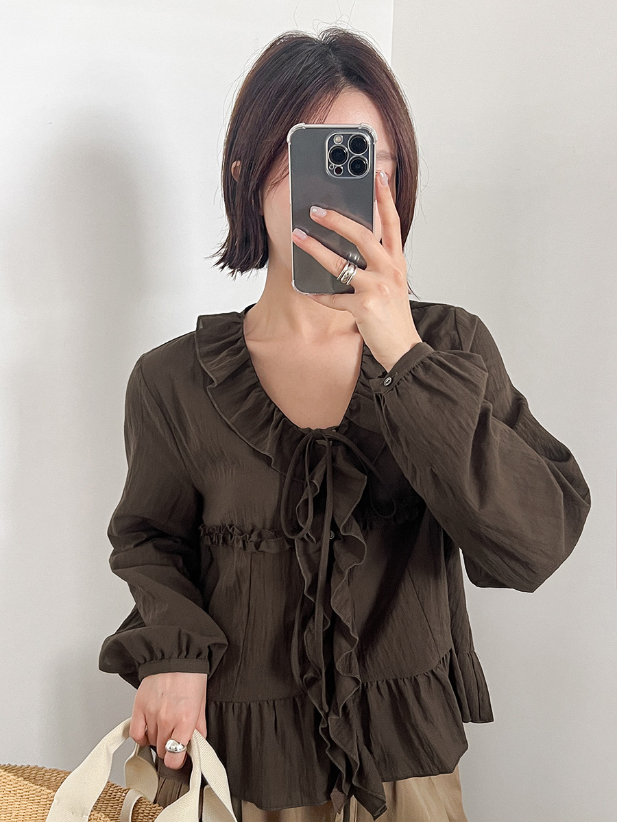 심플하고 단조롭지 않은 러플 레이어드 셔츠, 편안하고 통기성이 좋으며 누구에게나 잘 어울리는 트렌디한 상의 01351