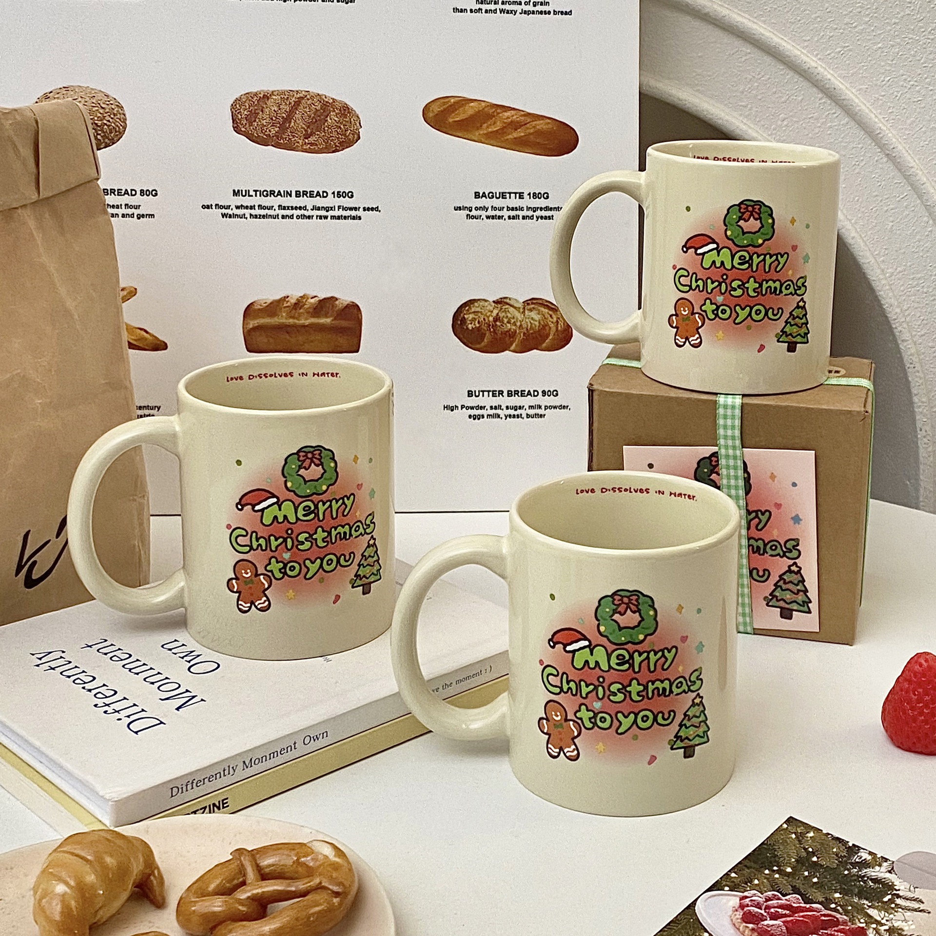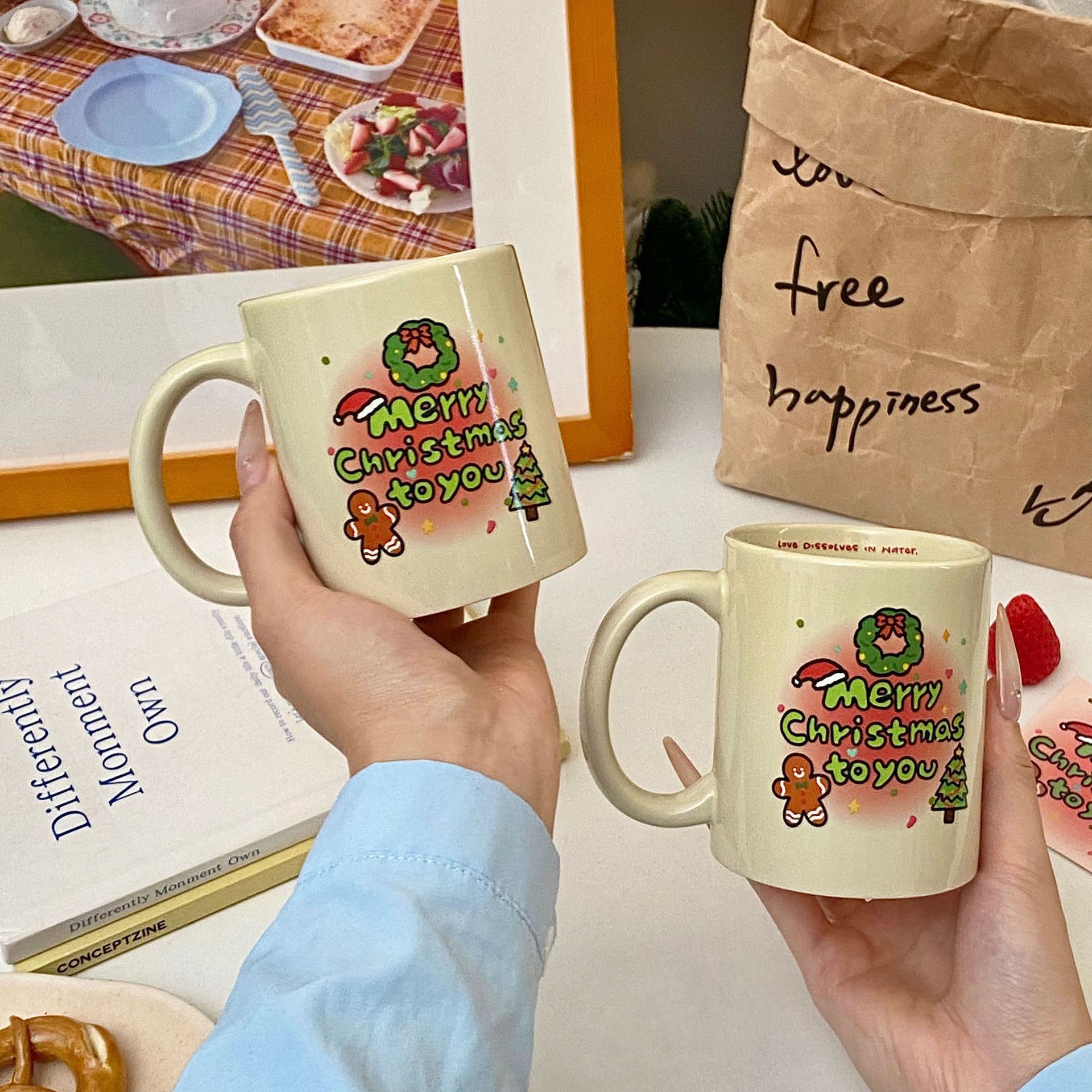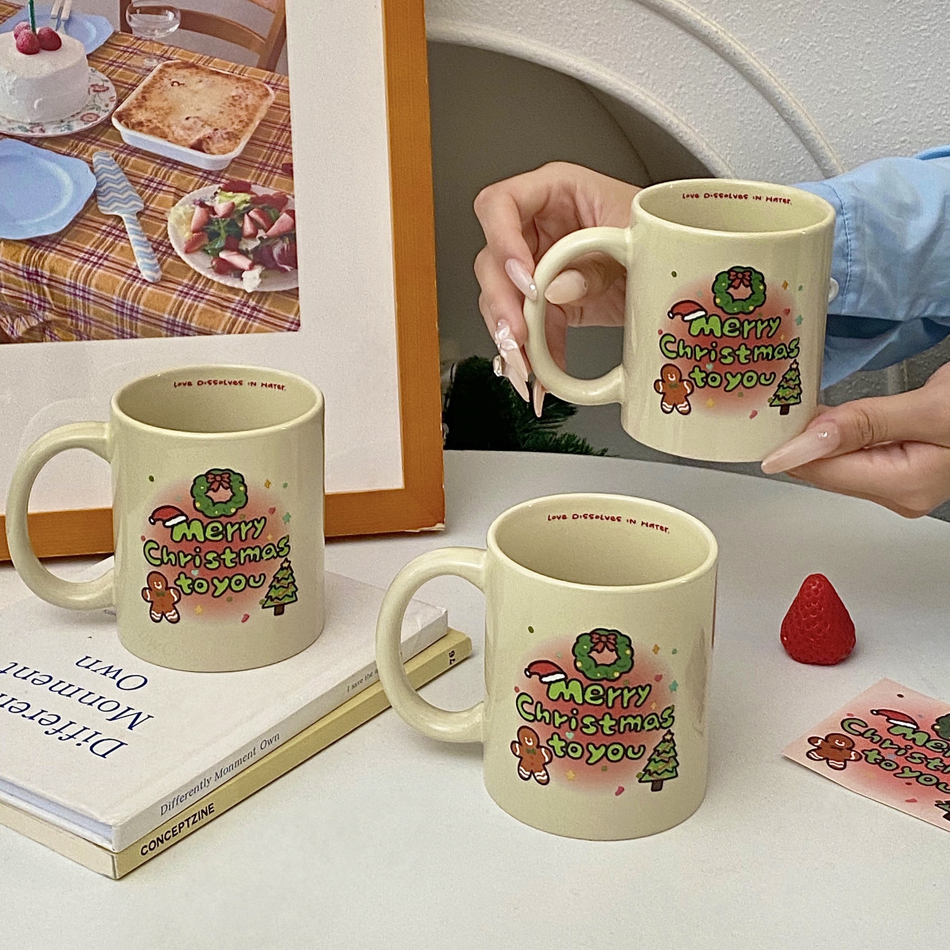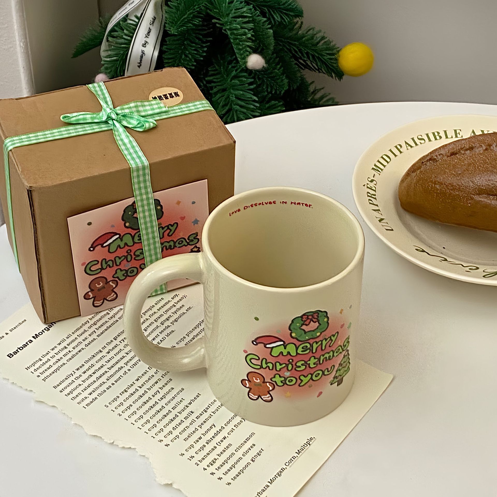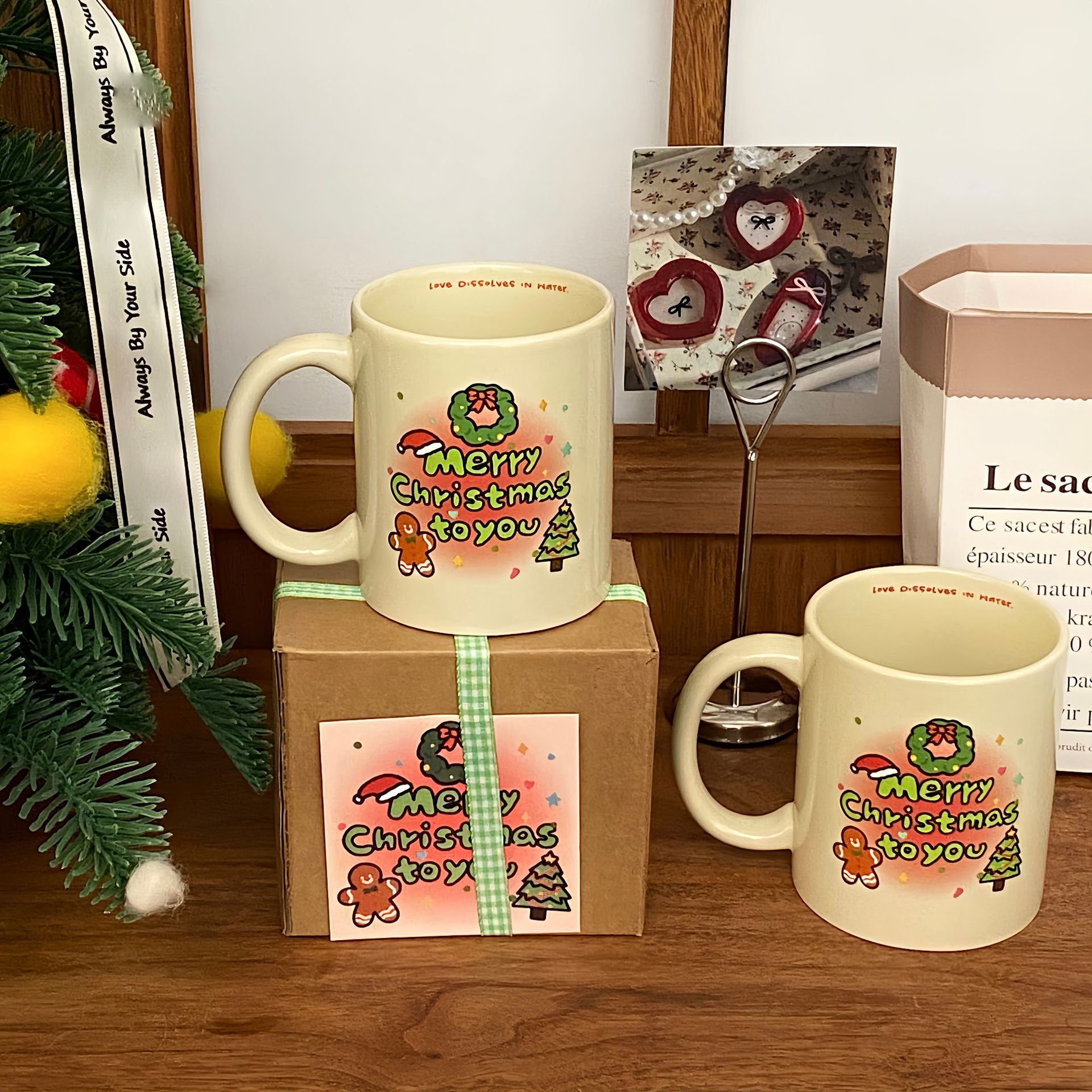 오리지널 그라데이션 크리스마스 트리 세라믹 컵, 고급스러운 만화 머그, 대용량 커피 컵, 사무실 물컵스토어 가기