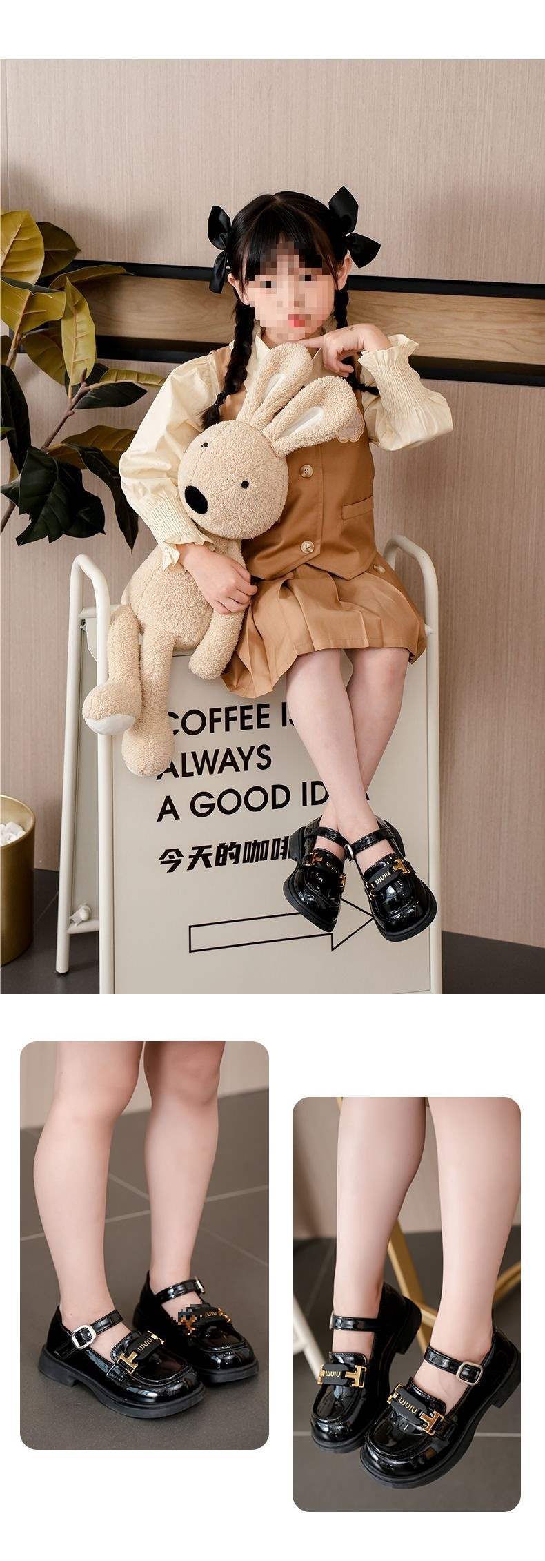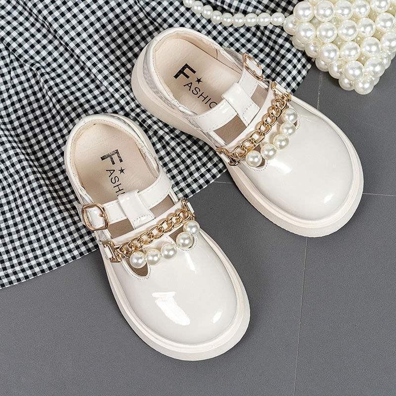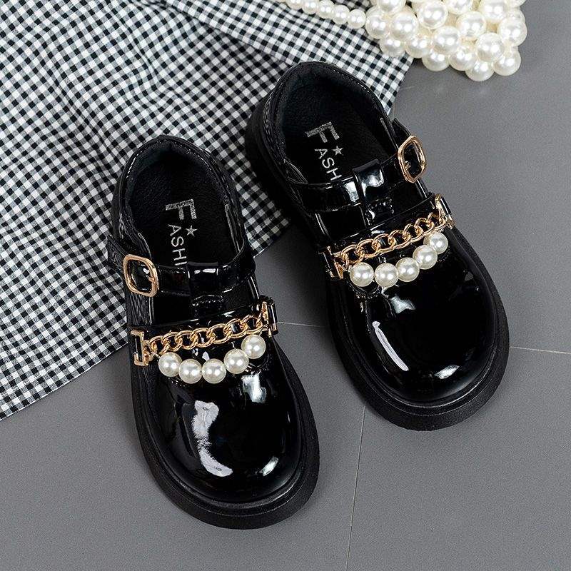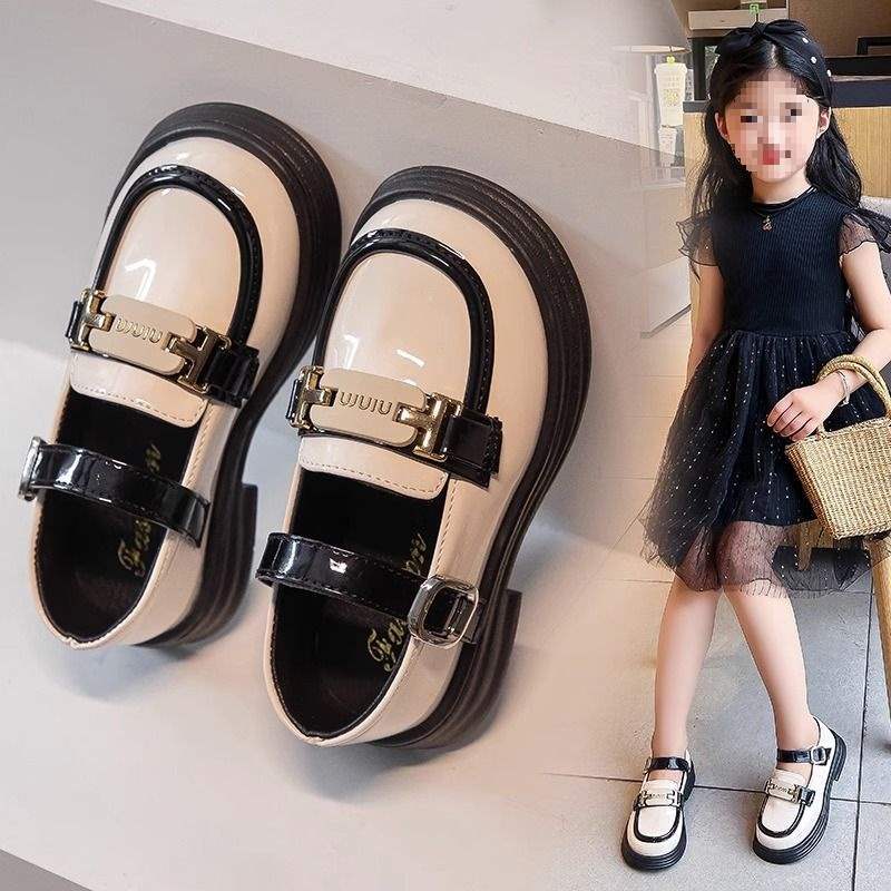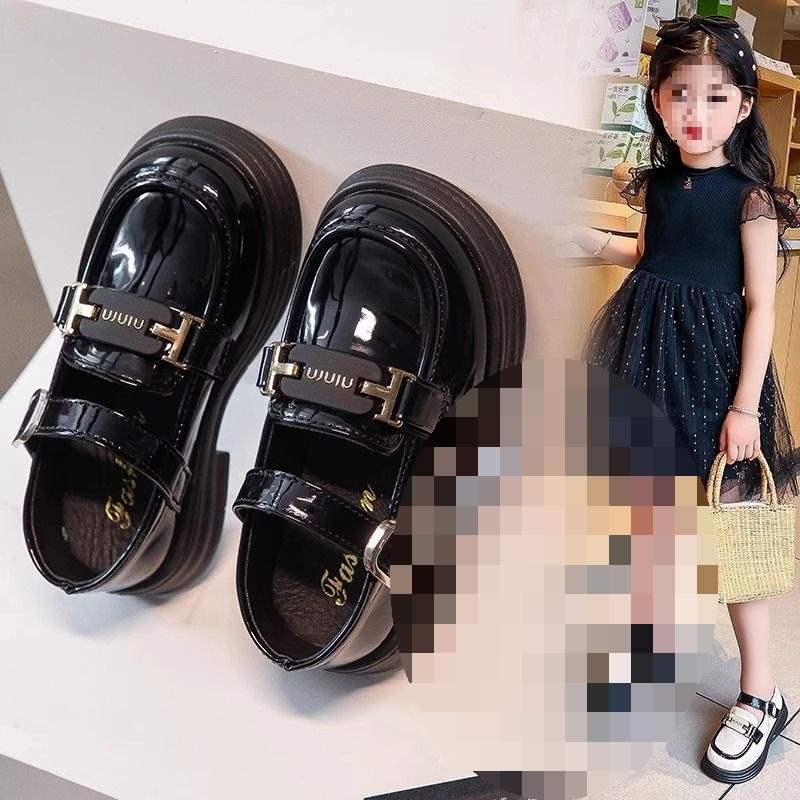 여자 가죽 신발 여름 2025 새로운 어린이 미끄럼 방지 부드러운 바닥 공주 신발 큰 어린이를위한 검은 영국 스타일 성능 신발스토어 가기