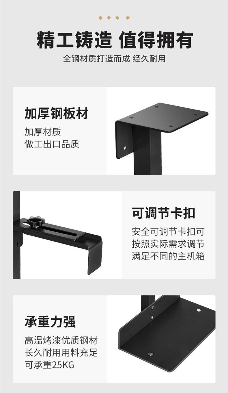 책상 아래에 걸린 호스트 브래킷 컴퓨터 걸이형 선반 사무실 데스크탑 메인 케이스 걸이 트레이 금속 브래킷