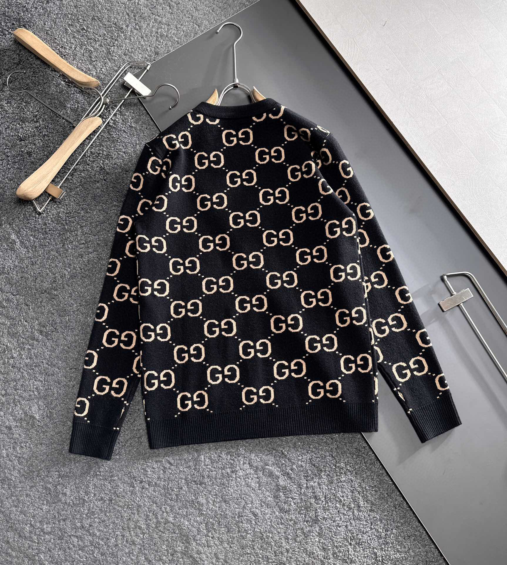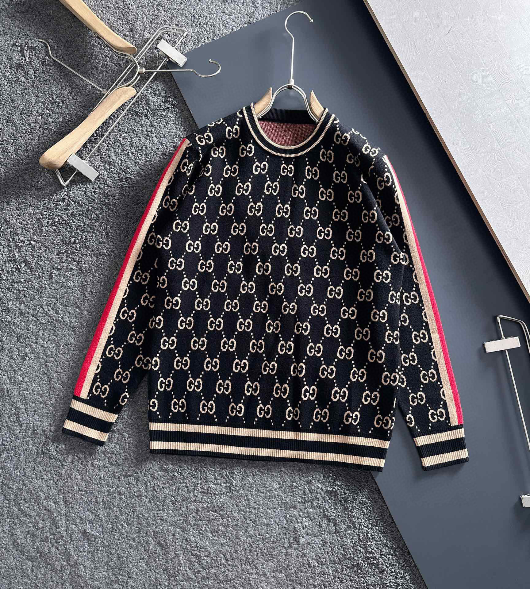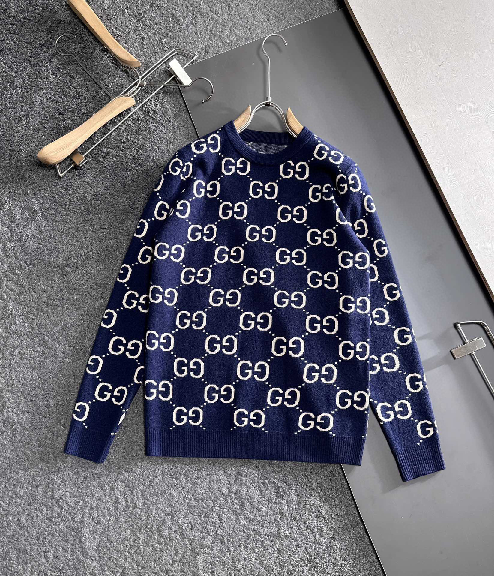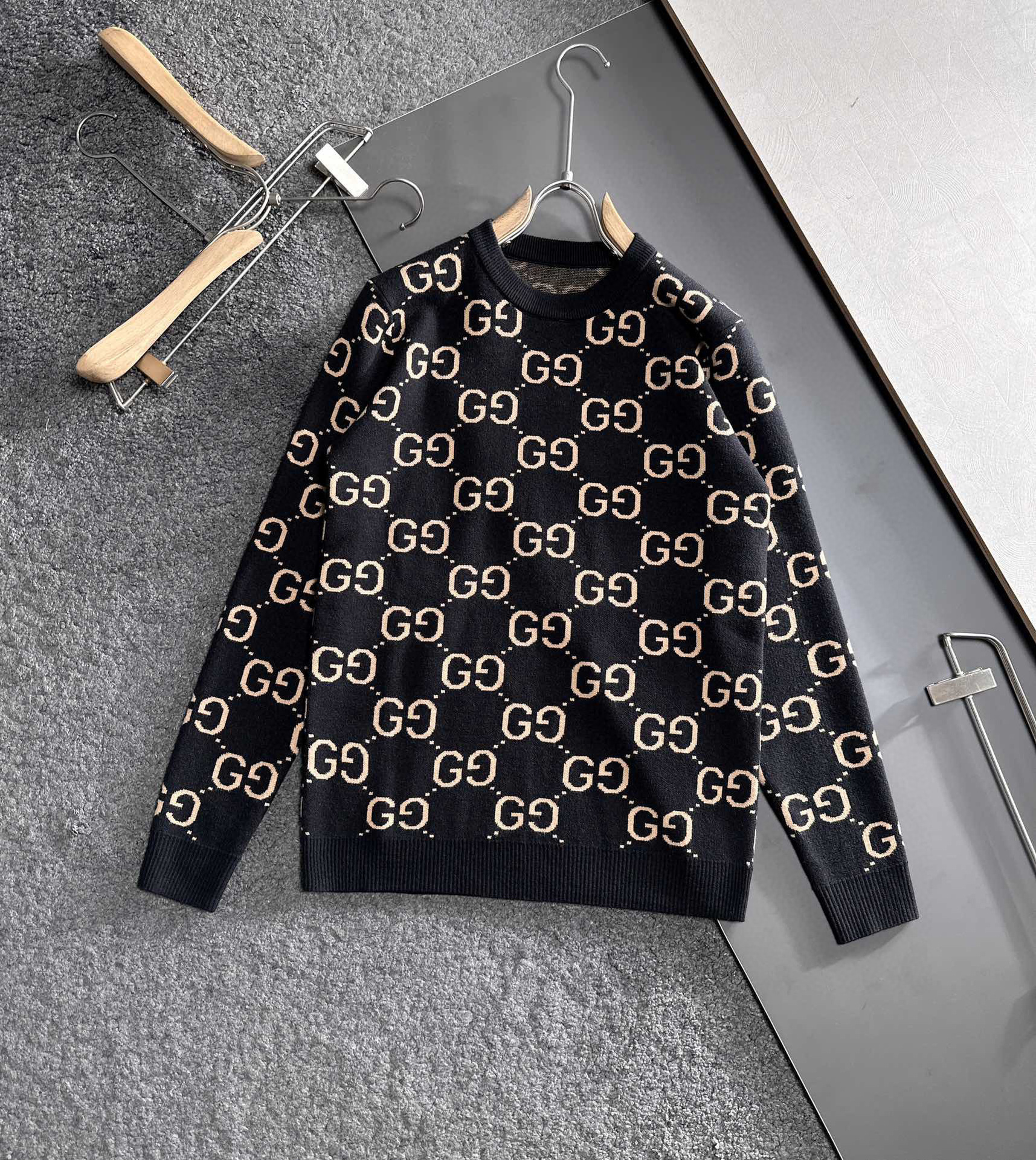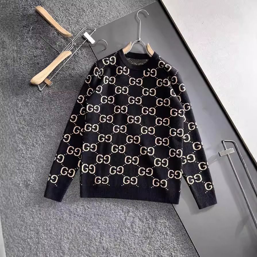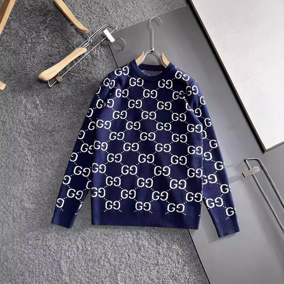 유럽 스타일 고급 레터링 자카드 라운드넥 풀오버 니트 스웨터 남녀 공용 캐주얼 트렌디 만능 아이템스토어 가기