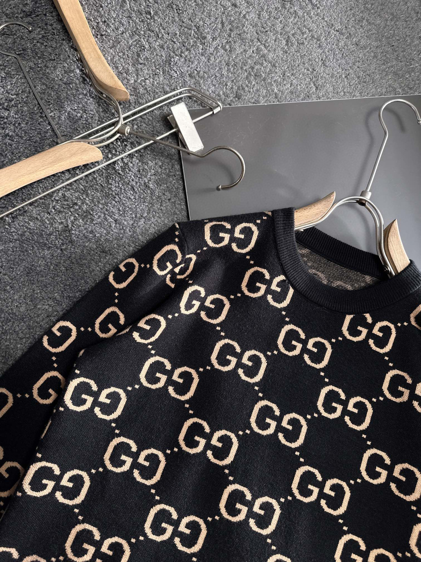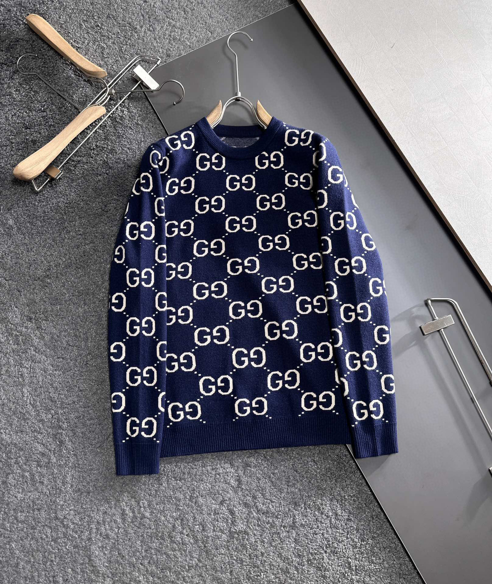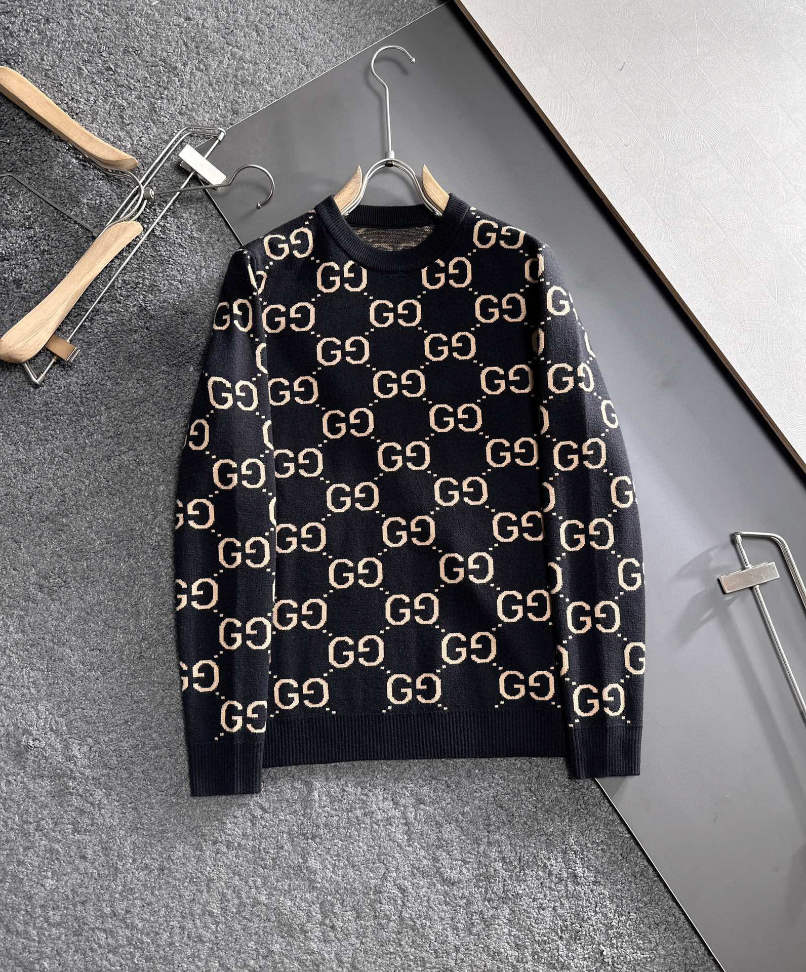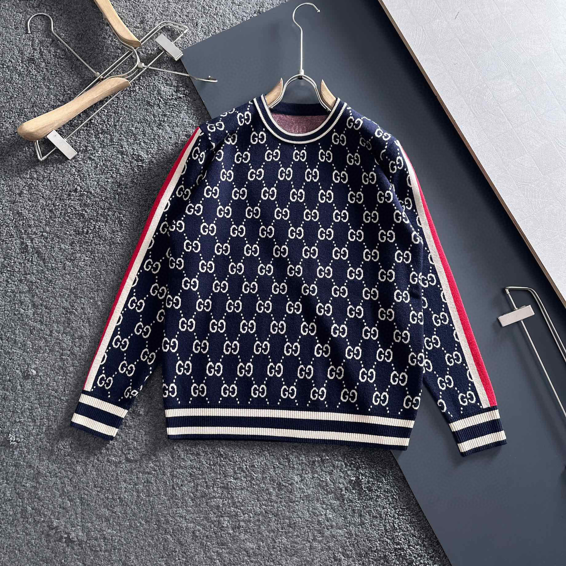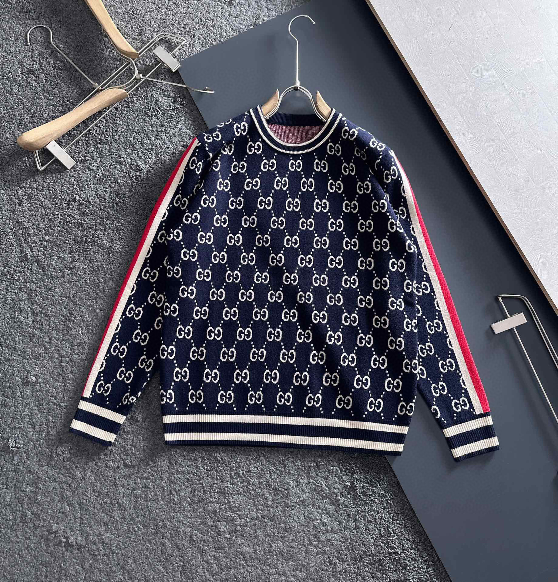 유럽 스타일 고급 레터링 자카드 라운드넥 풀오버 니트 스웨터 남녀 공용 캐주얼 트렌디 만능 아이템스토어 가기