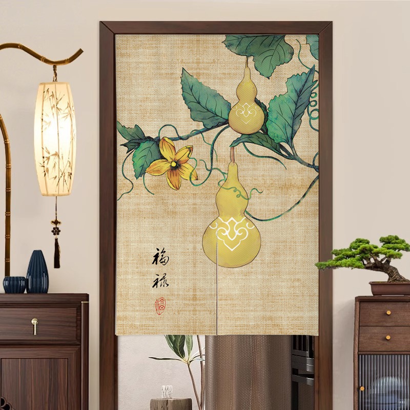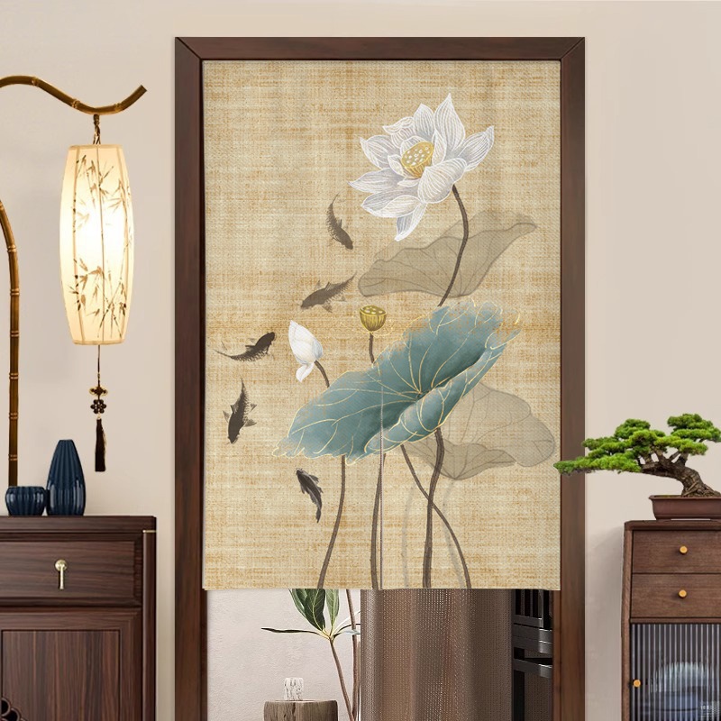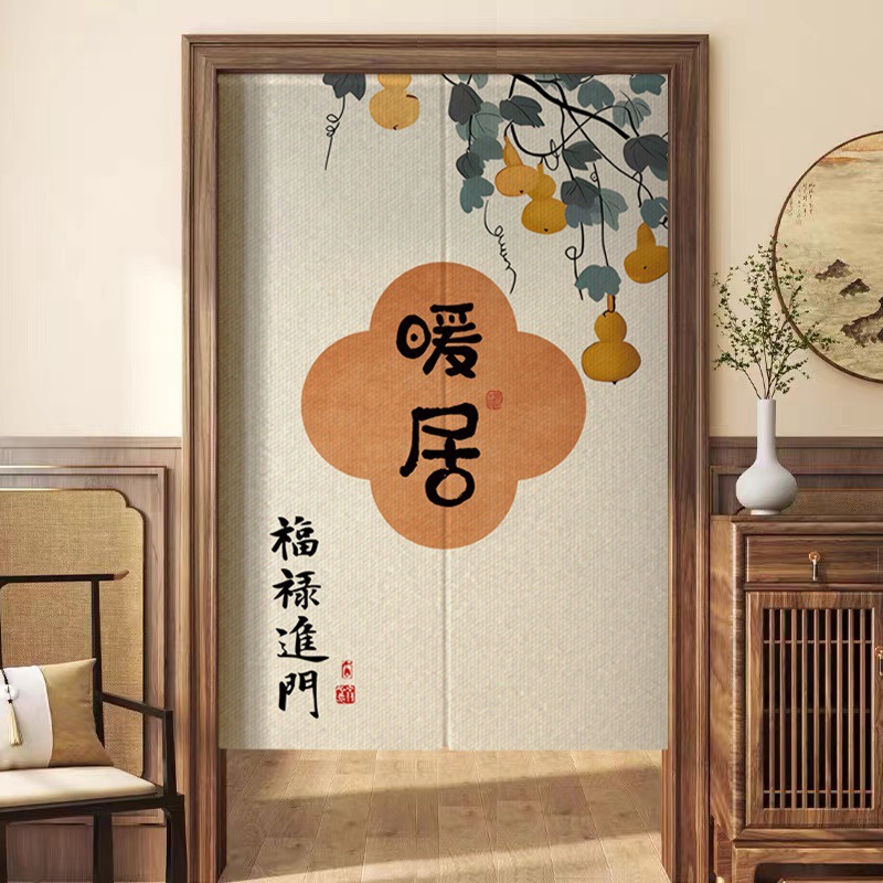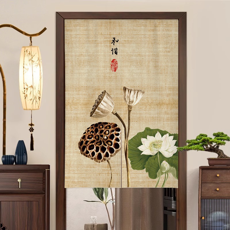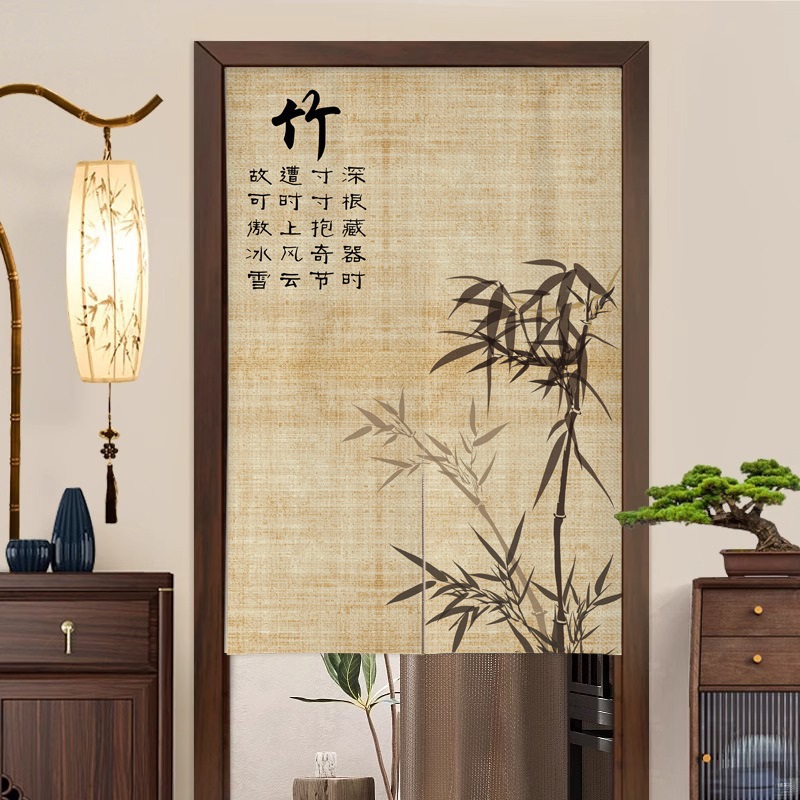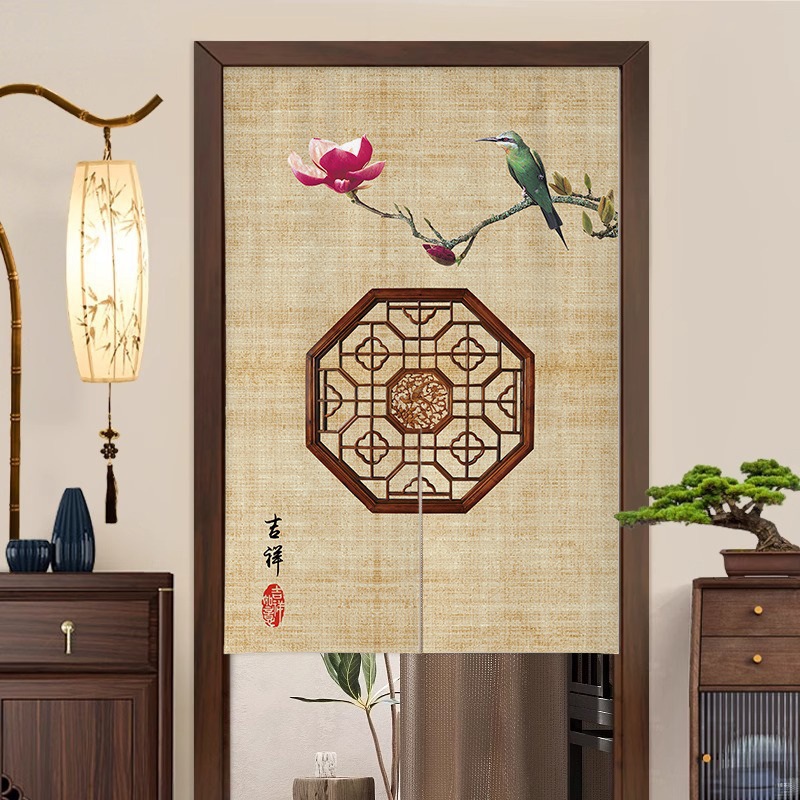 새로운 중국 스타일의 침실 도어 커튼, 짧은 반 커튼, 방 입구 도어 개인 정보 보호 커튼, 펀치 프리 커튼스토어 가기