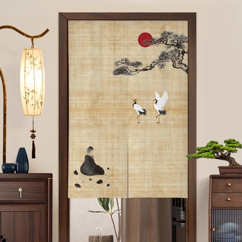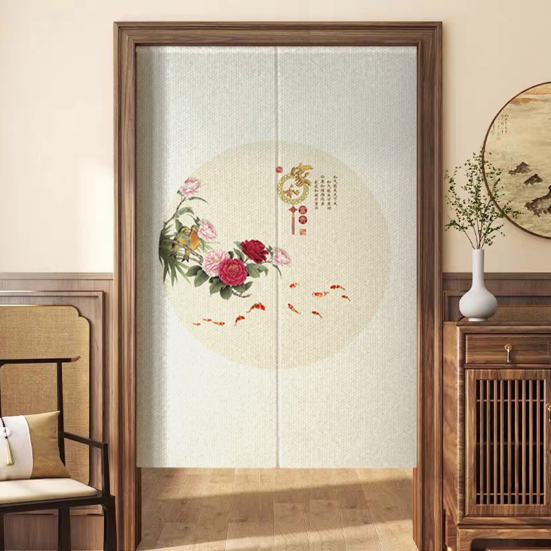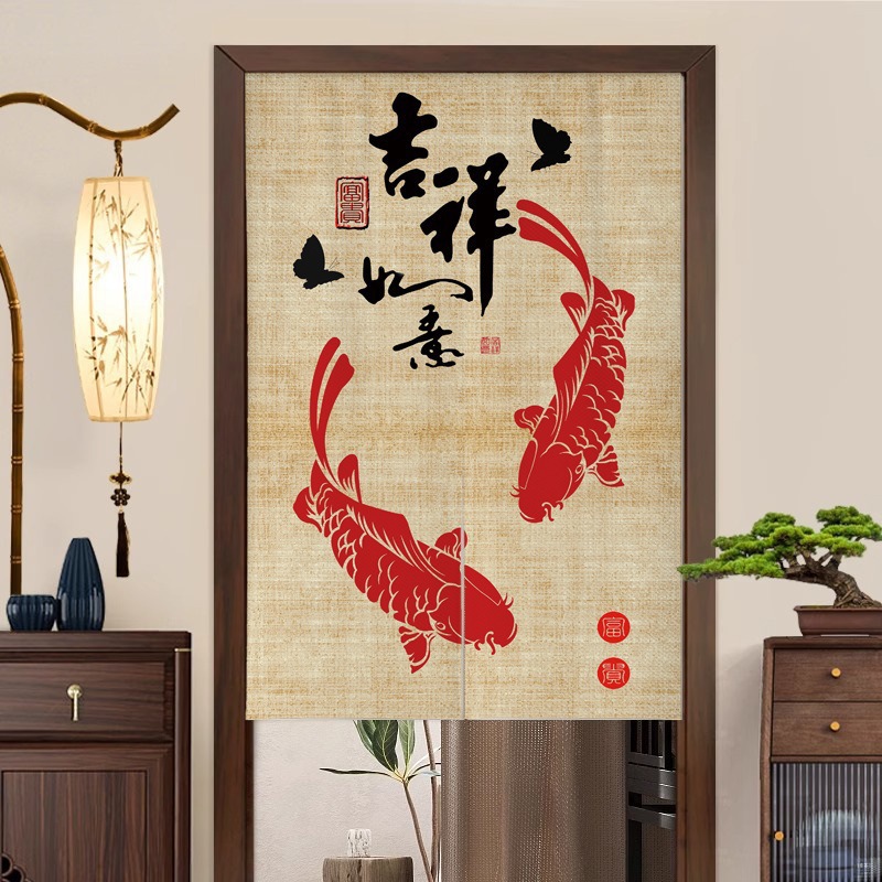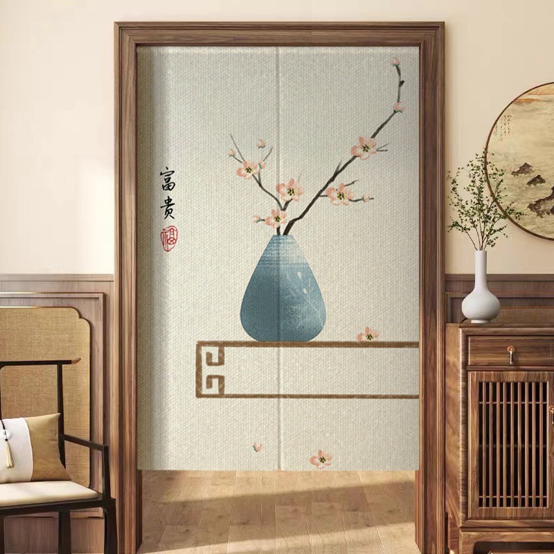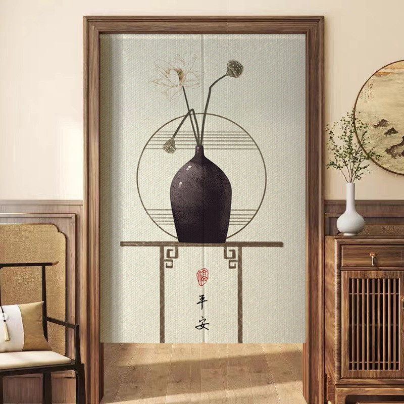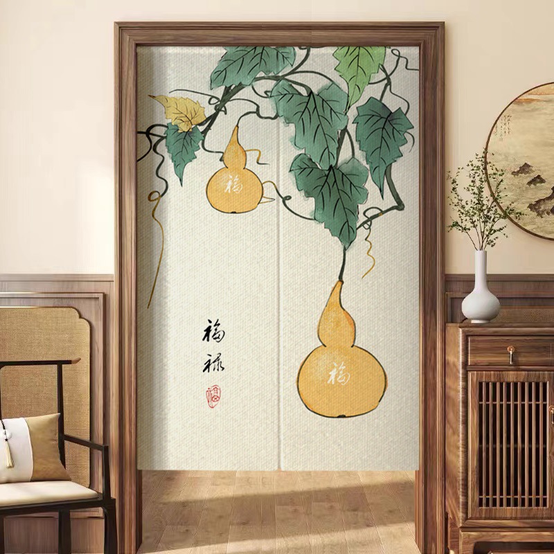 새로운 중국 스타일의 침실 도어 커튼, 짧은 반 커튼, 방 입구 도어 개인 정보 보호 커튼, 펀치 프리 커튼스토어 가기