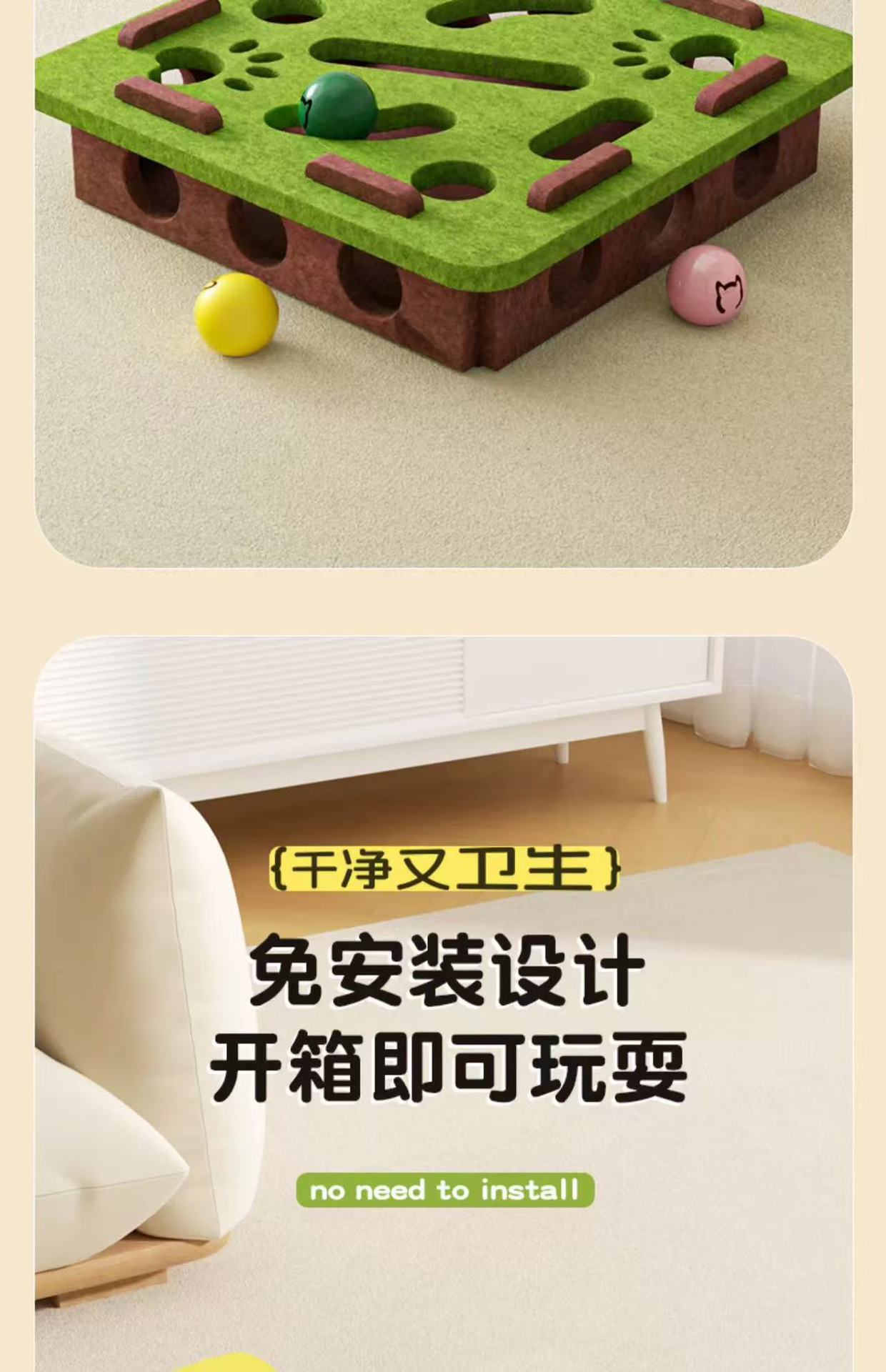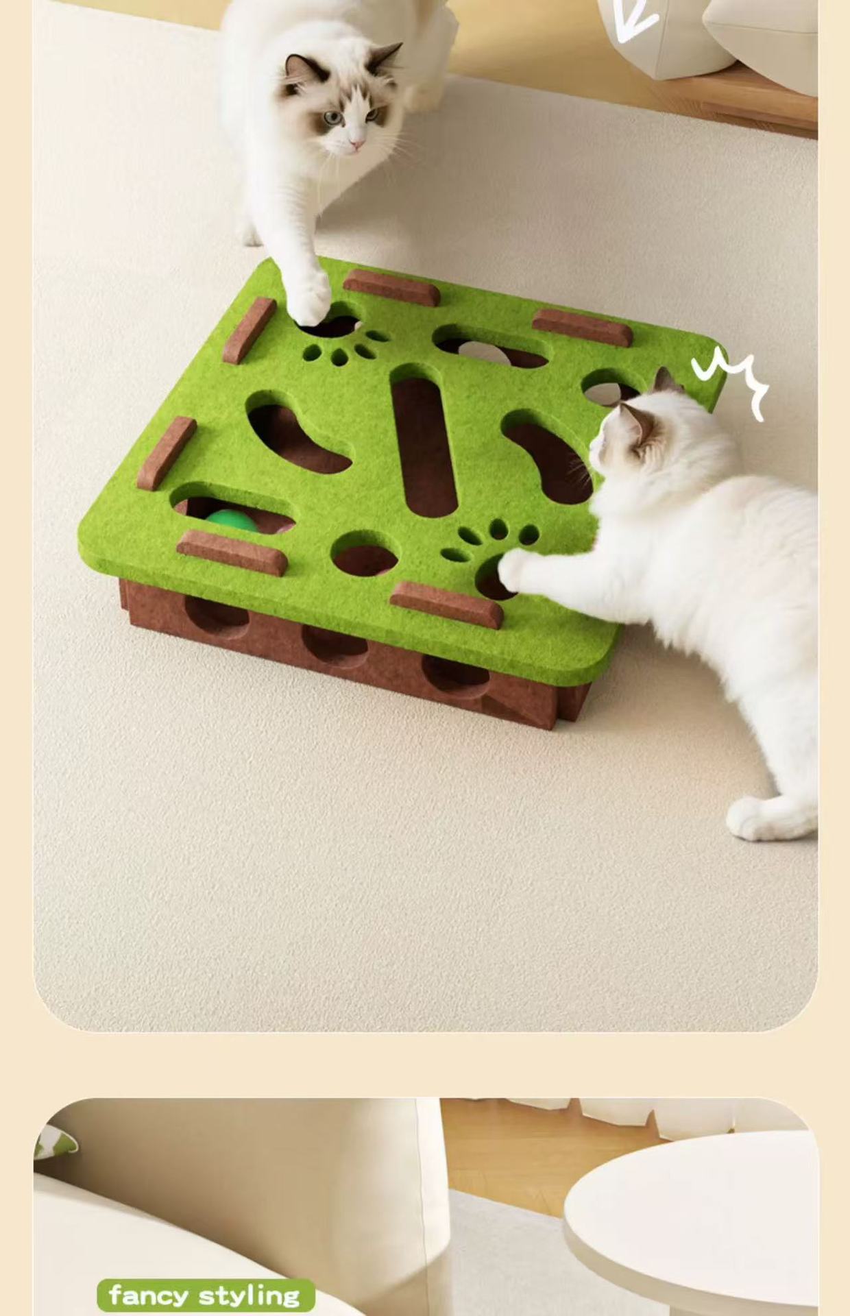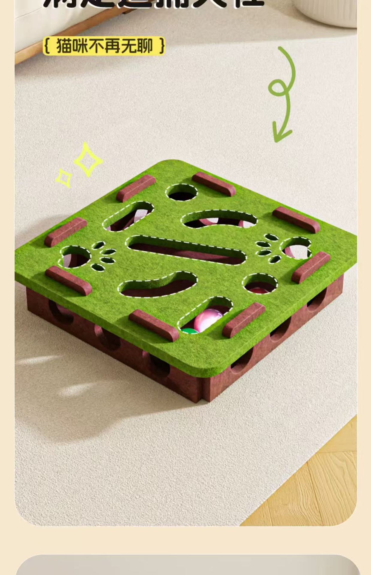 • [스퀘어 그린 앤 브라운] 퍼즐과 재미있는 고양이 미로 공 뽑기 재미
