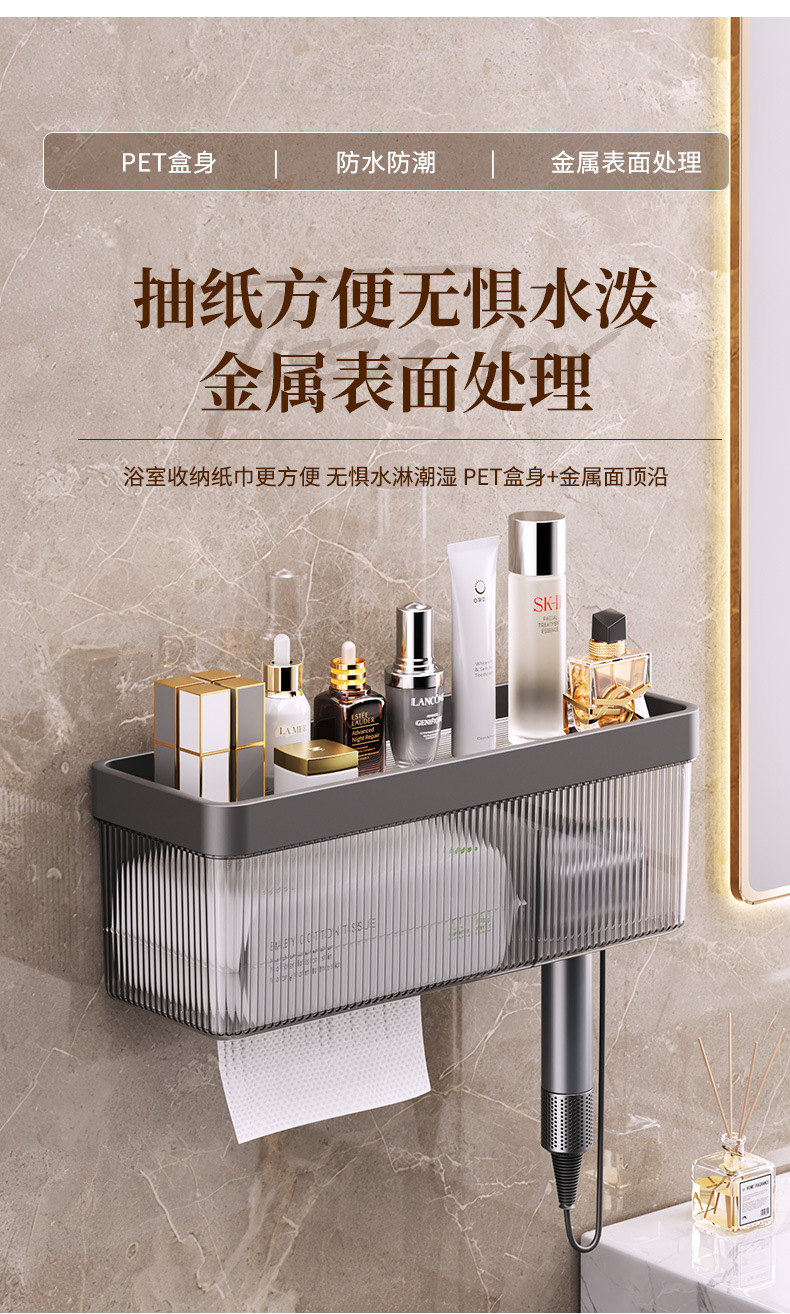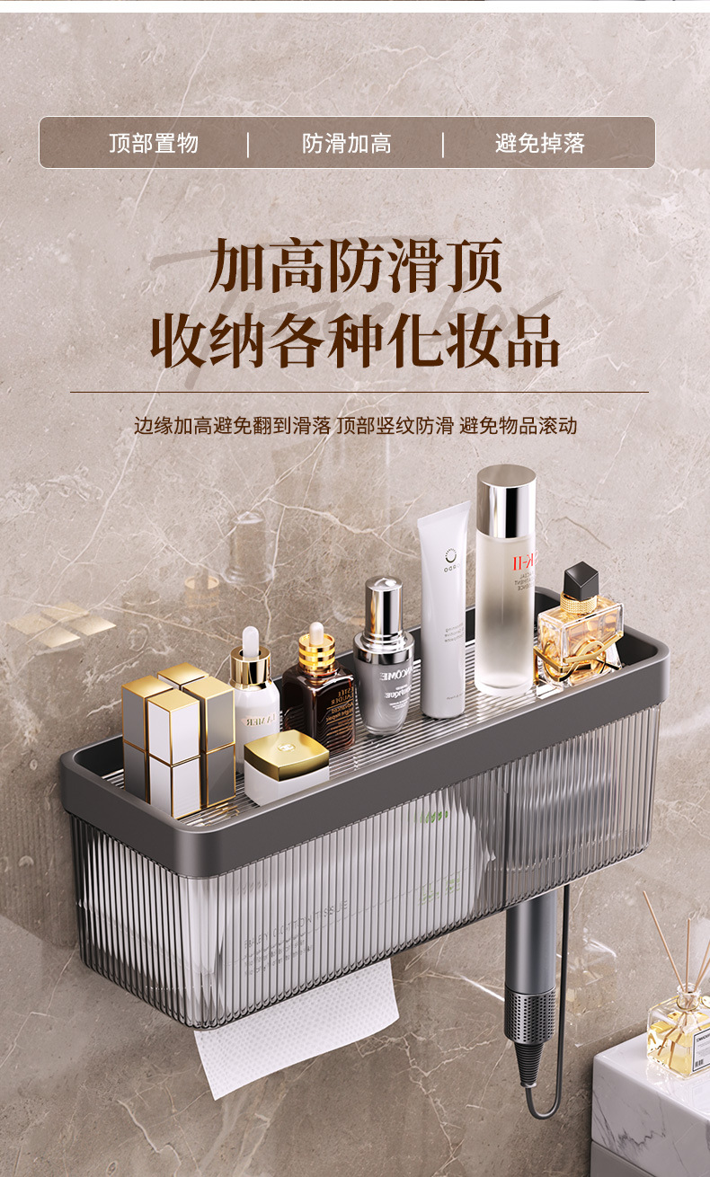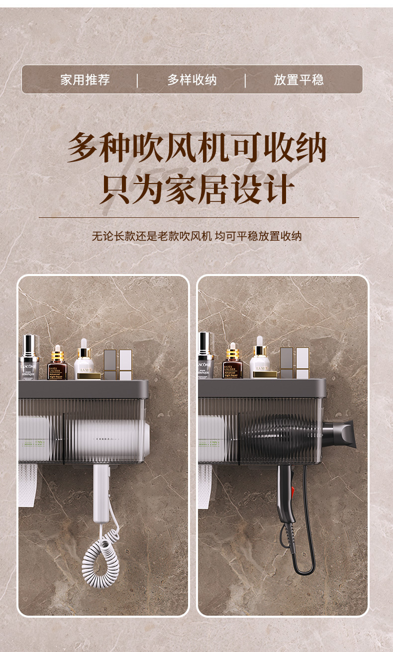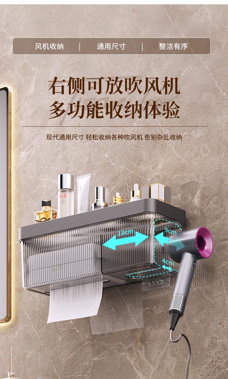 헤어드라이어 수납선반, 구멍이 없는 욕실 수납선반, 벽걸이형 세안수건 수납함, 가정용 헤어드라이어 선반