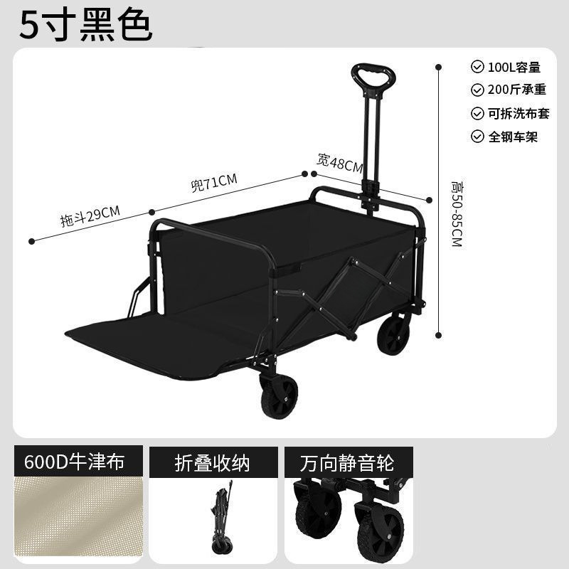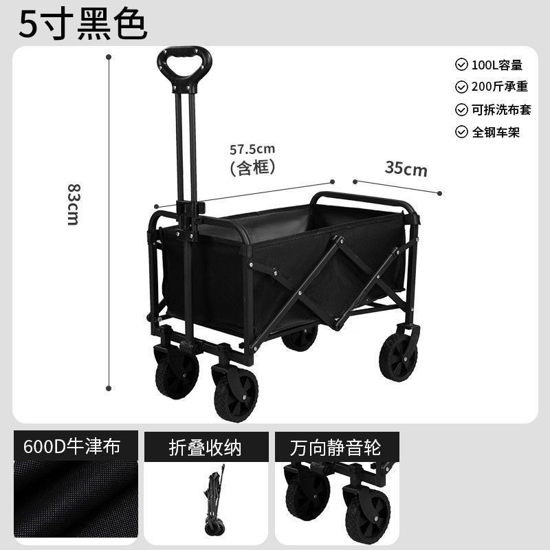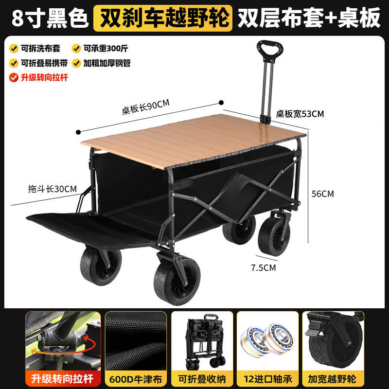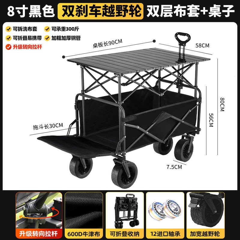 • 블랙 [이중 두꺼운 옥스포드 천] - 대형 / 8inch 오프로드 휠 / 더블 브레이크 / 티핑 버킷 스타일 + 블랙 테이블