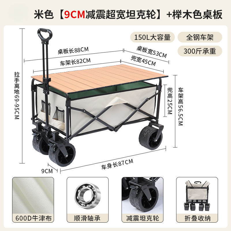 • 블랙 [이중 두꺼운 옥스포드 천] - 대형 / 8inch 오프로드 휠 / 더블 브레이크 / 티핑 버킷 스타일 + 나뭇결 테이블