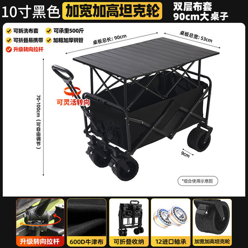 • 블랙 [이중 두꺼운 옥스포드 천] - 상단 구성 / 10inch 탱크 휠 / 더블 브레이크 + 강화된 블랙 테이블