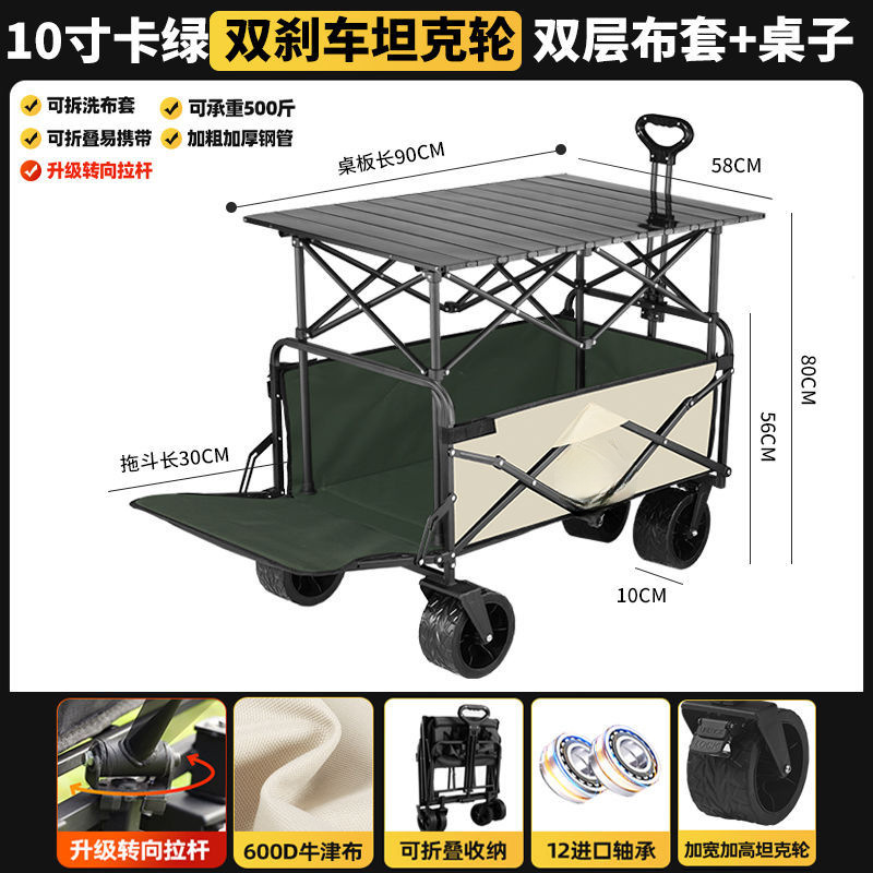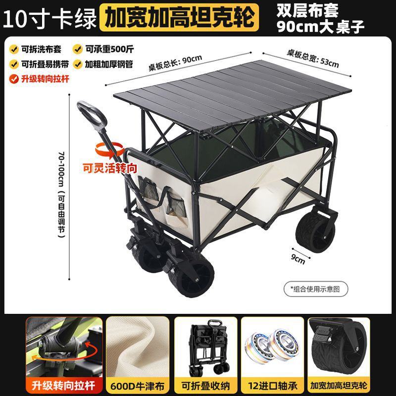 • 카드 그린 [이중 두꺼운 옥스포드 천] - 업그레이드/ 8inch 오프로드 휠/더블 브레이크 + 강화된 나뭇결 테이블