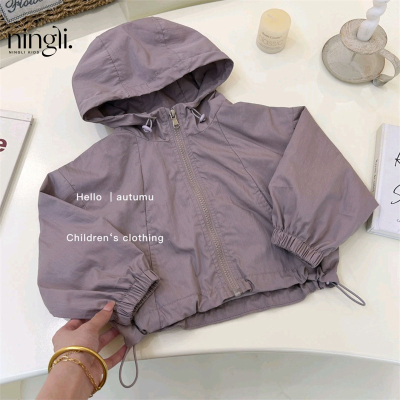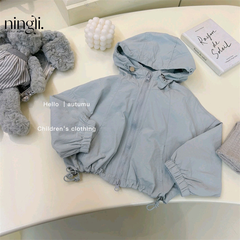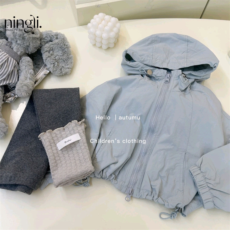 Ningli 여아 자켓 가을 새로운 스타일 아동 봄, 가을 스타일 어린 소녀 스포츠 후드 탑 유행스토어 가기